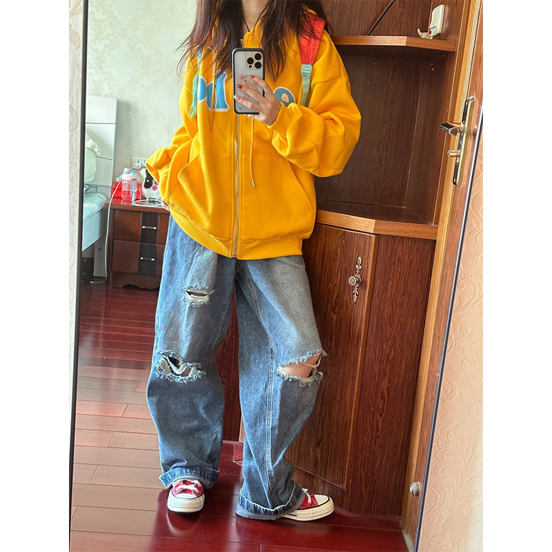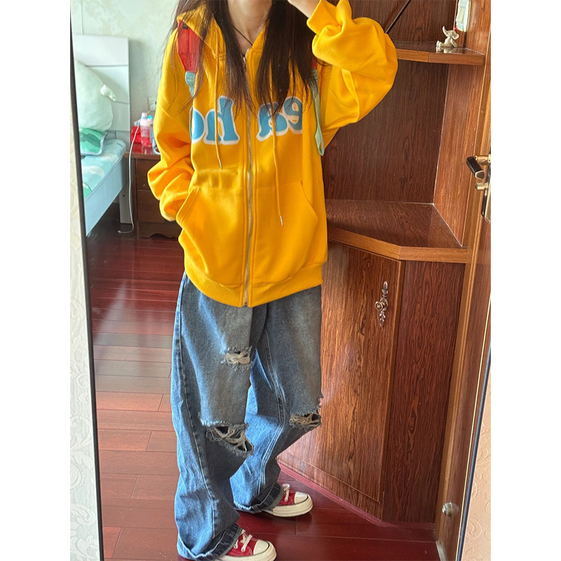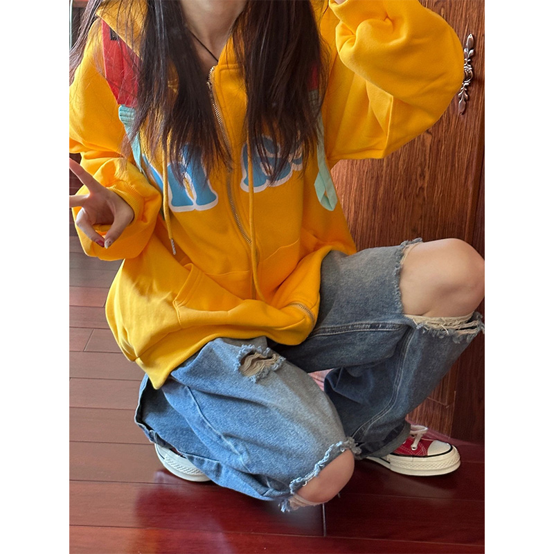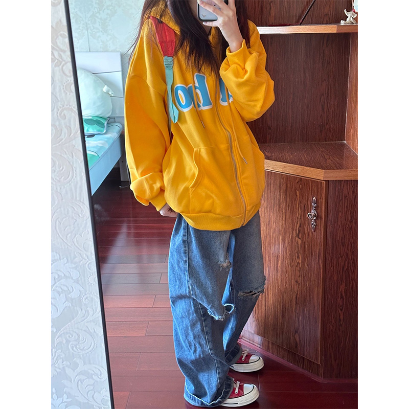 美式復古高街衛衣外套女春秋oversize連帽開衫拉鍊小個子上衣薄款