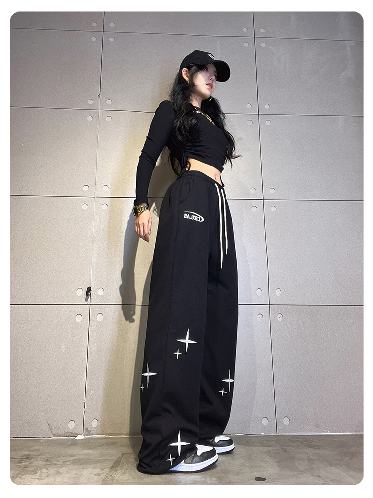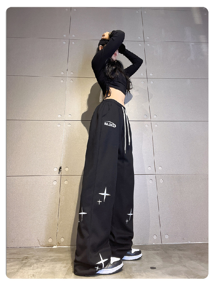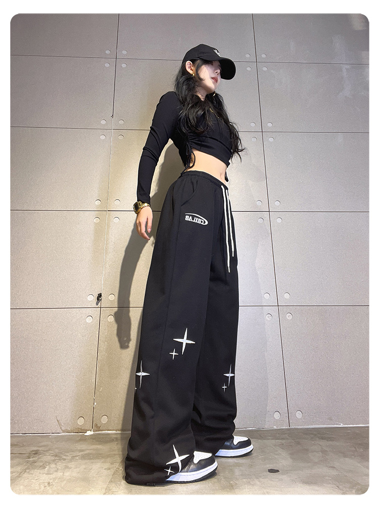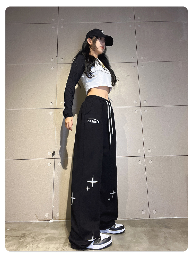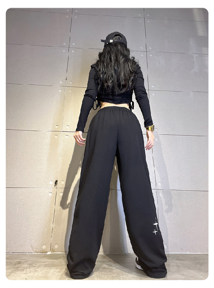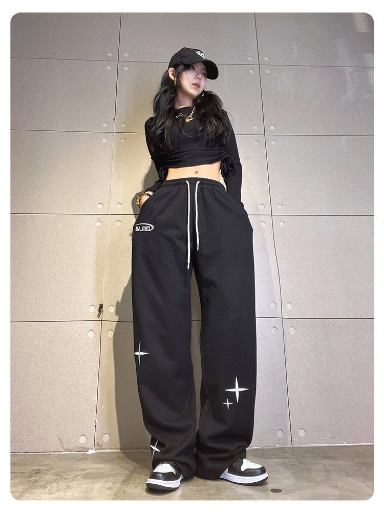 CBX原創潮牌黑色刺繡嘻哈直筒運動褲女jazz街舞ins跳舞爵士褲子潮