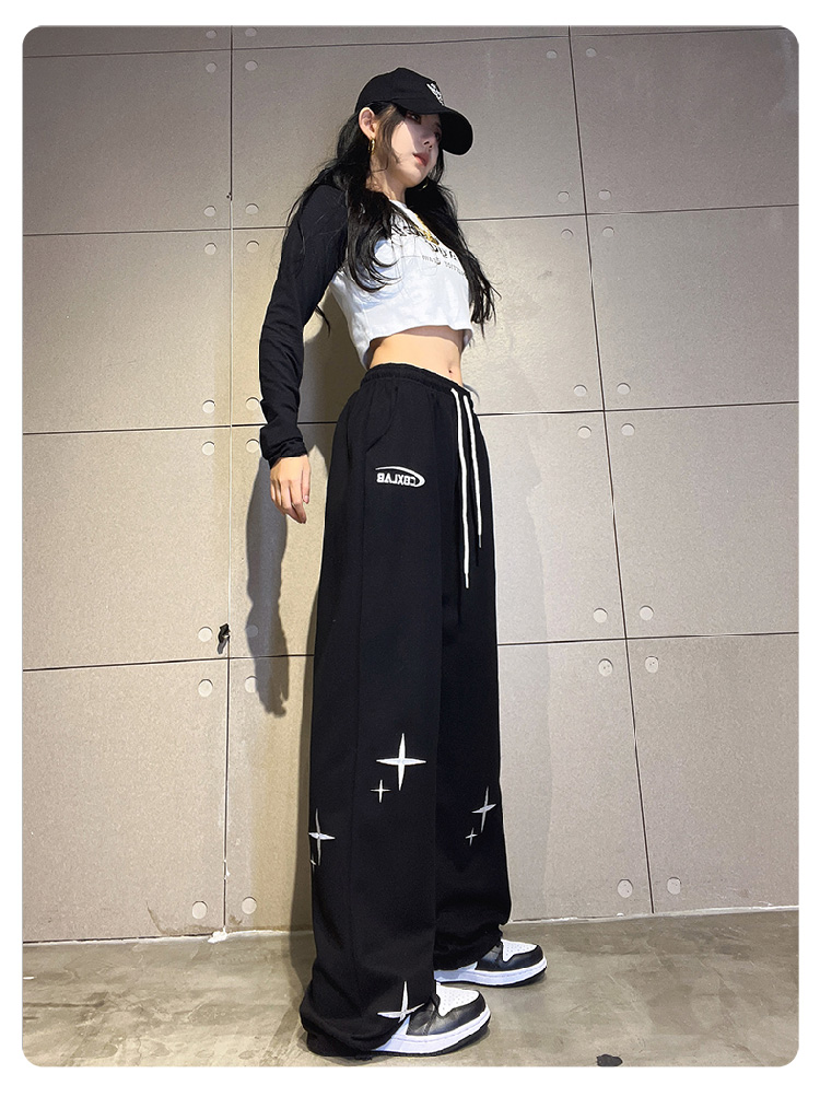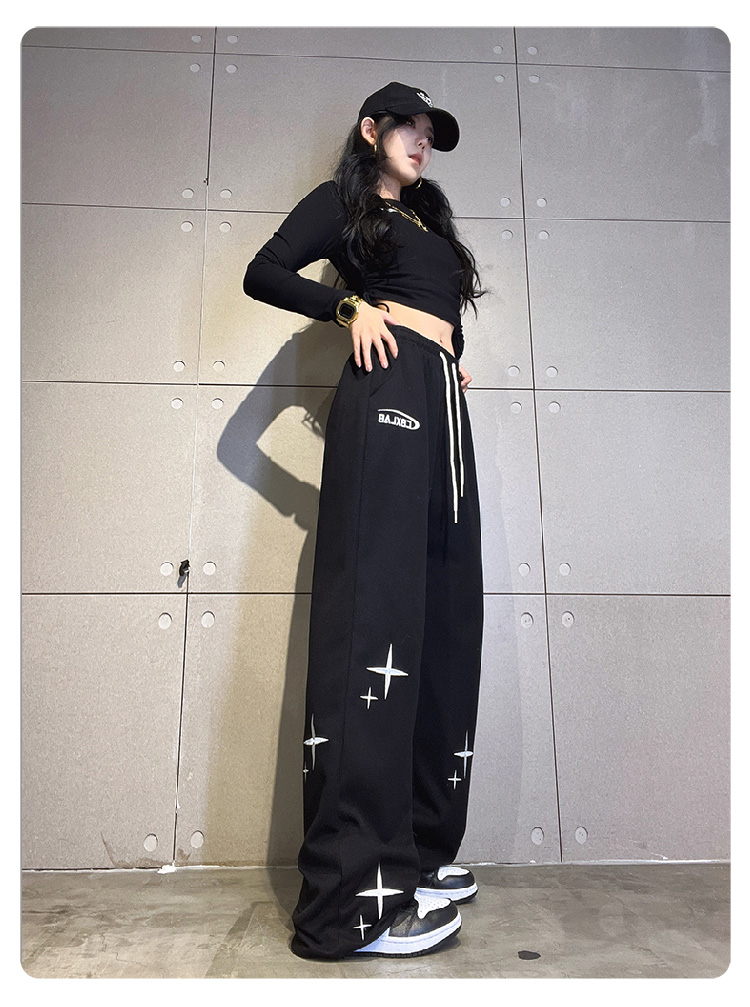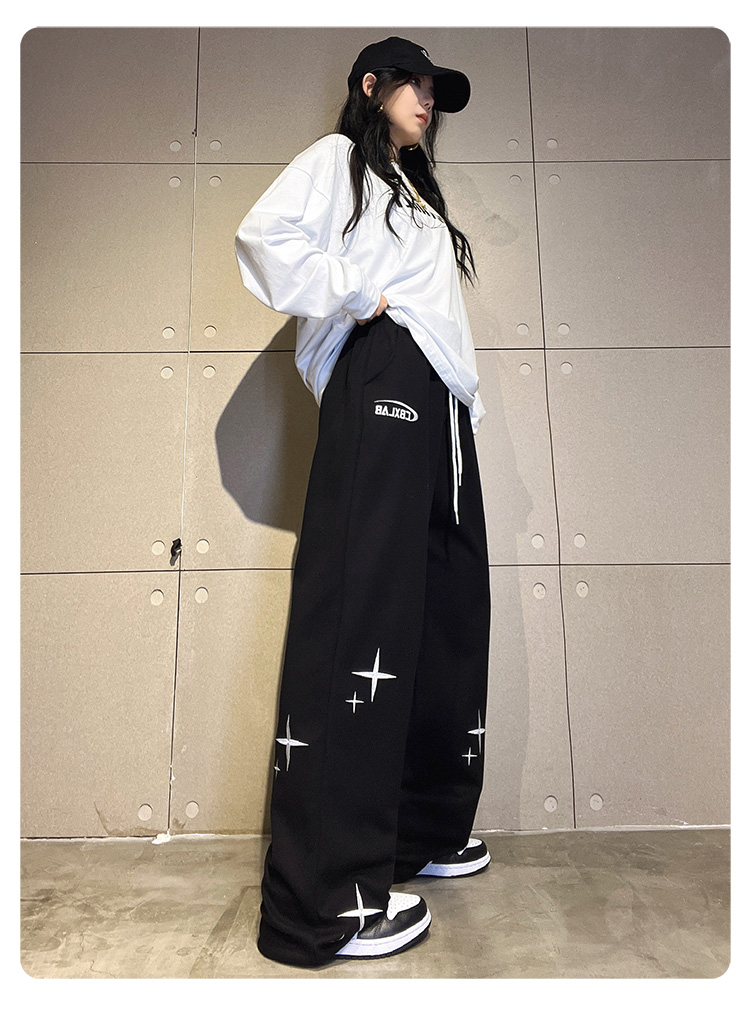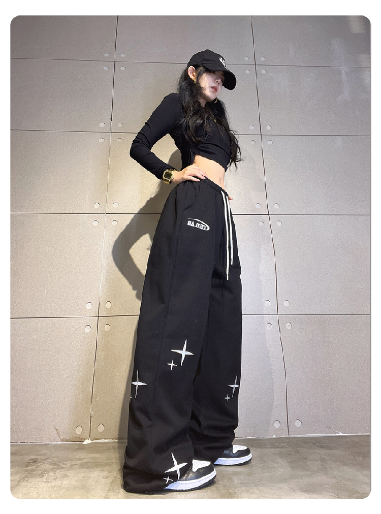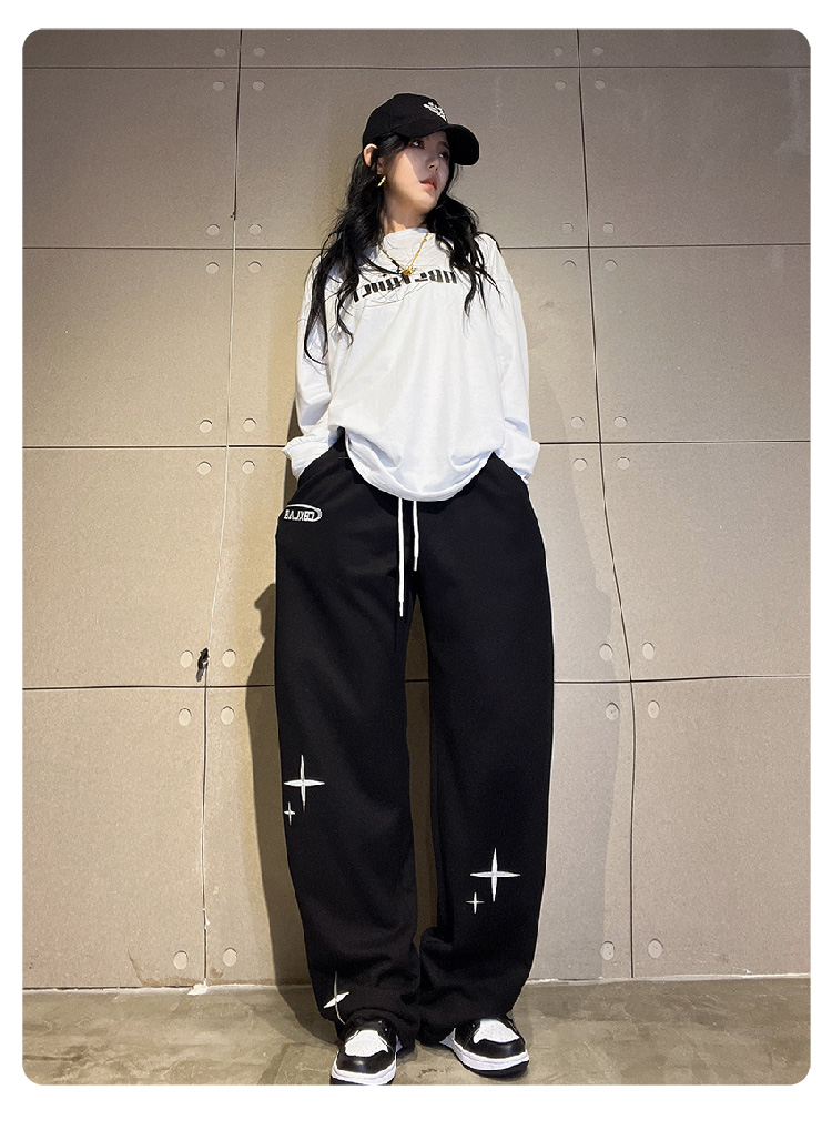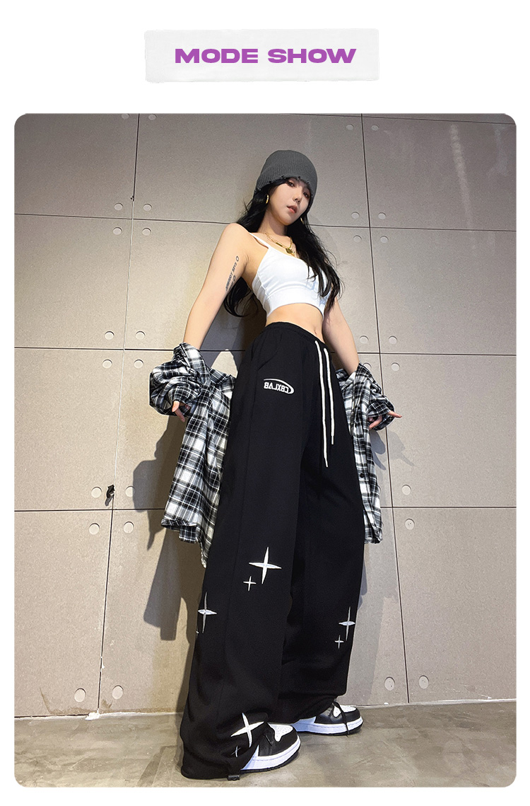 CBX原創潮牌黑色刺繡嘻哈直筒運動褲女jazz街舞ins跳舞爵士褲子潮