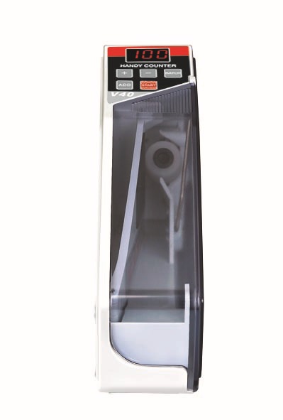 产品概述: V40是V30的升级版,是在V30的原有功能上增加的预置点数的功能,并且外观更精致、线条更流畅。该产品是根据人民币、美元等多国纸币的纸质特点设计而成的。具有点数快而准的特点。是当今国际市场上一款可以用电池进行操作的点钞机,只要装入四个5号电池就可随身携带《配备精致皮套》。