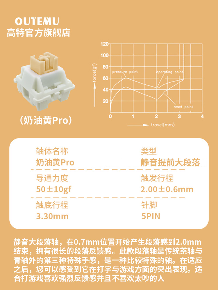 现货跨境批发 outemu高特奶油黄轴Pro五脚热插拔键盘静音段落开关