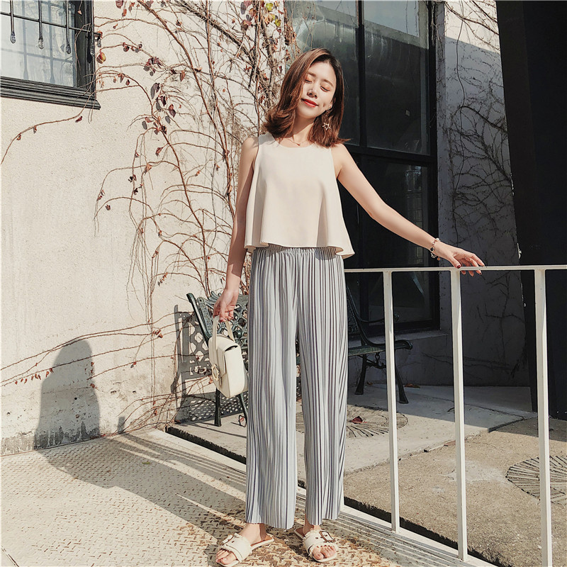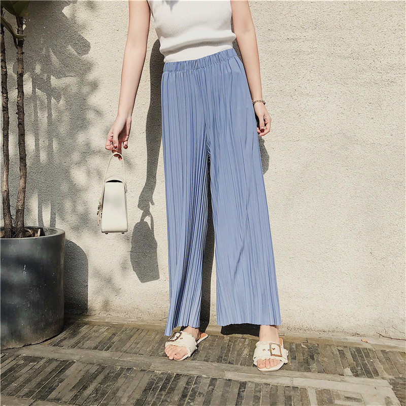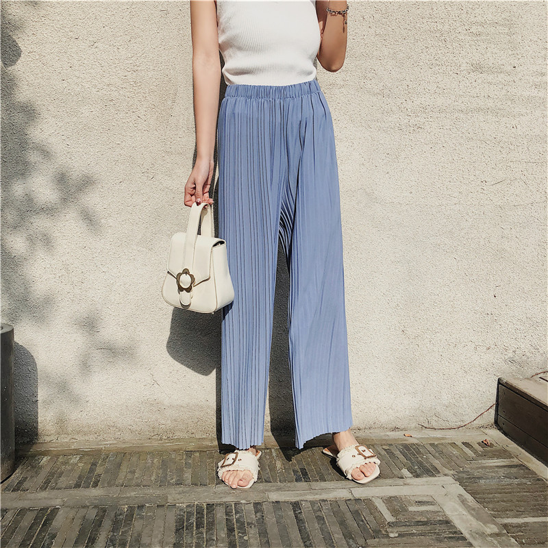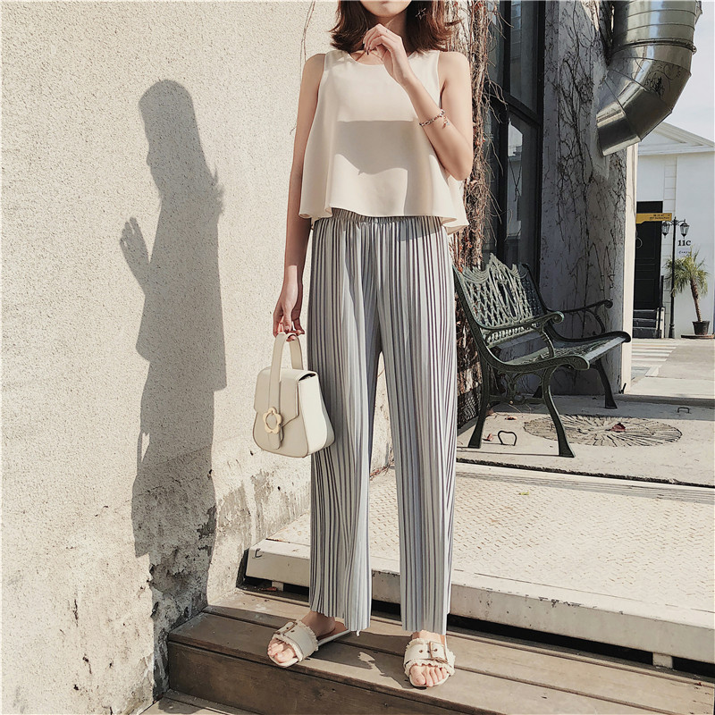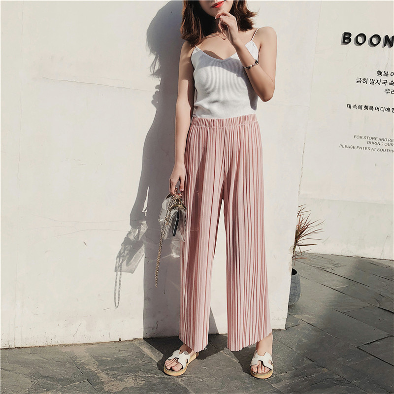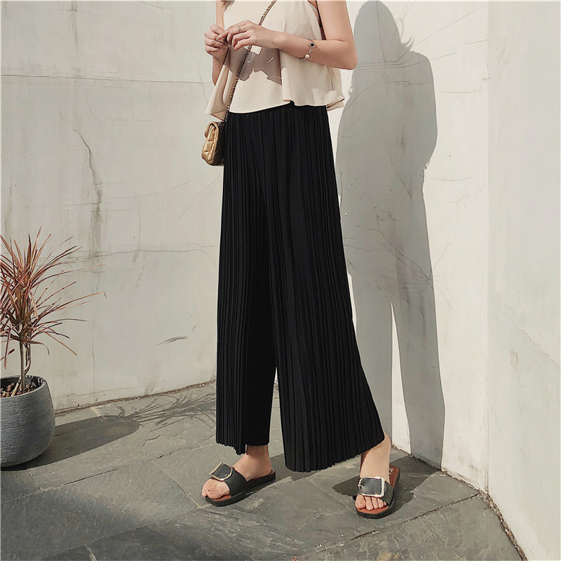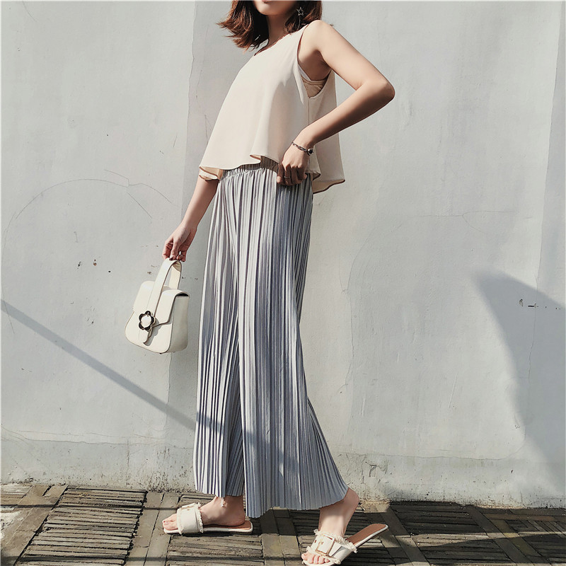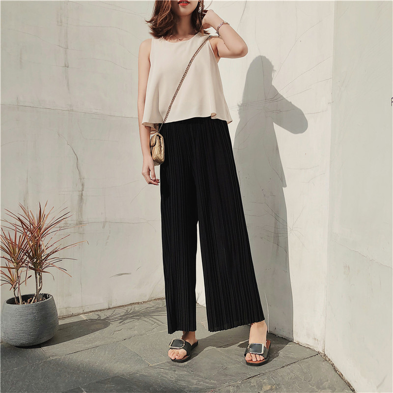 韩版2020夏季新款高腰百褶雪纺阔腿裤女春夏九分学生港味宽松