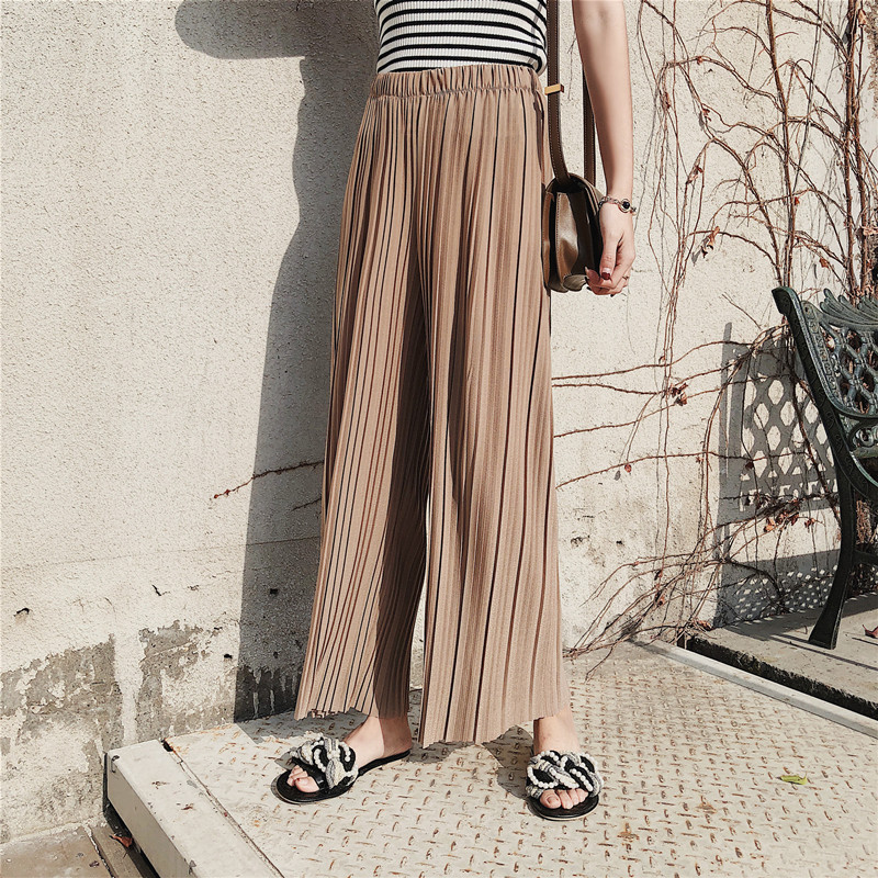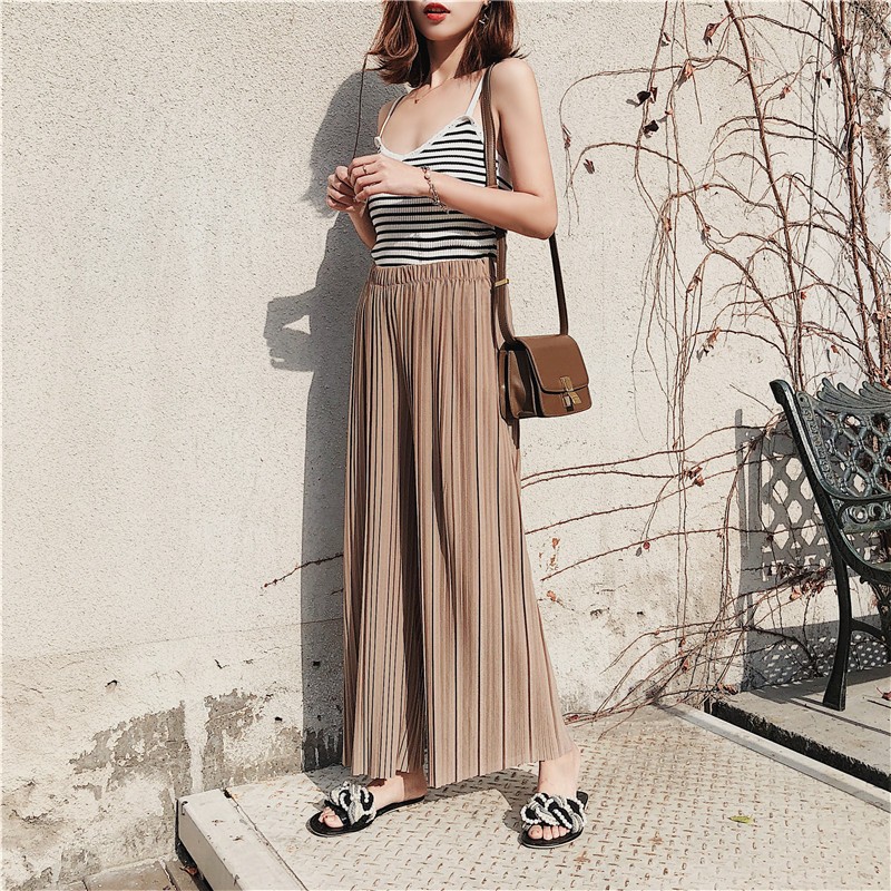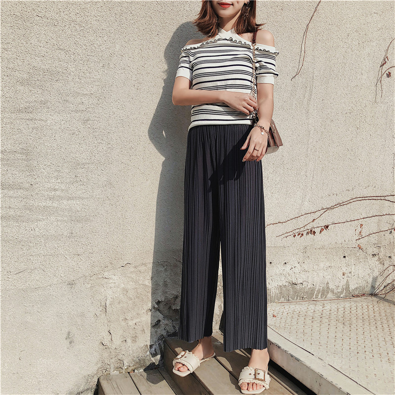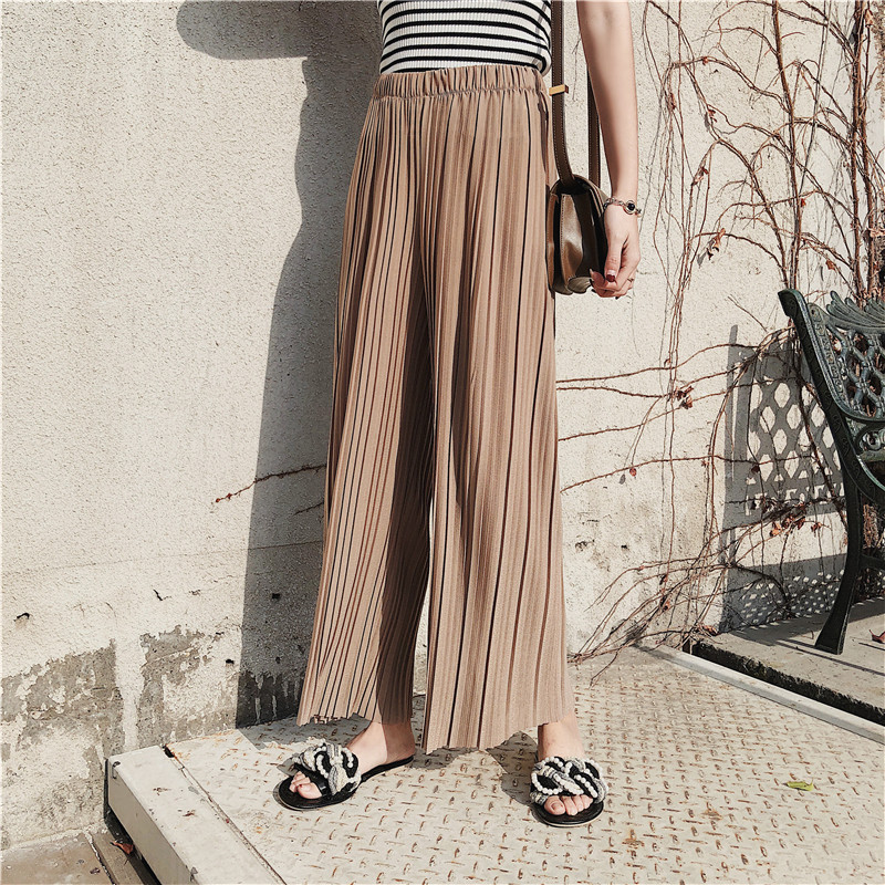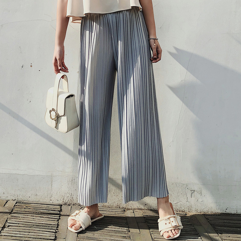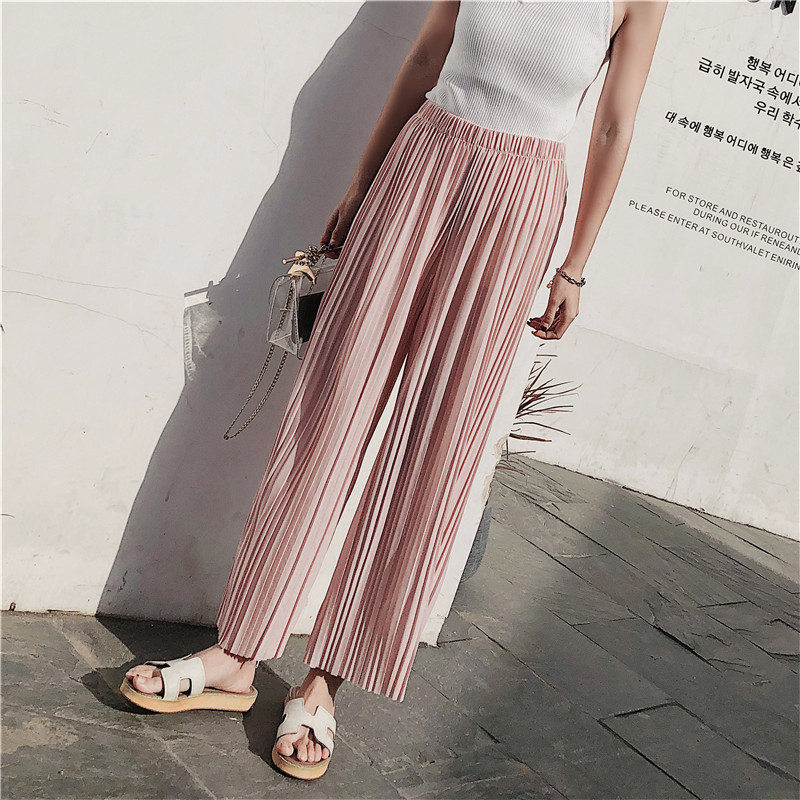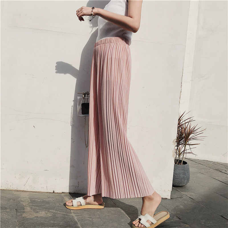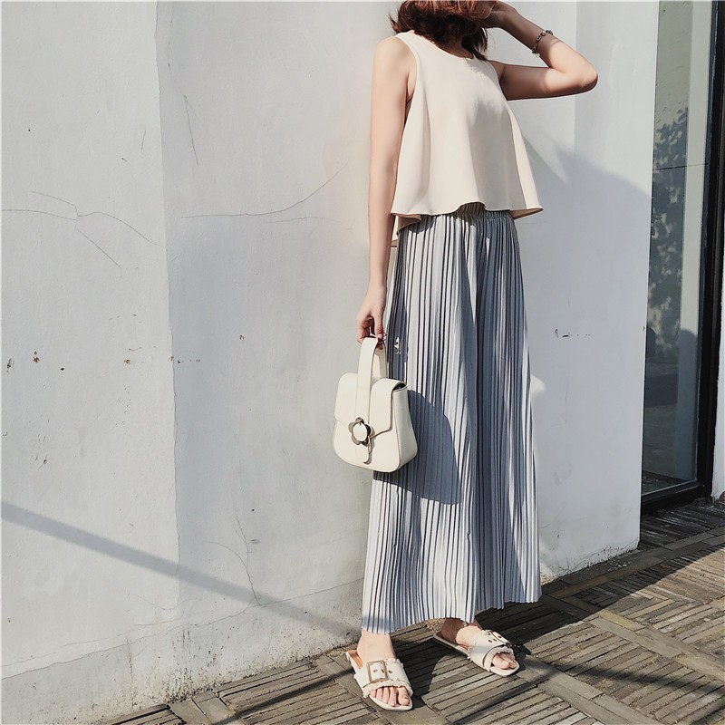 韩版2020夏季新款高腰百褶雪纺阔腿裤女春夏九分学生港味宽松