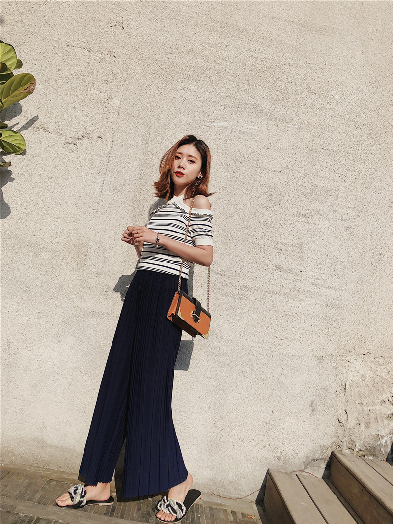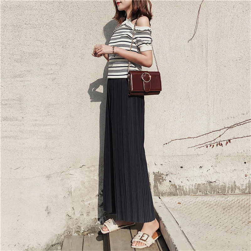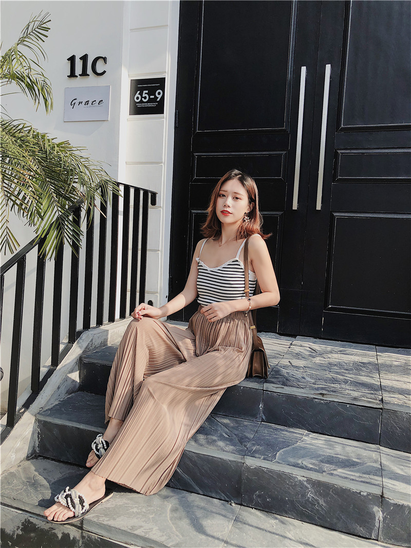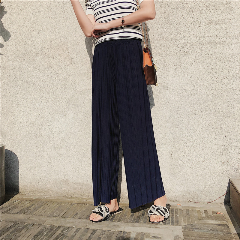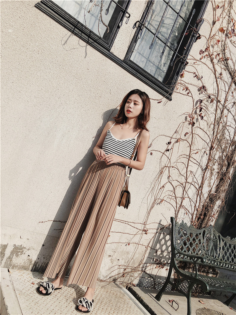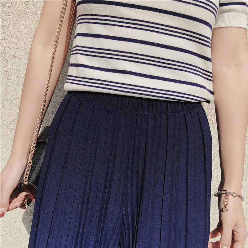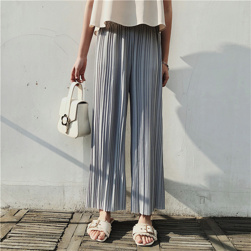 韩版2020夏季新款高腰百褶雪纺阔腿裤女春夏九分学生港味宽松