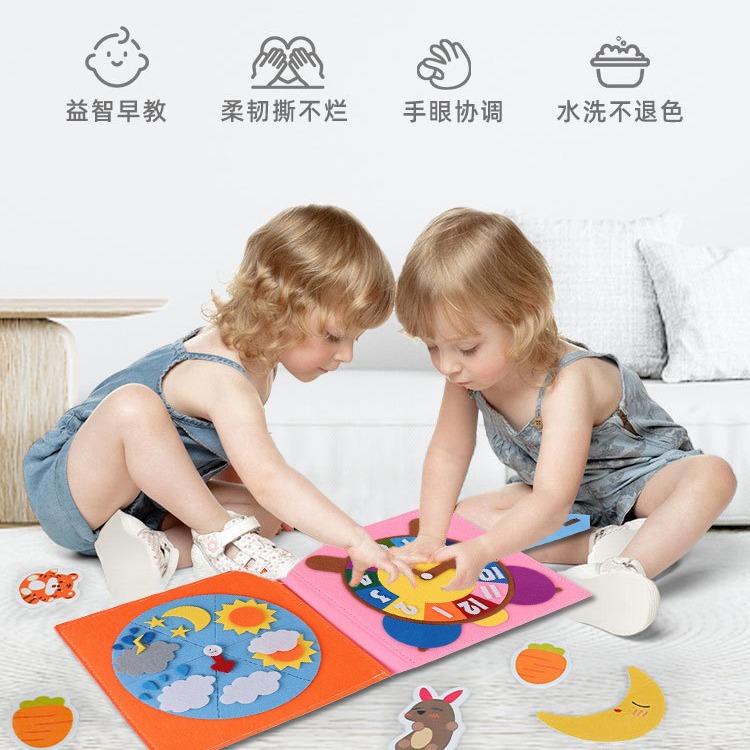 跨境蒙氏启蒙早教毛毡书儿童益智3D立体彩虹卡通毛毡布书忙碌板