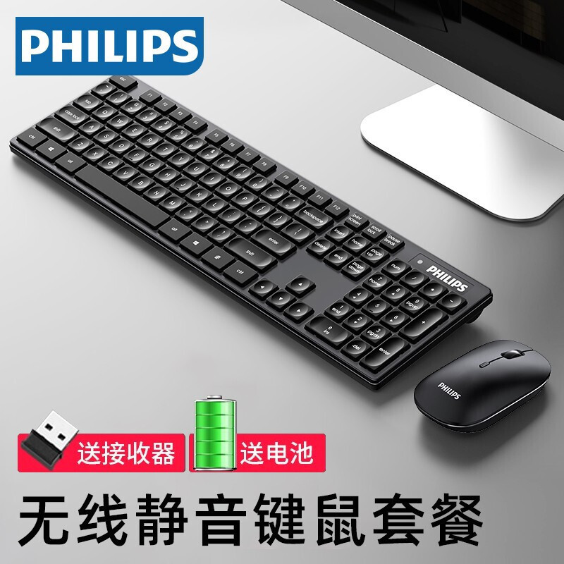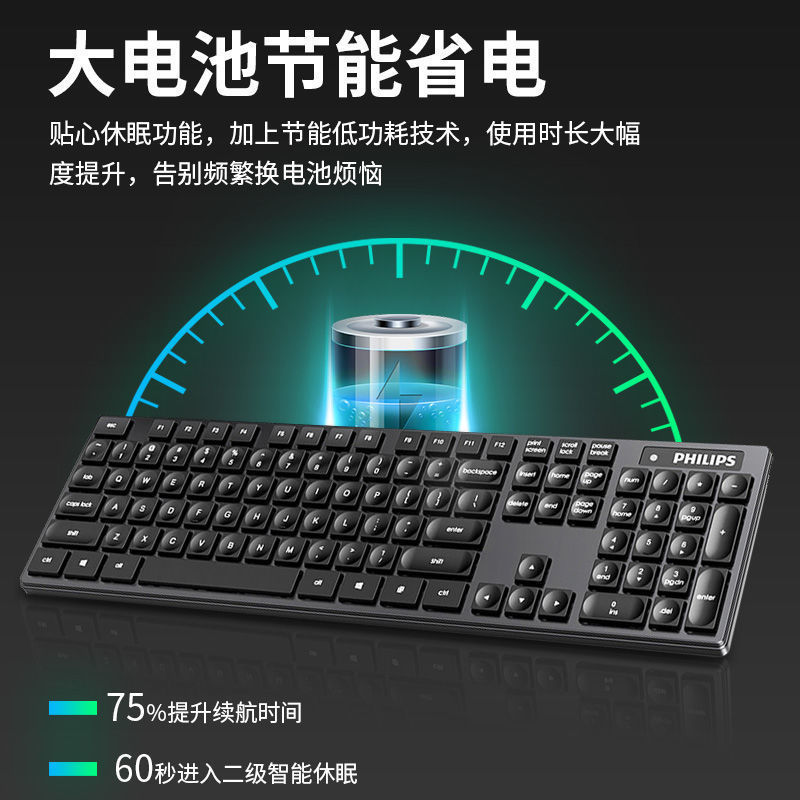 飞利浦SPK6103无线键盘静音按键设计 办公商务游戏笔记本电脑通用