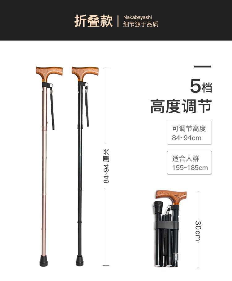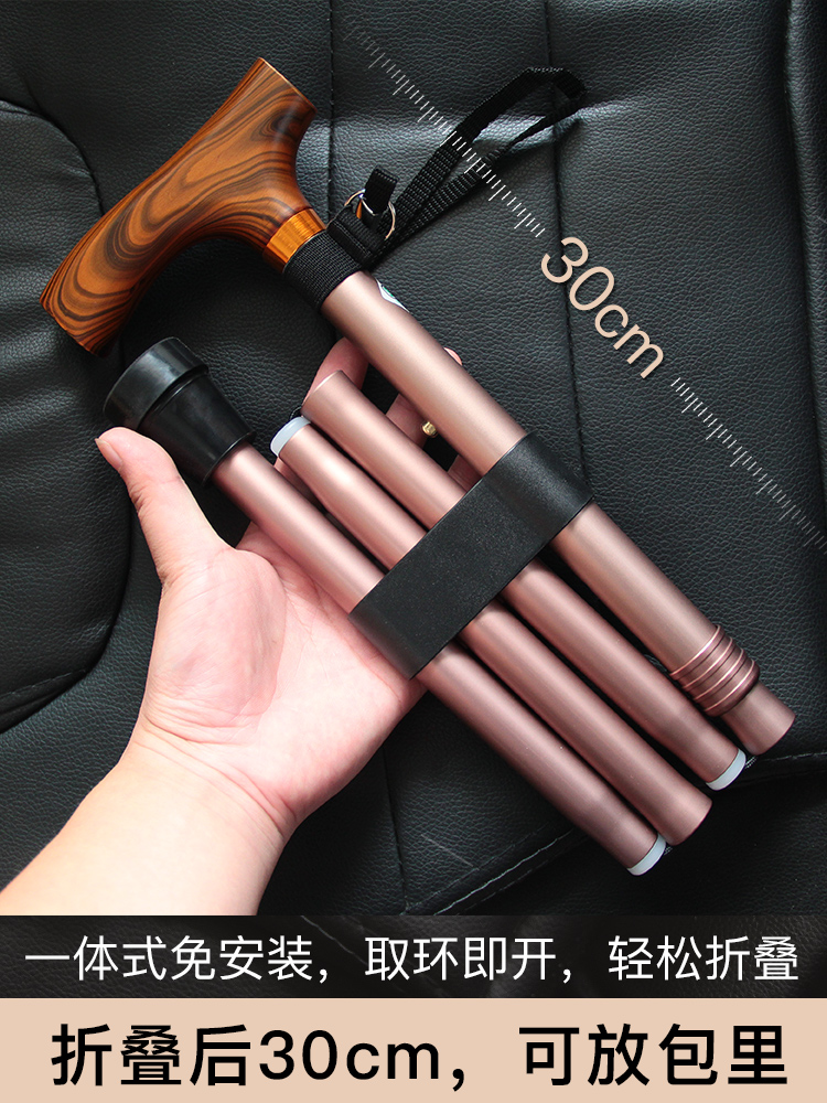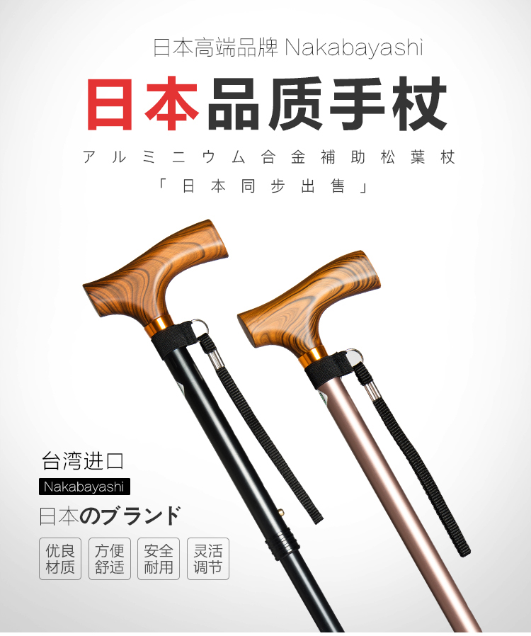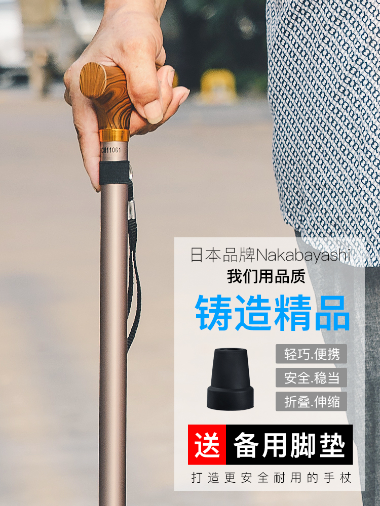 日本柺杖老人實木伸縮摺疊進口手杖老年登山防滑超輕可攜式徒步柺棍