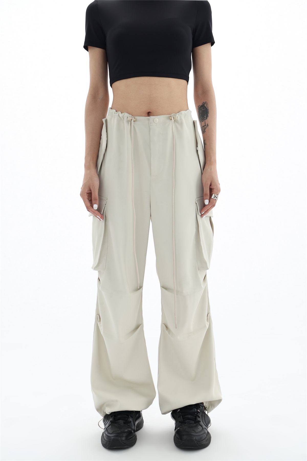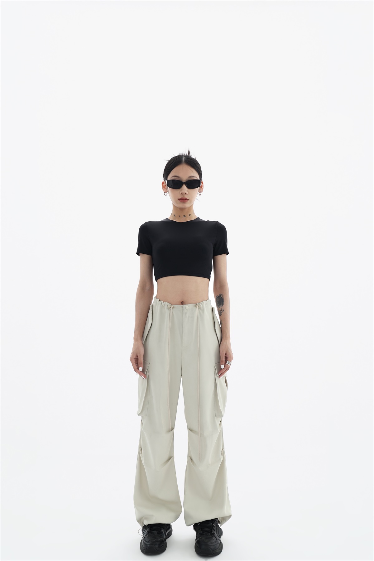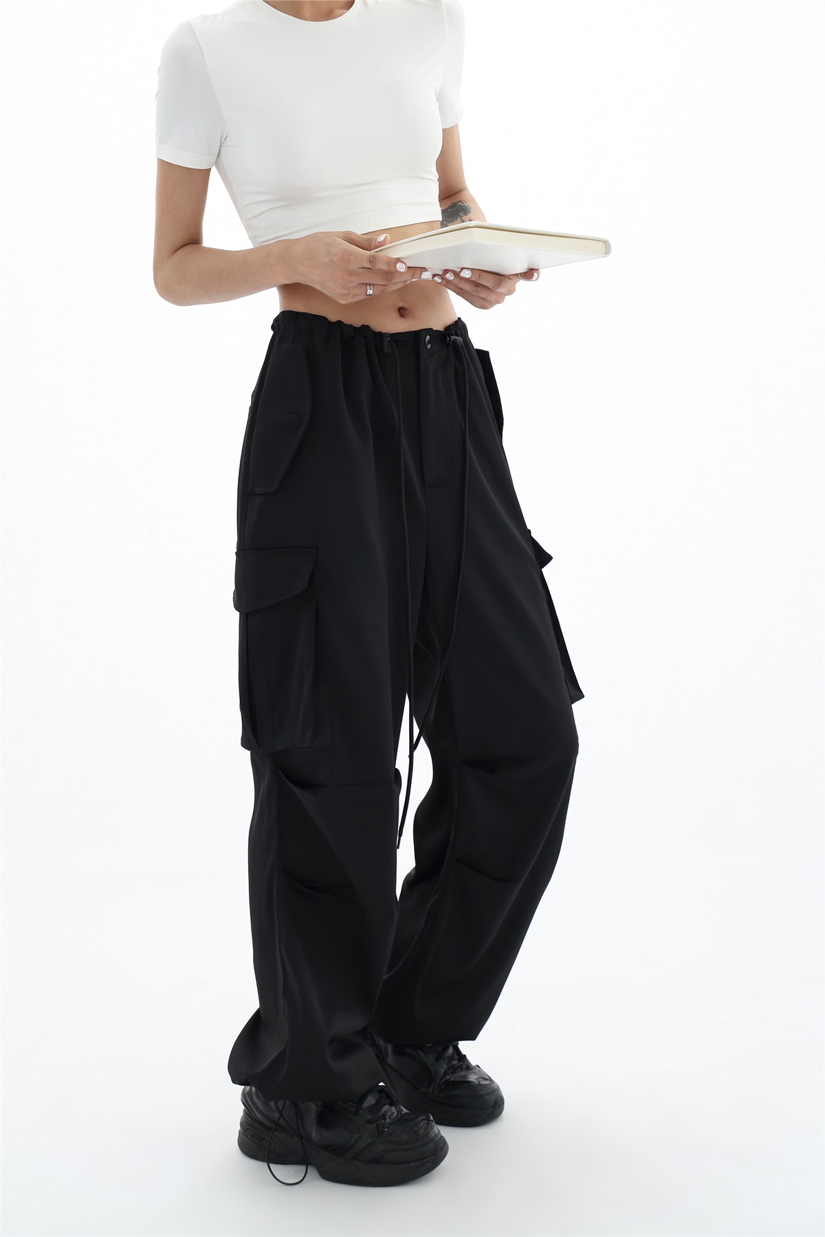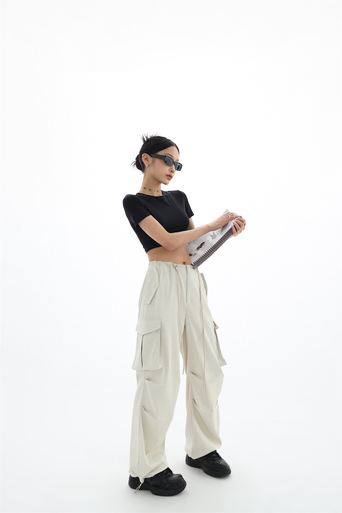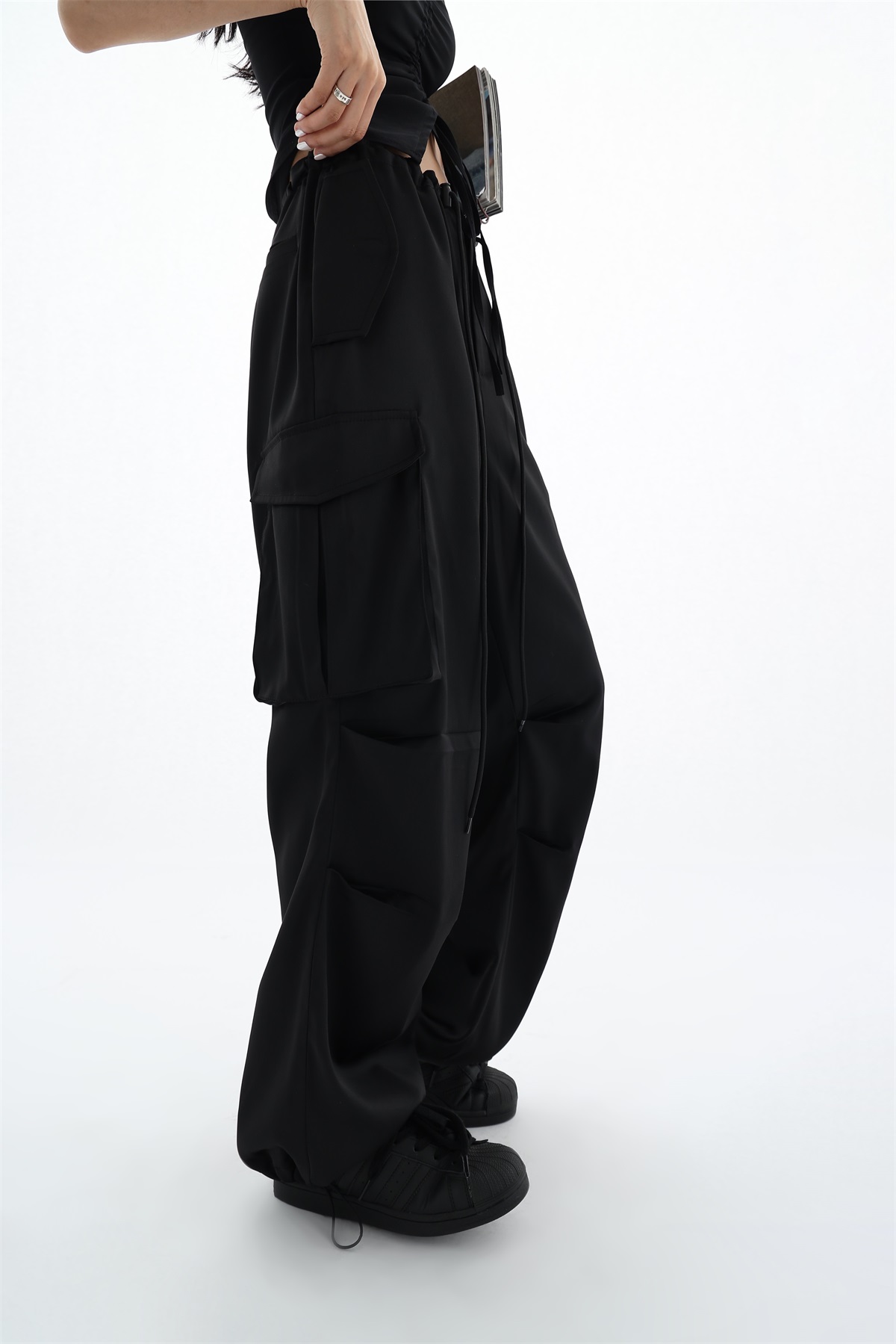 Acestudios 抽繩闊腿工裝褲女2023春夏高街寬鬆薄款垂感低腰長褲