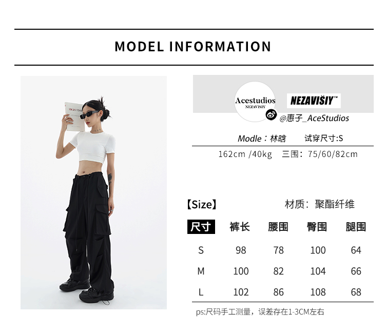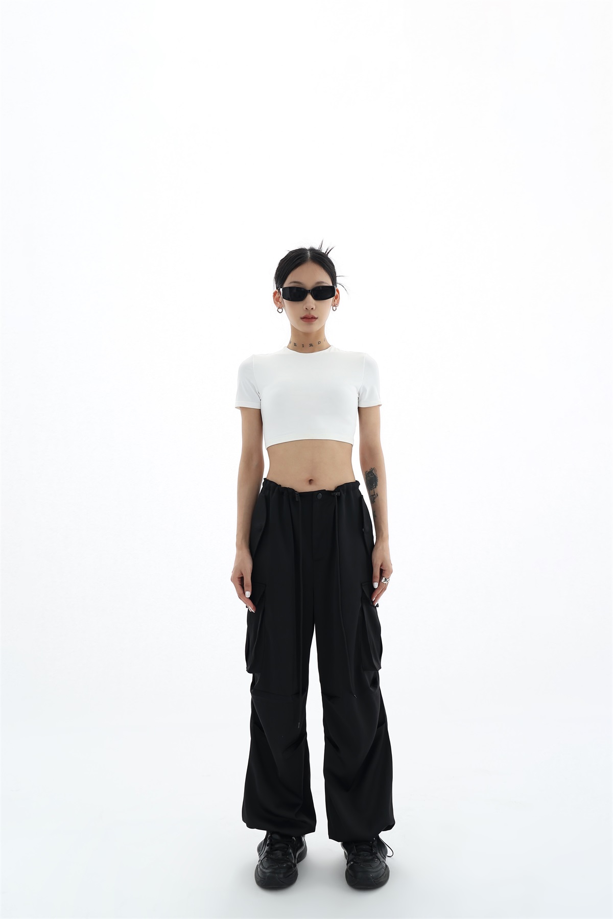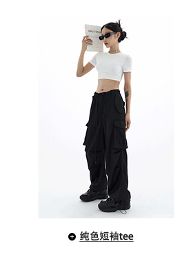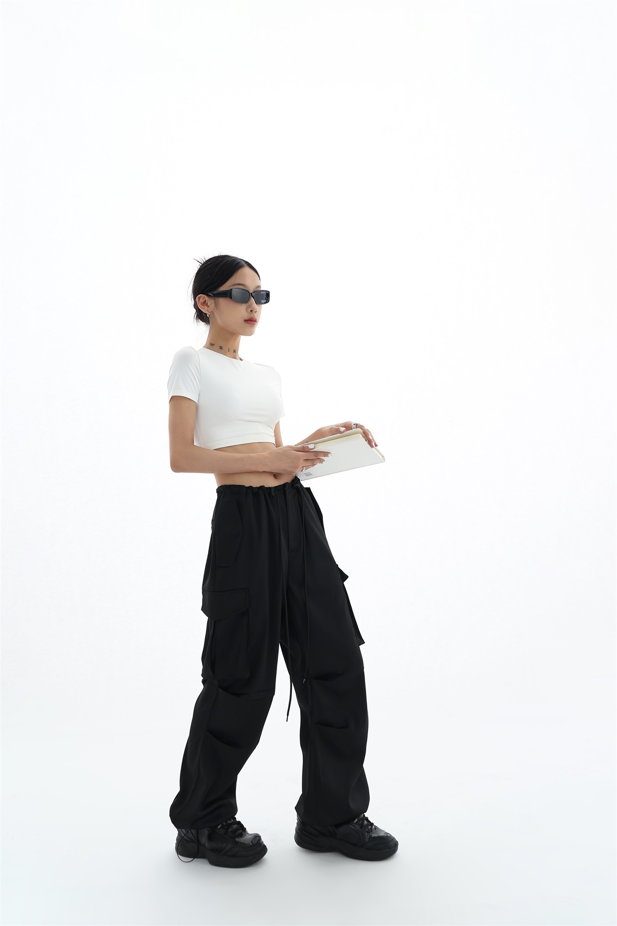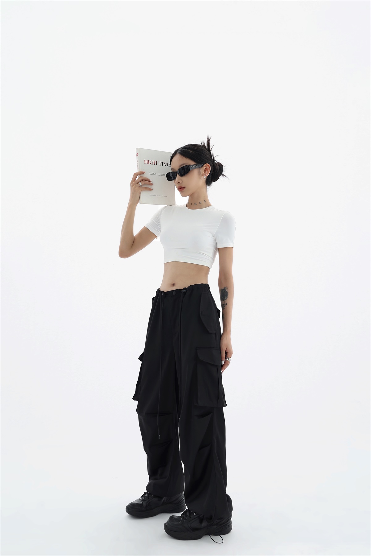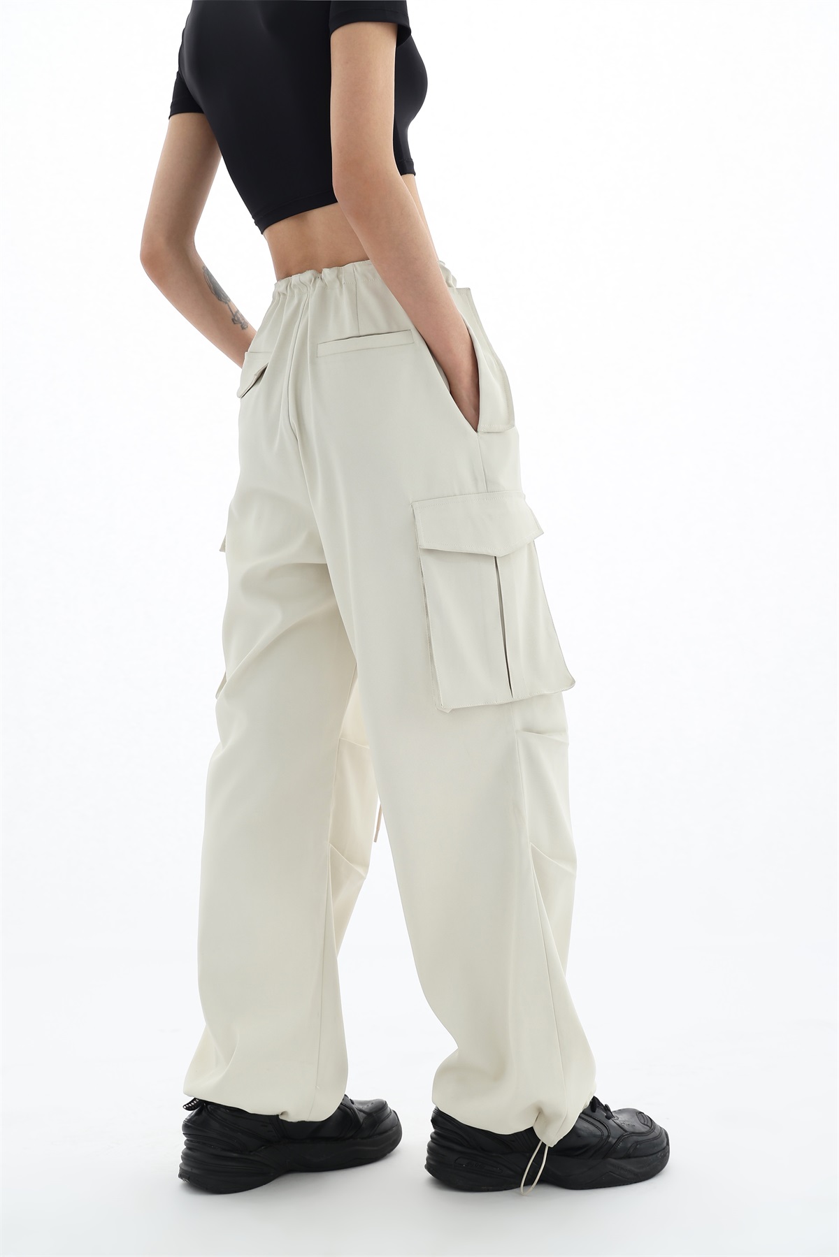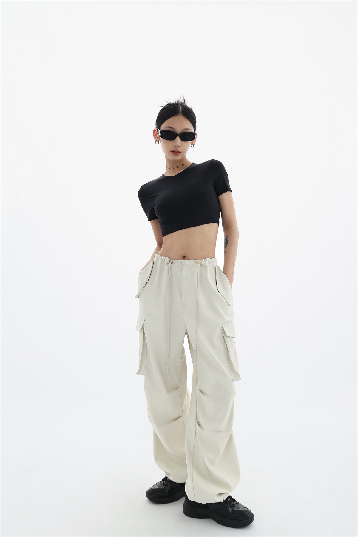 Acestudios 抽繩闊腿工裝褲女2023春夏高街寬鬆薄款垂感低腰長褲