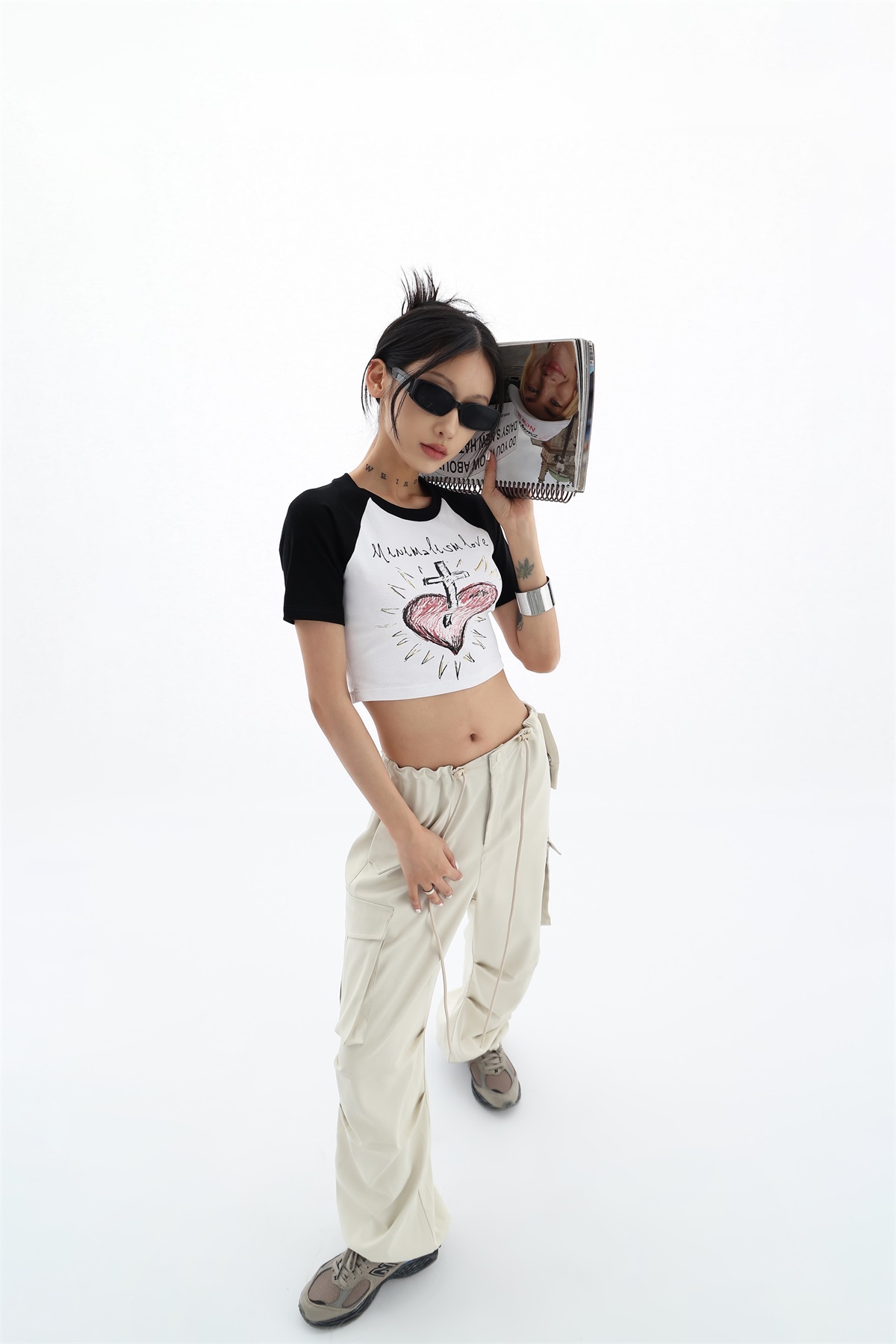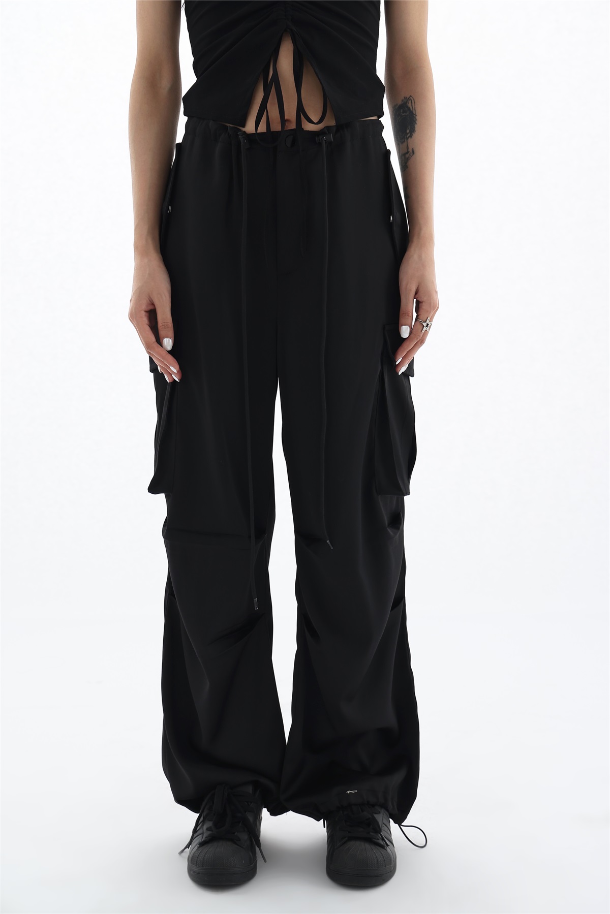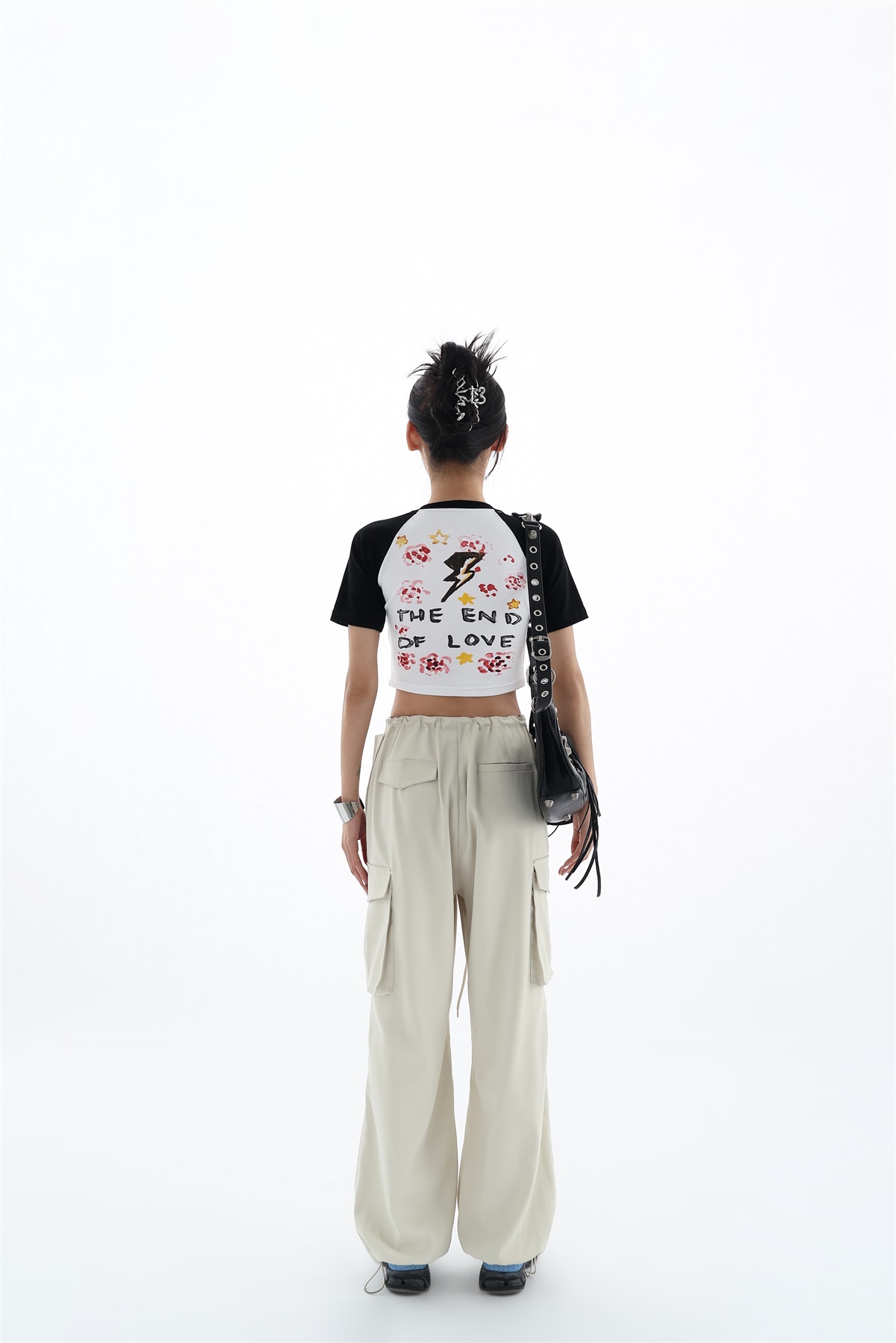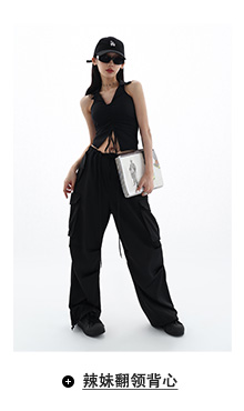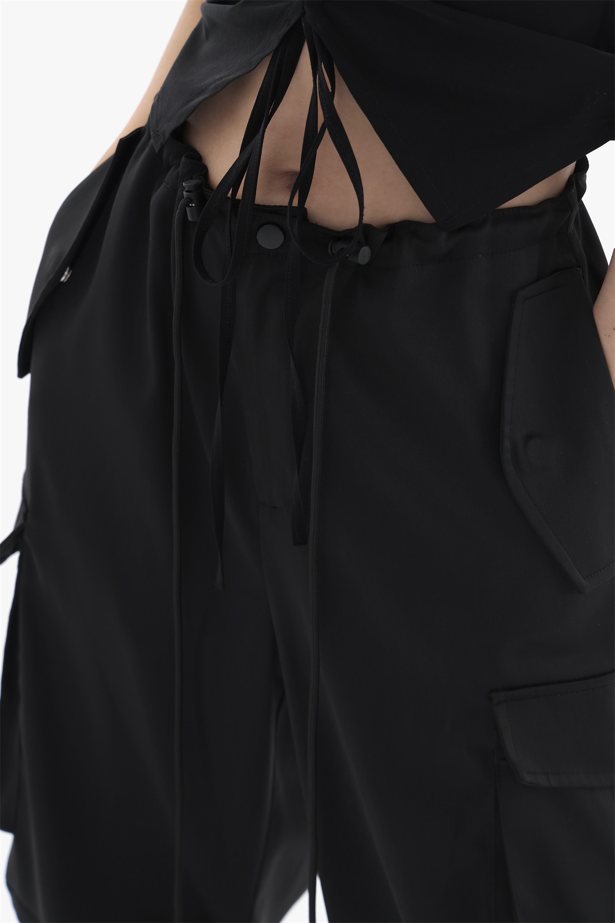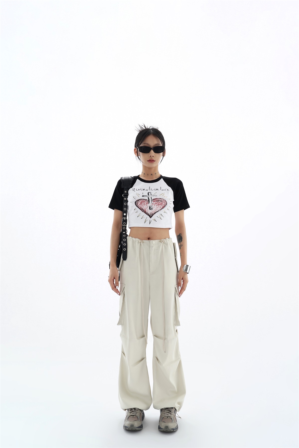 Acestudios 抽繩闊腿工裝褲女2023春夏高街寬鬆薄款垂感低腰長褲