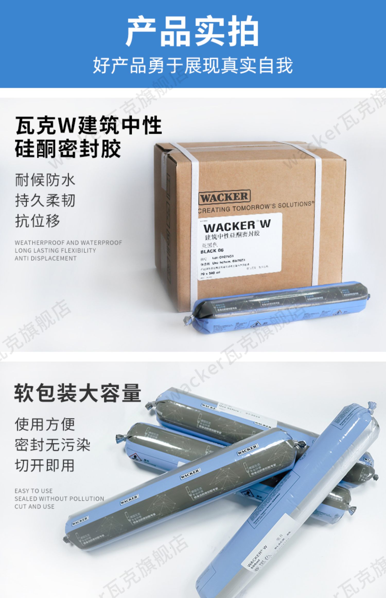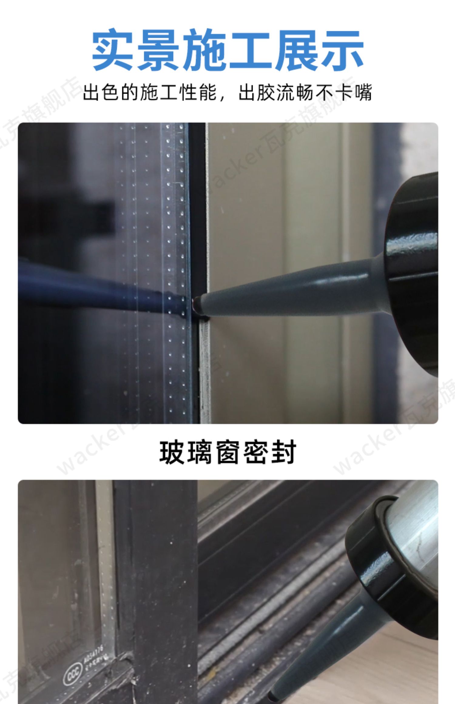 瓦克W中性硅酮耐候密封胶 外墙门窗胶防水密封胶黑色玻璃胶