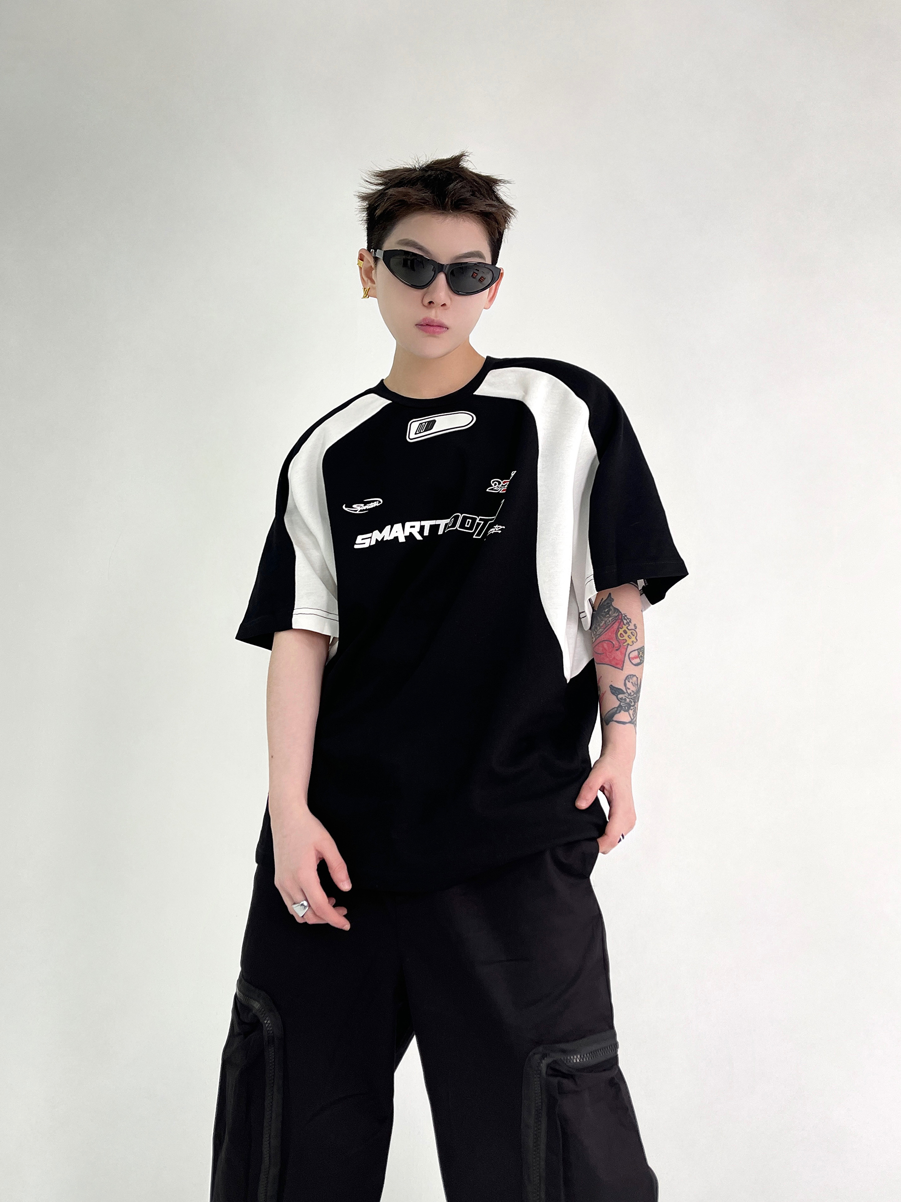 EAT 潮牌印花撞色短袖男寬鬆美式復古2023夏季新款純棉插肩袖T恤
