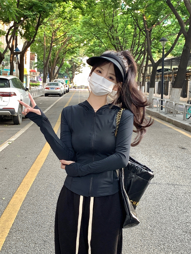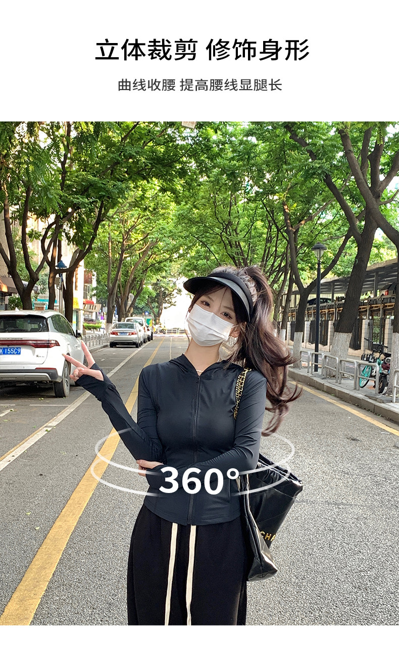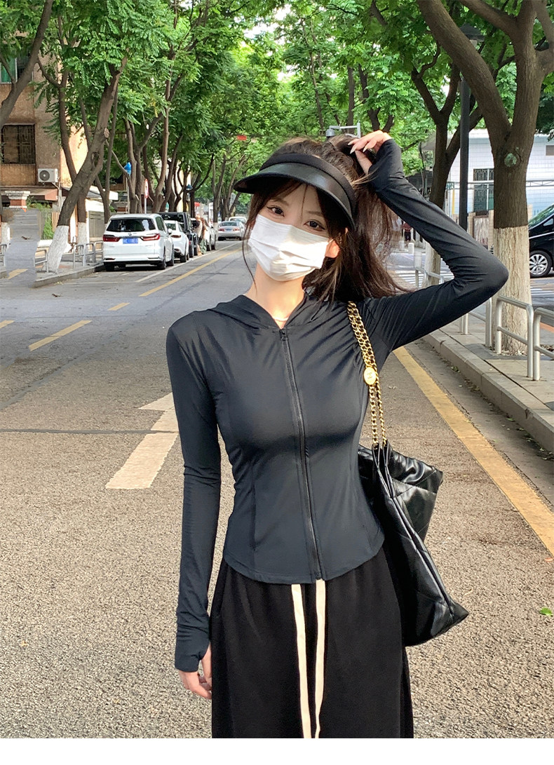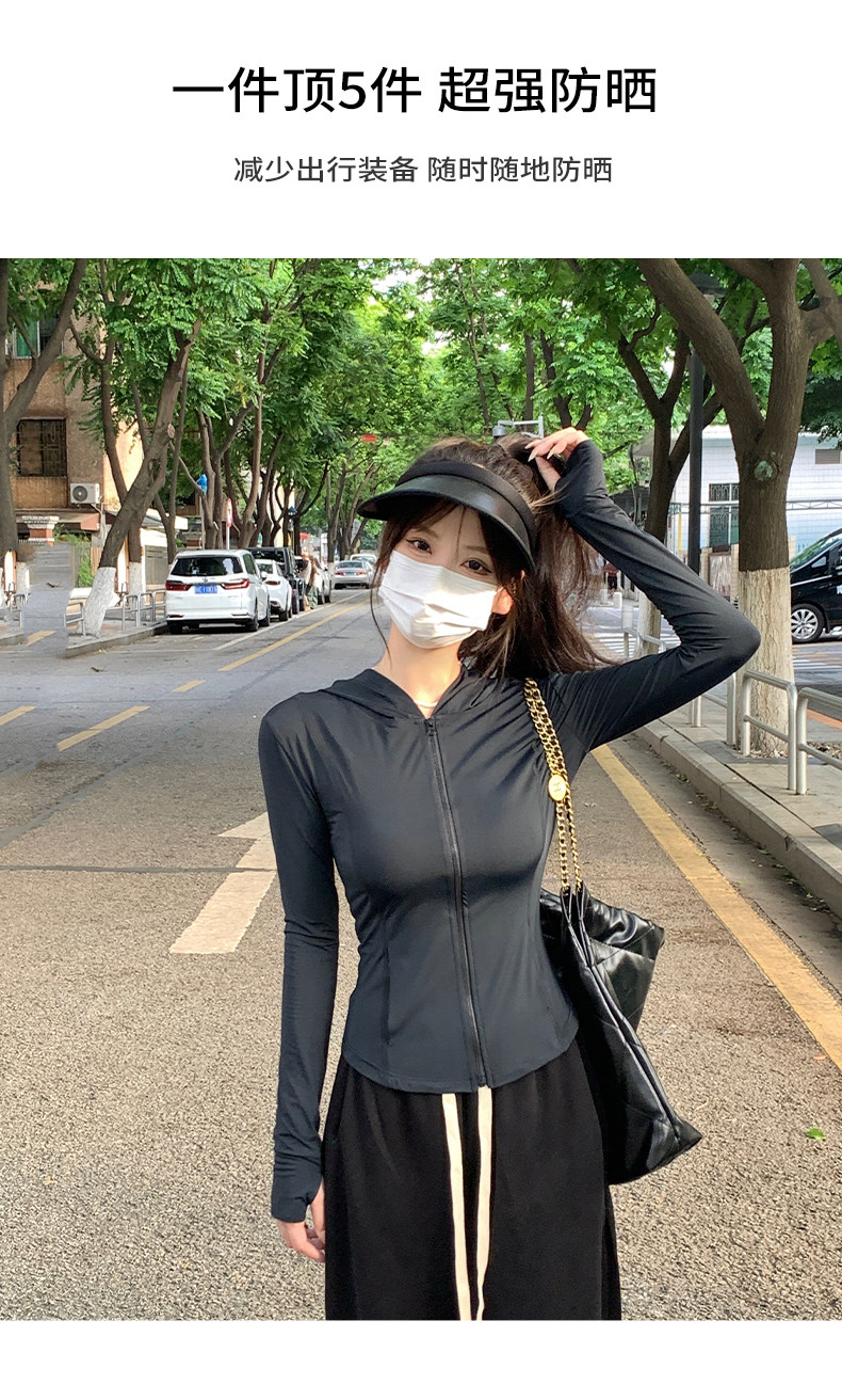 黑色防曬衣女夏冰絲緊身防曬服女款2023新款夏季修身瑜伽上衣套裝