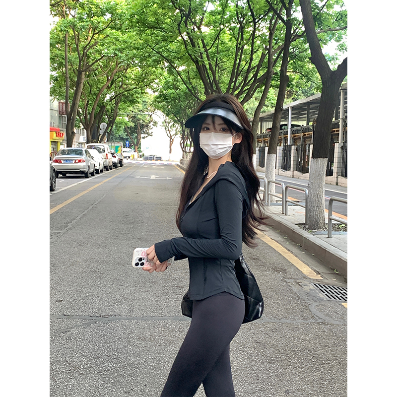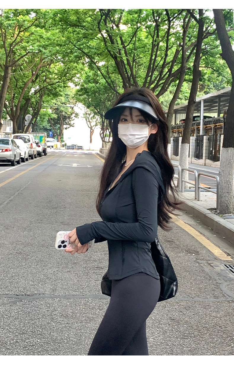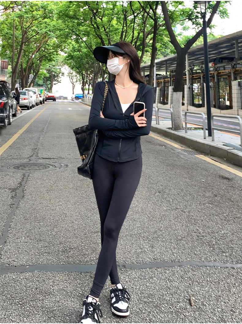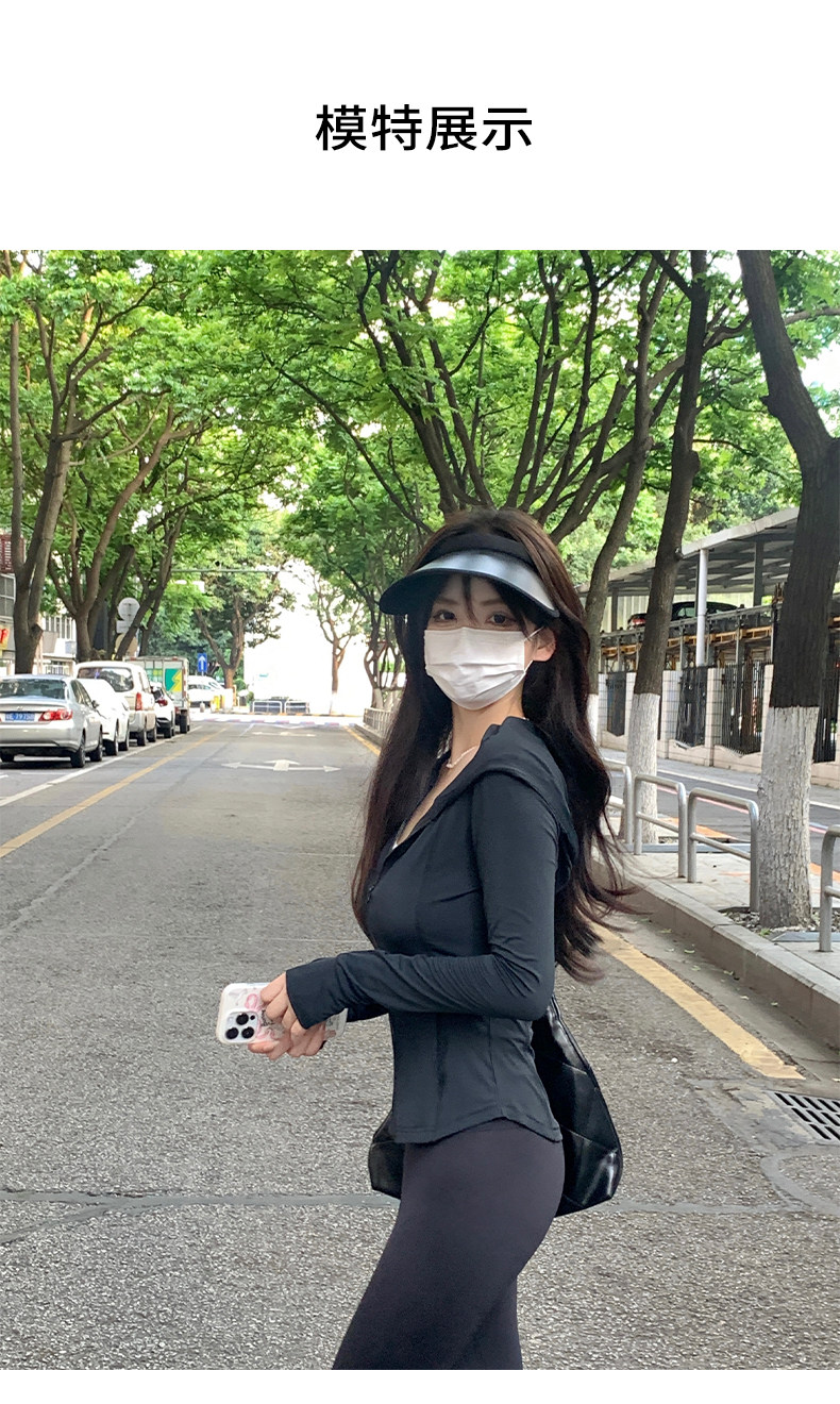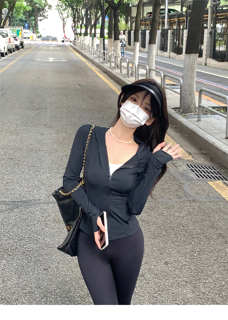 黑色防曬衣女夏冰絲緊身防曬服女款2023新款夏季修身瑜伽上衣套裝