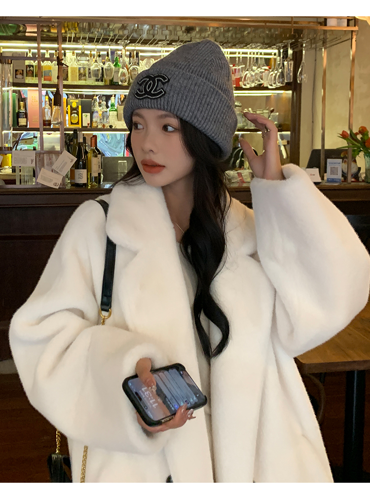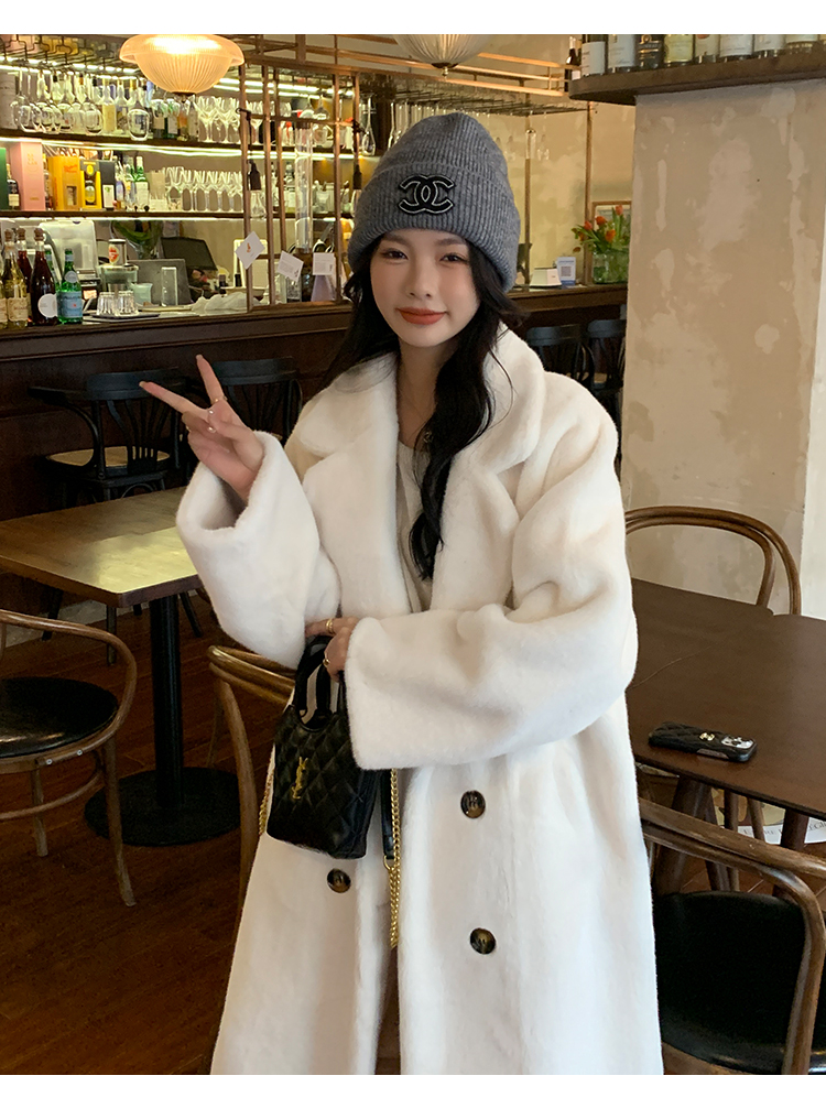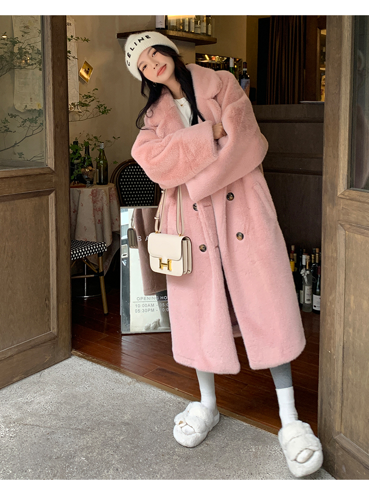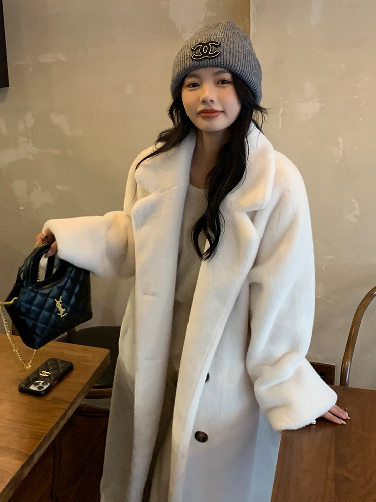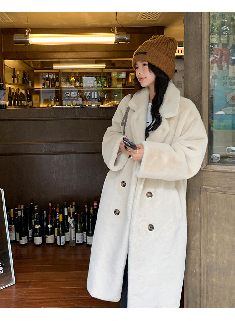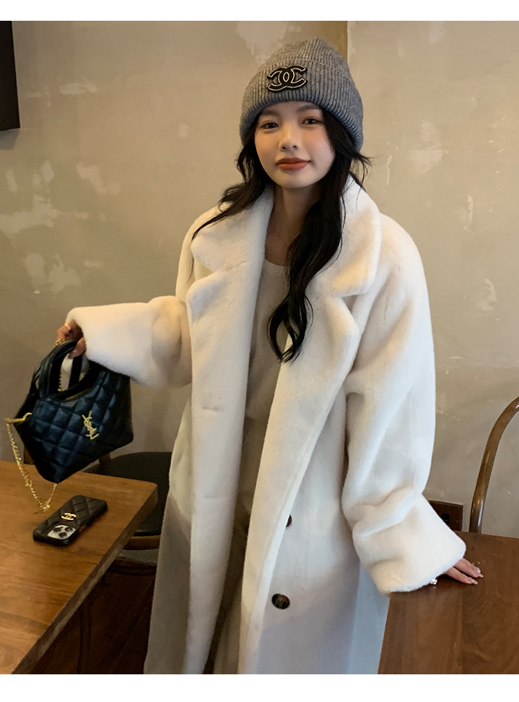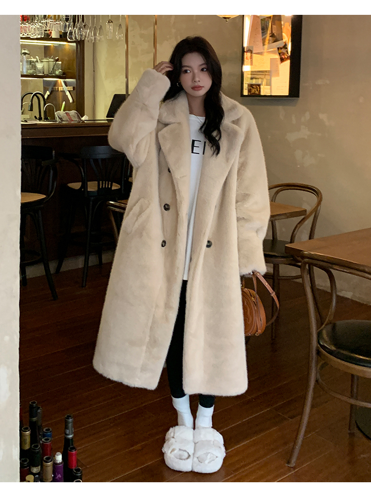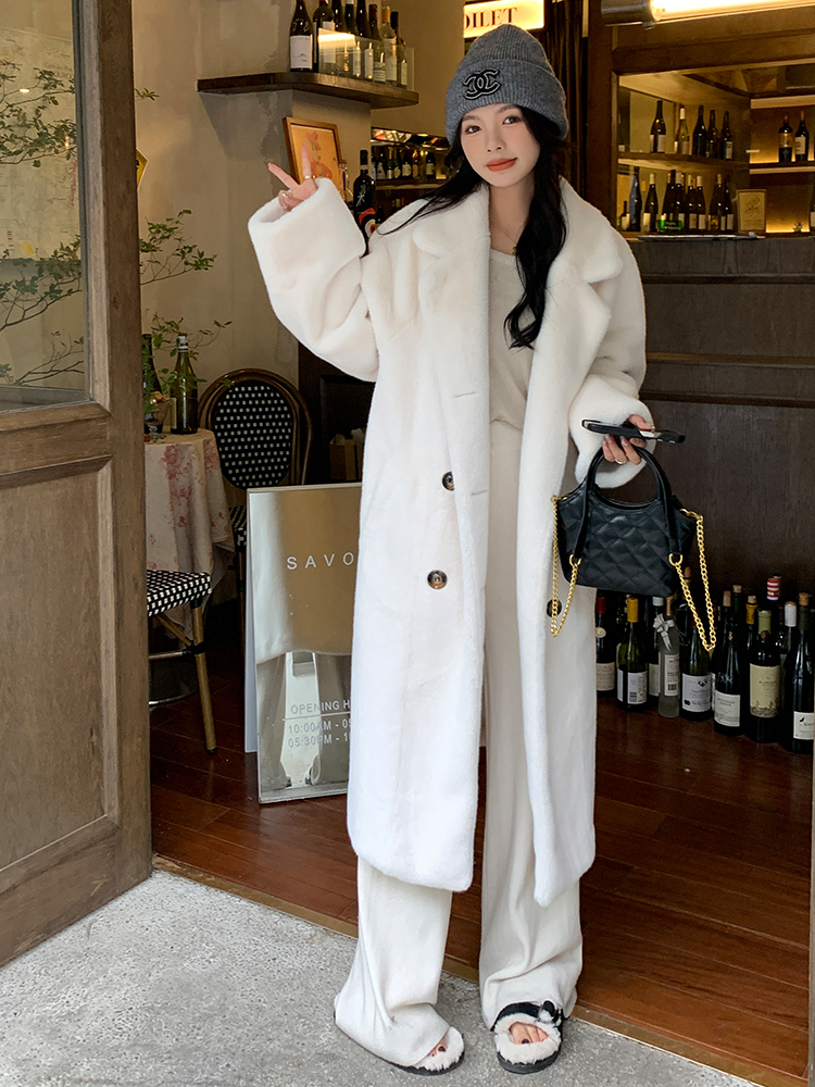 冬季高級慵懶風加厚長版西服領水貂貂絨皮毛一體毛毛環保皮草大衣