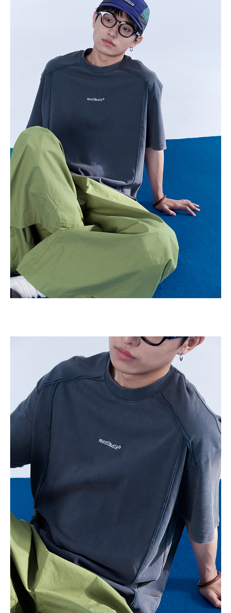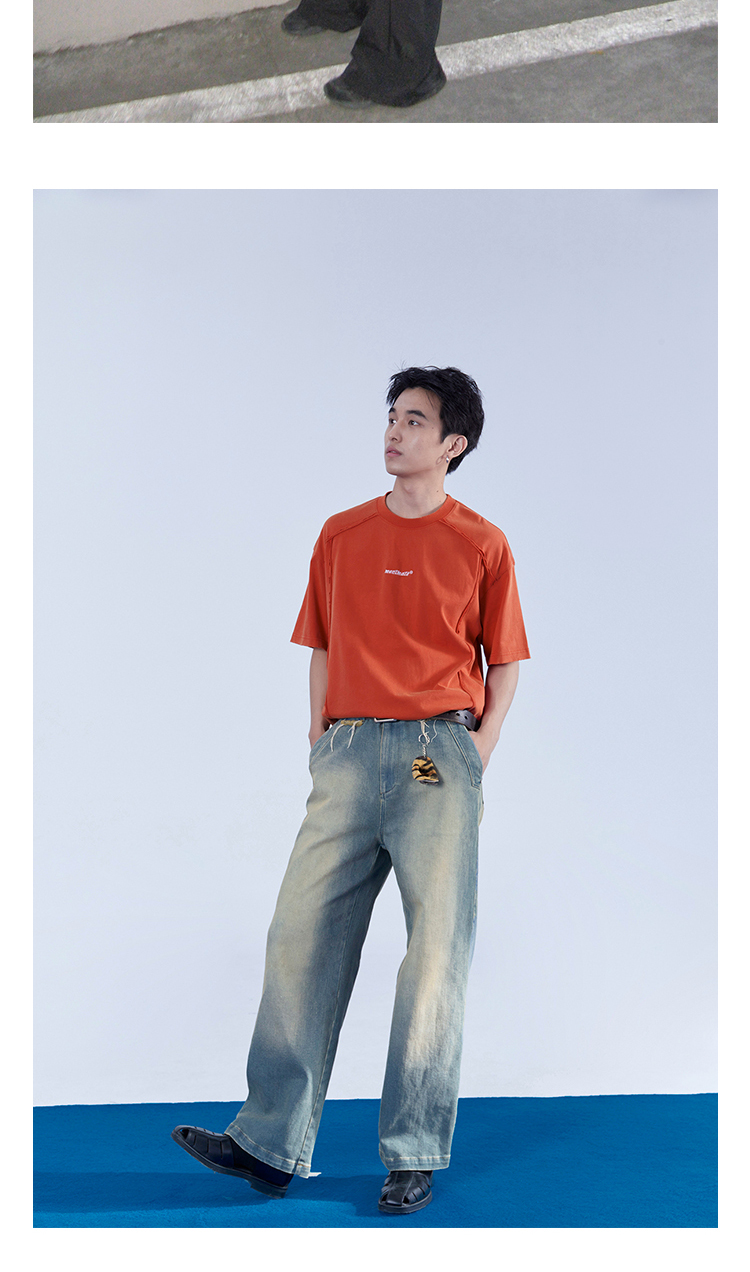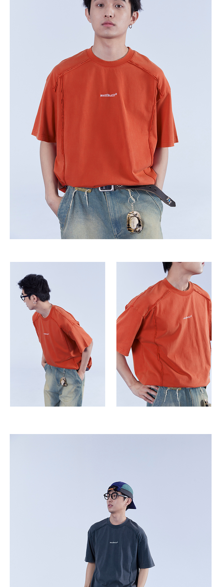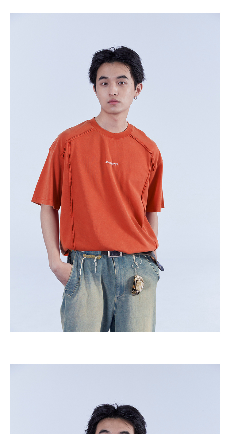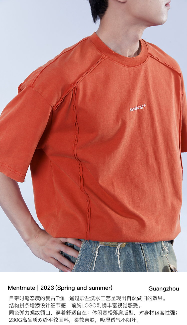 Mentmate 23SS 捲邊拼接小眾設計T恤衫男 夏季百搭圓領基礎款短袖