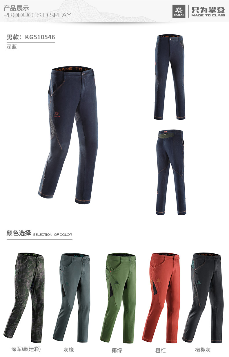 KAILAS凱樂石戶外運動男款V15透氣耐磨防風迷彩褲水洗9A攀巖牛仔