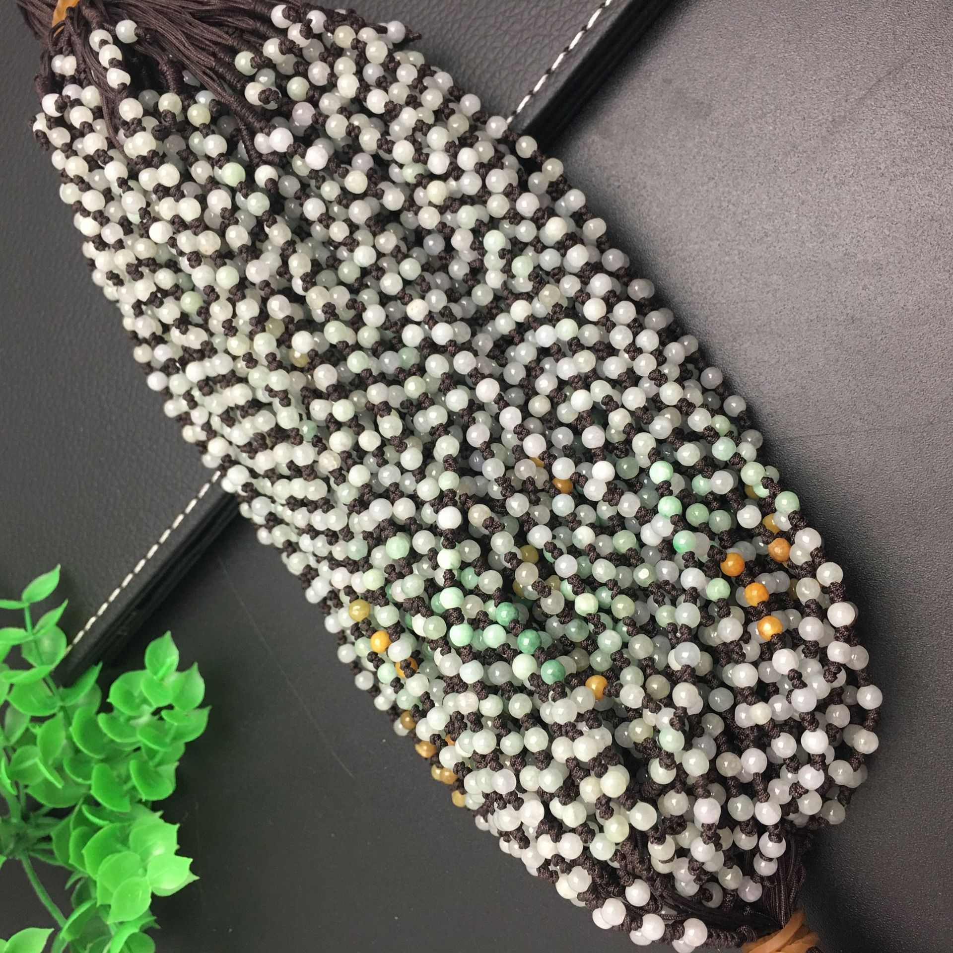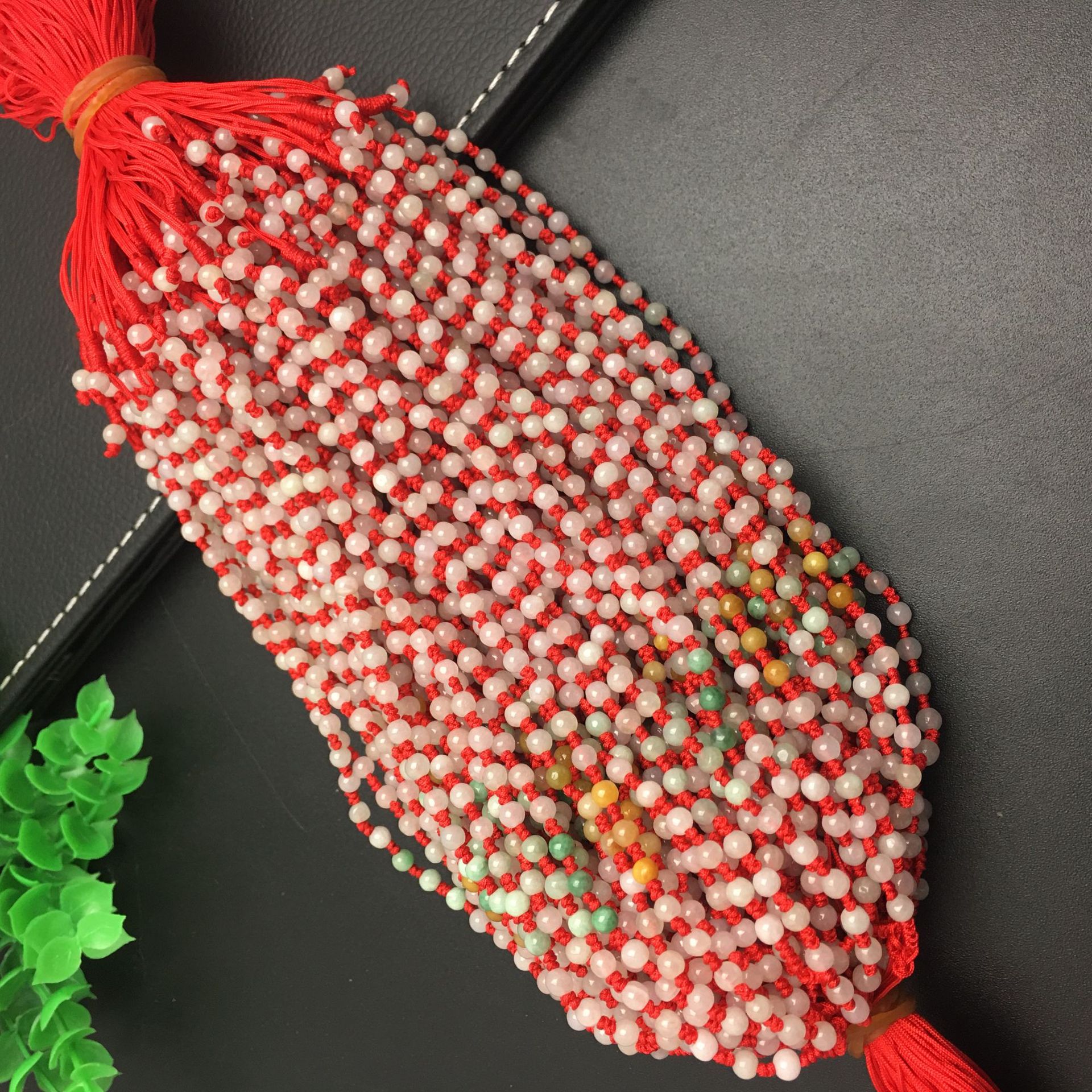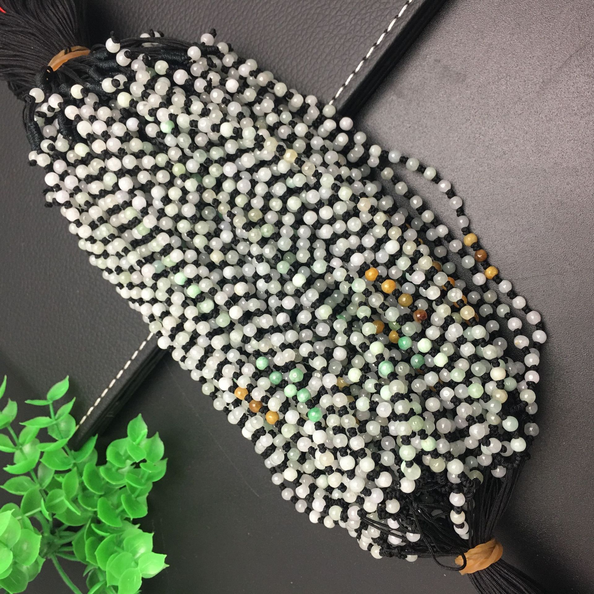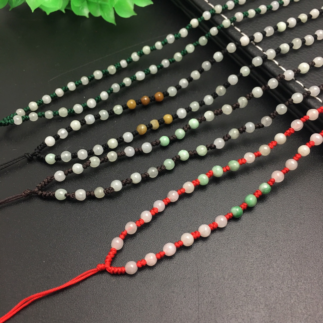 翡翠A货冰种圆珠工艺编织冰种三色挂链挂绳吊坠珠链玉器厂家批发