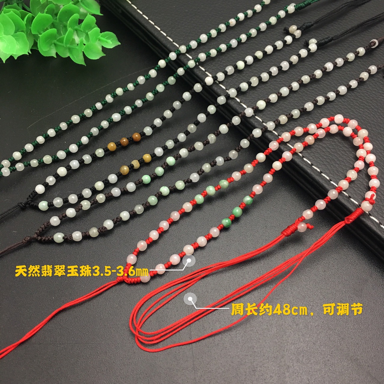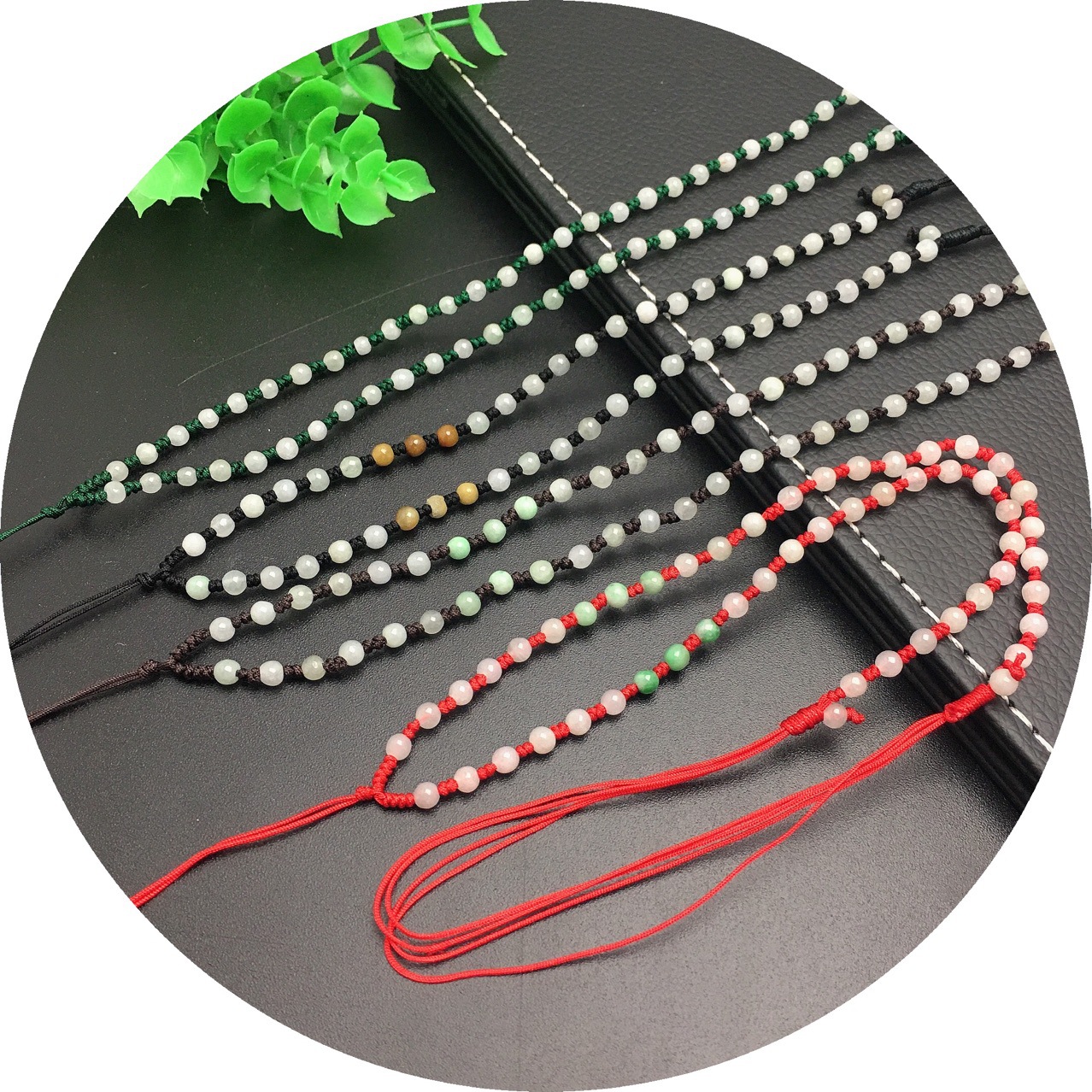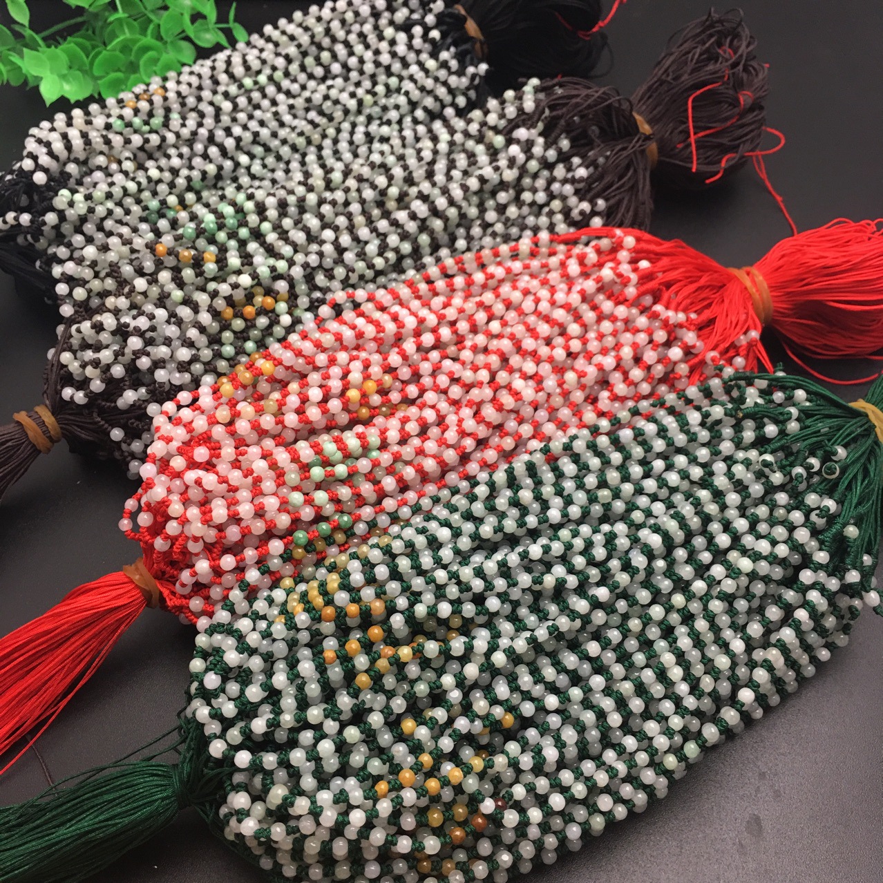 翡翠A货冰种圆珠工艺编织冰种三色挂链挂绳吊坠珠链玉器厂家批发
