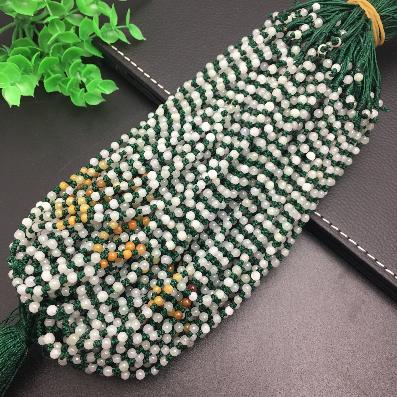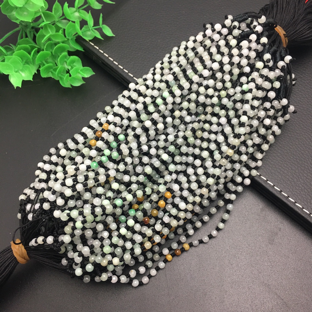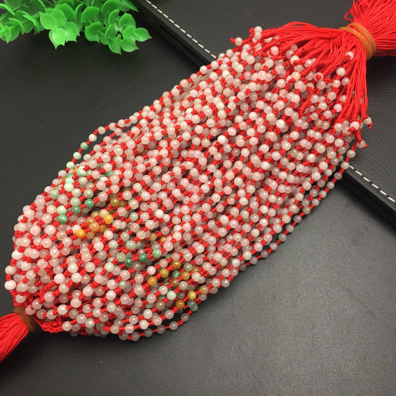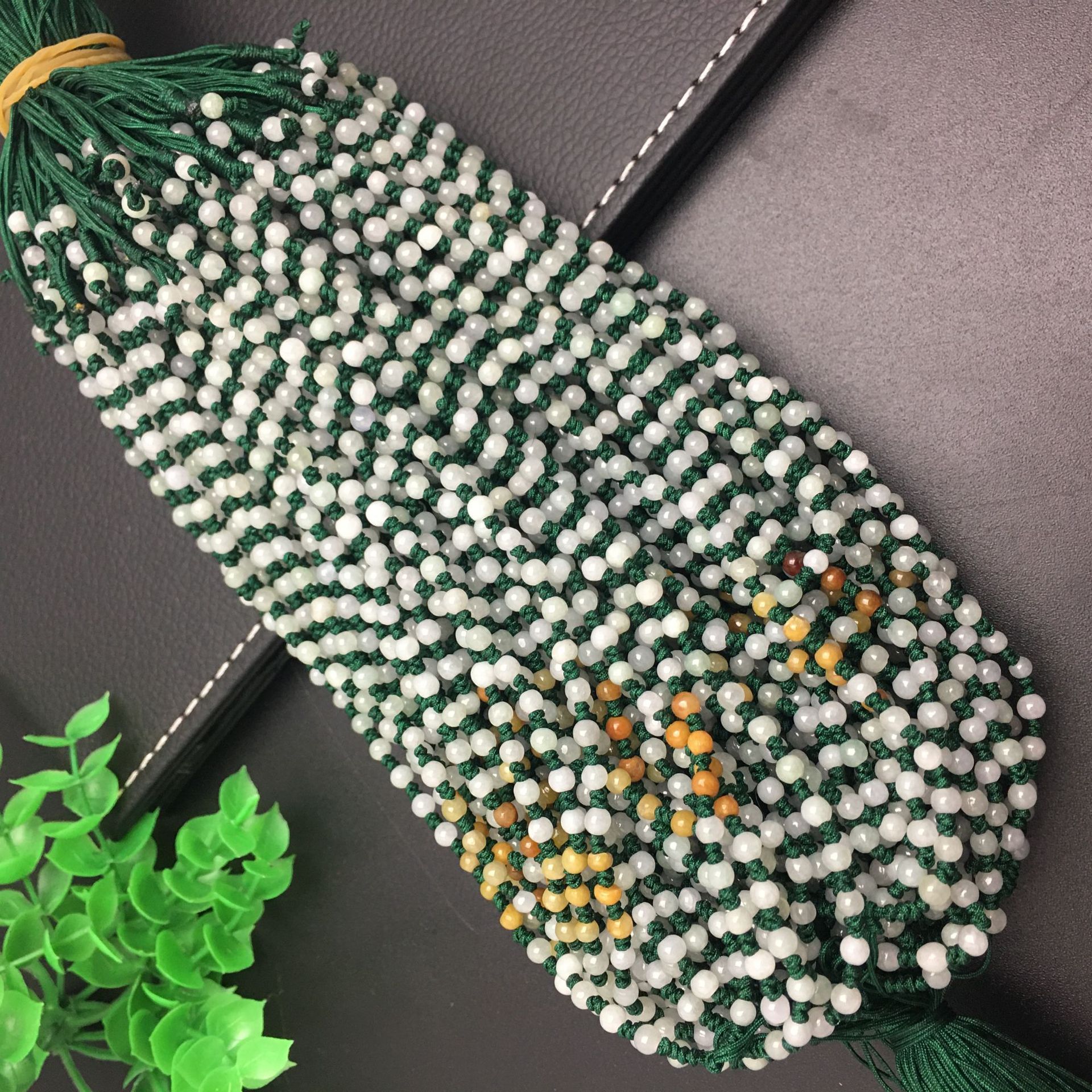 翡翠A货冰种圆珠工艺编织冰种三色挂链挂绳吊坠珠链玉器厂家批发