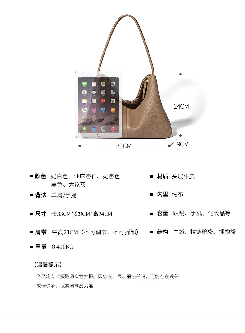头层togo牛皮法式单肩包腋下包小众时尚质感大容量斜挎女包包