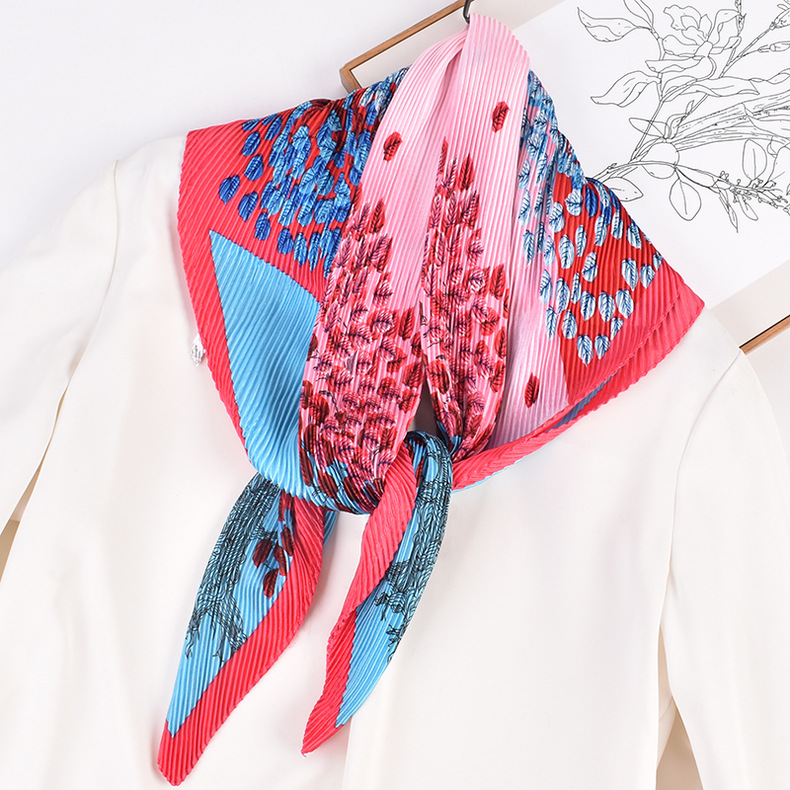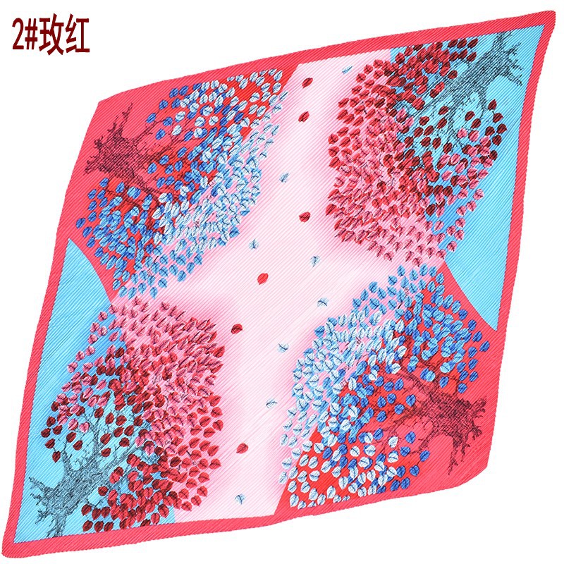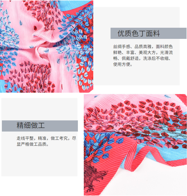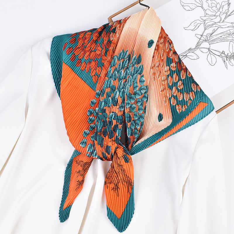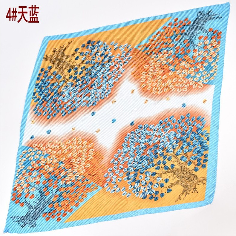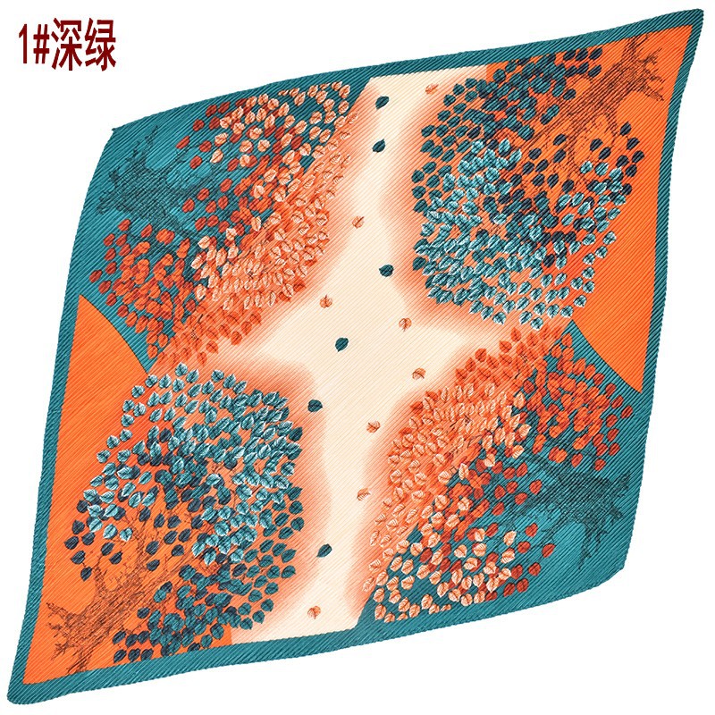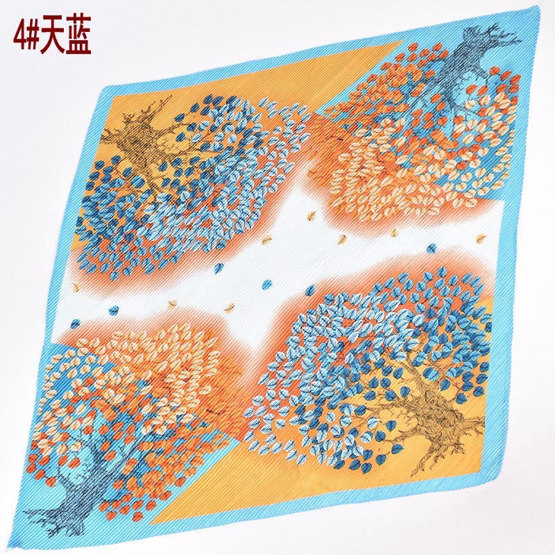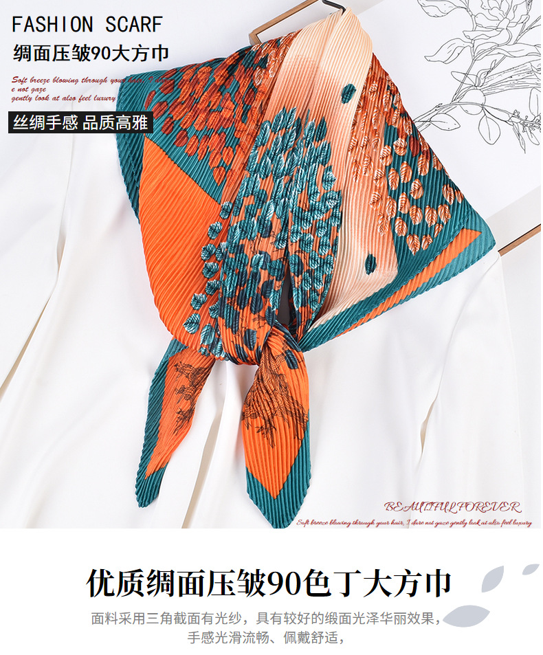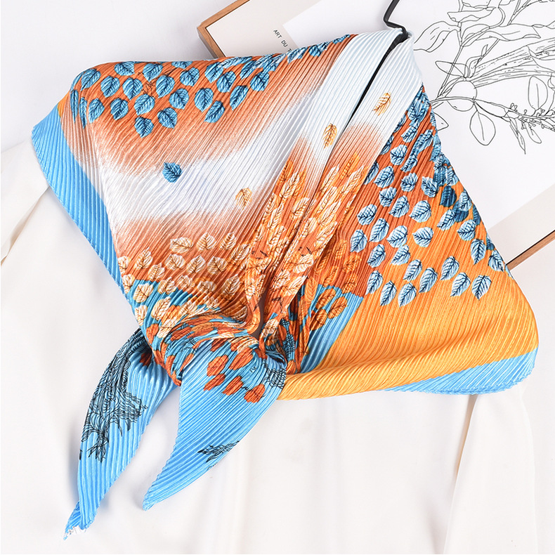 2023时尚气质新款五彩叶子压皱90色丁大方巾头巾现货仿真丝围巾