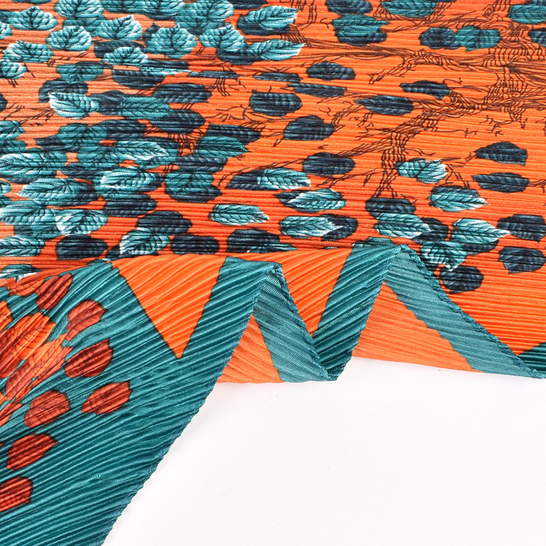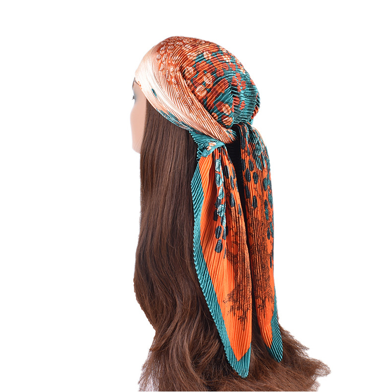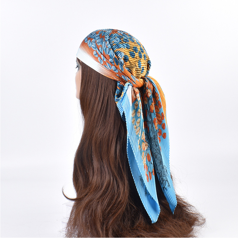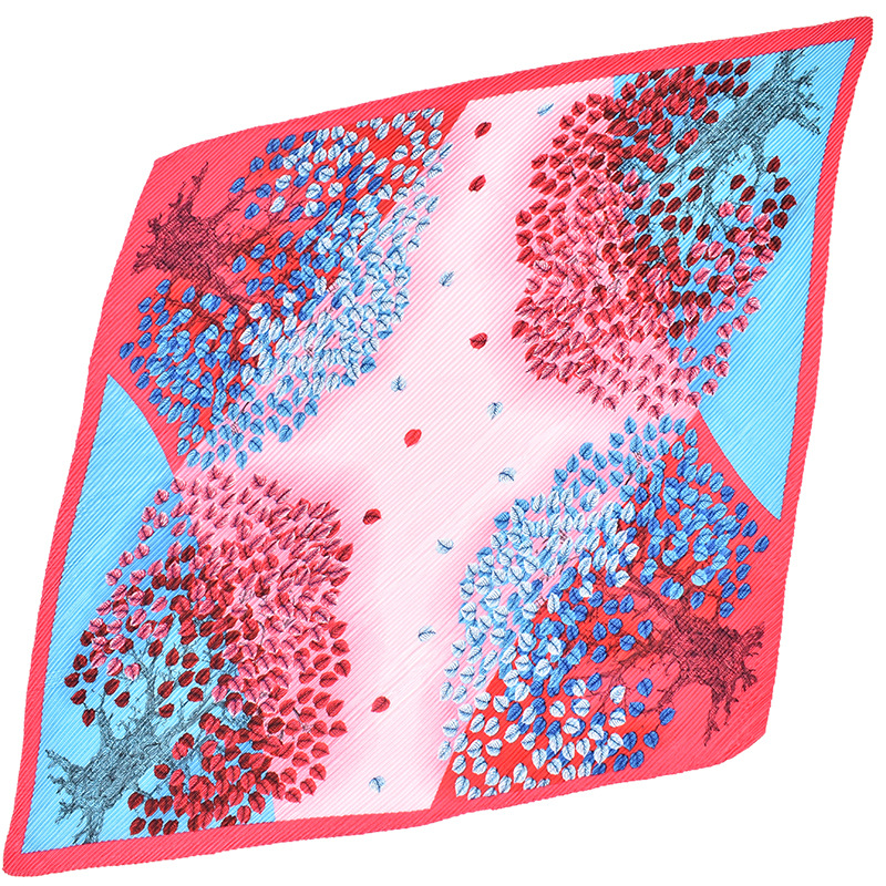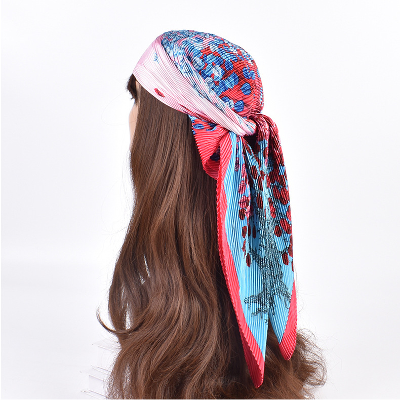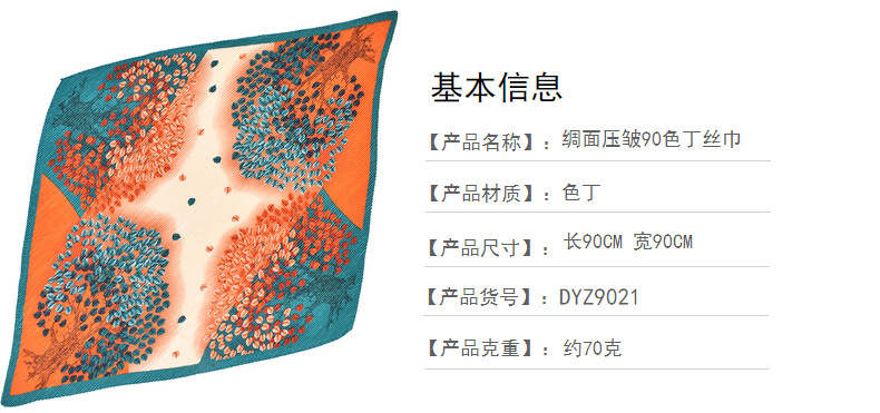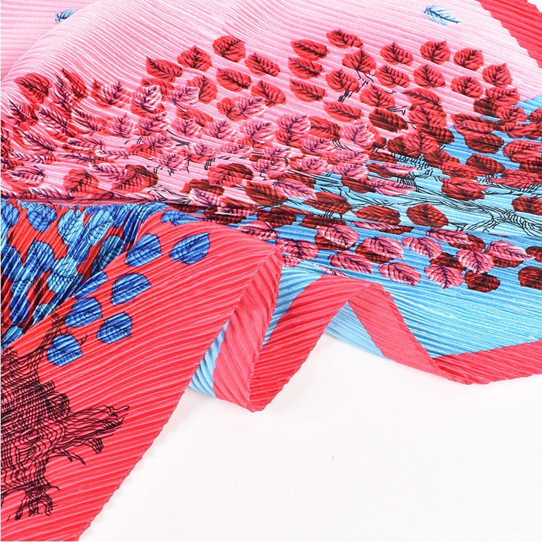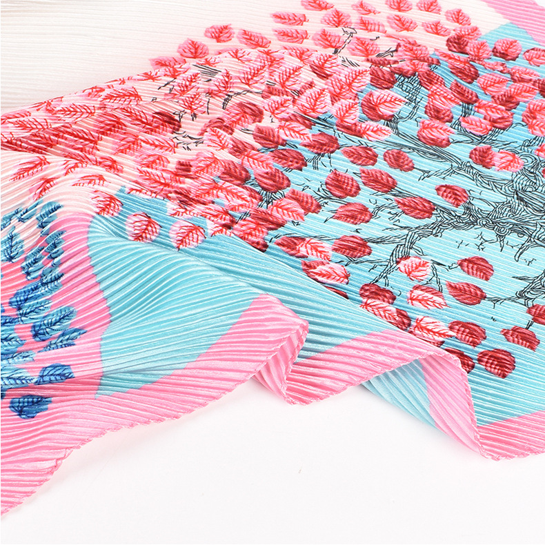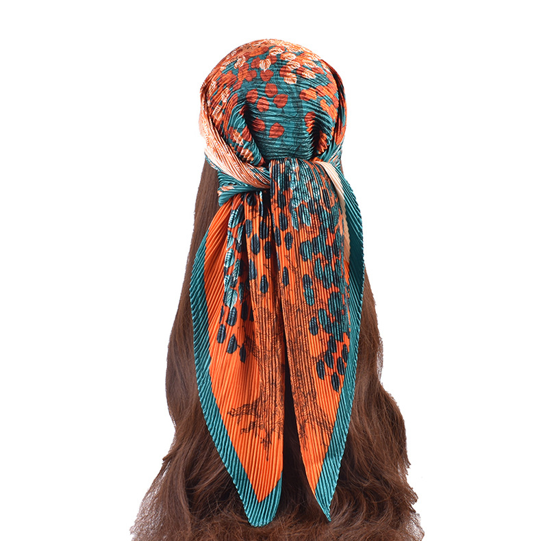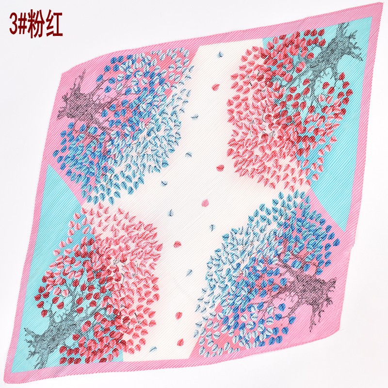 2023时尚气质新款五彩叶子压皱90色丁大方巾头巾现货仿真丝围巾