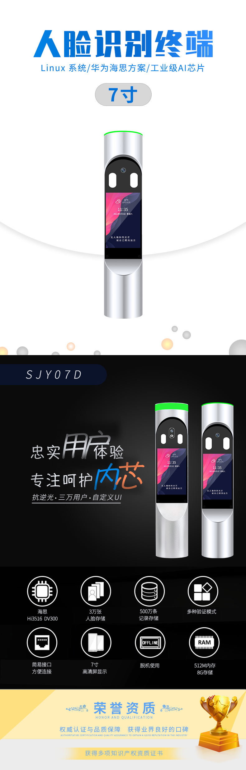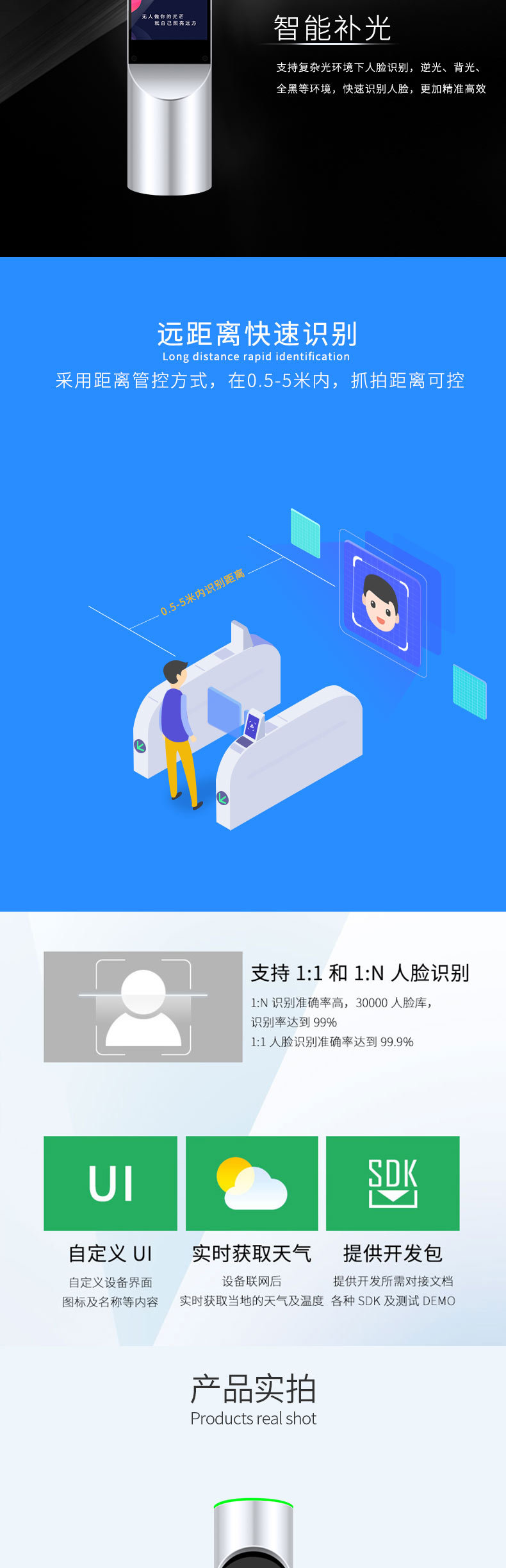 圆柱人脸识别一体机智慧工地社区通道闸机可支持二次开发工厂直销