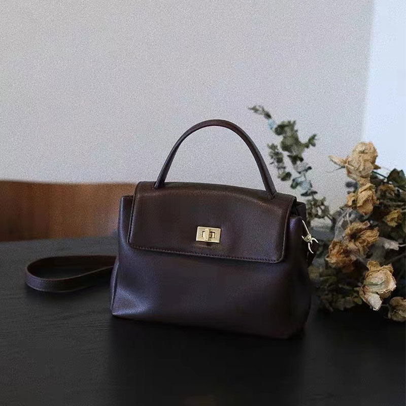 质感软牛皮手拎包中号2024新款复古小方包百搭时尚单肩包斜挎女包