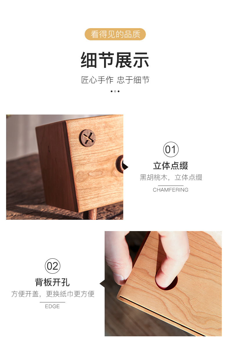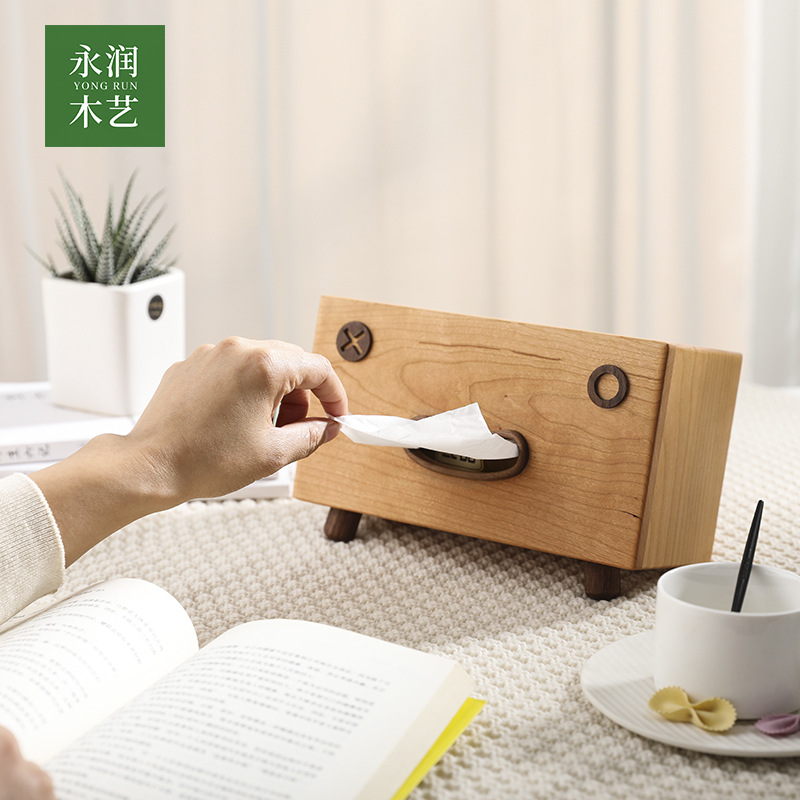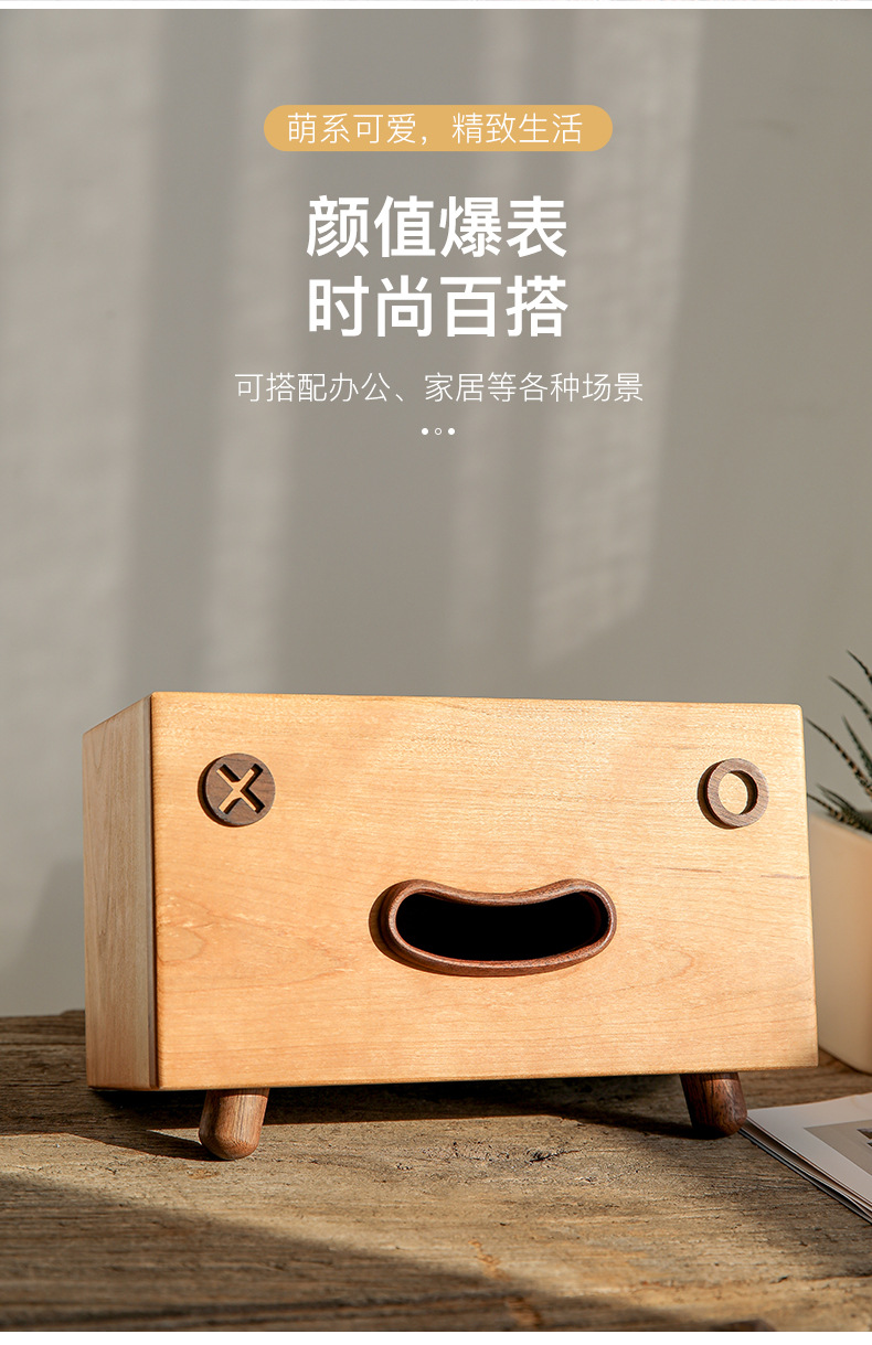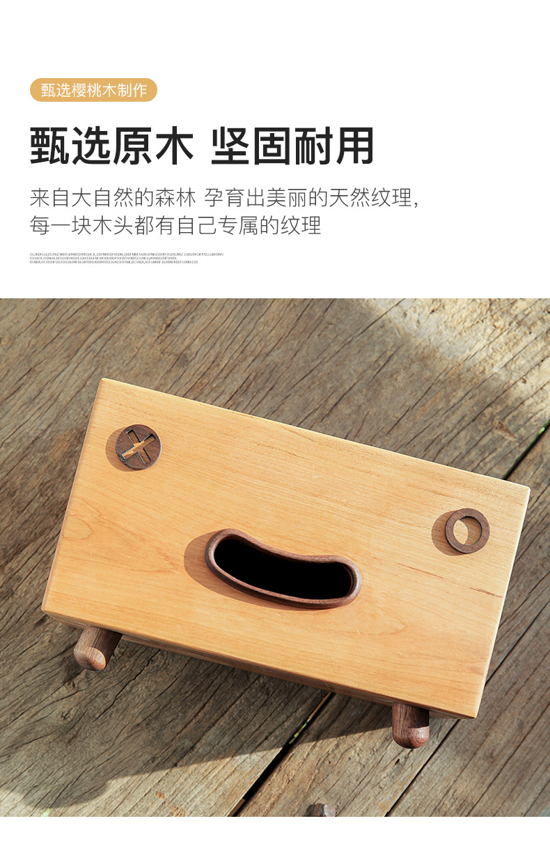 厂家代发批发樱桃实木笑脸抽纸盒创意卡通纸巾盒代发纸巾收纳盒