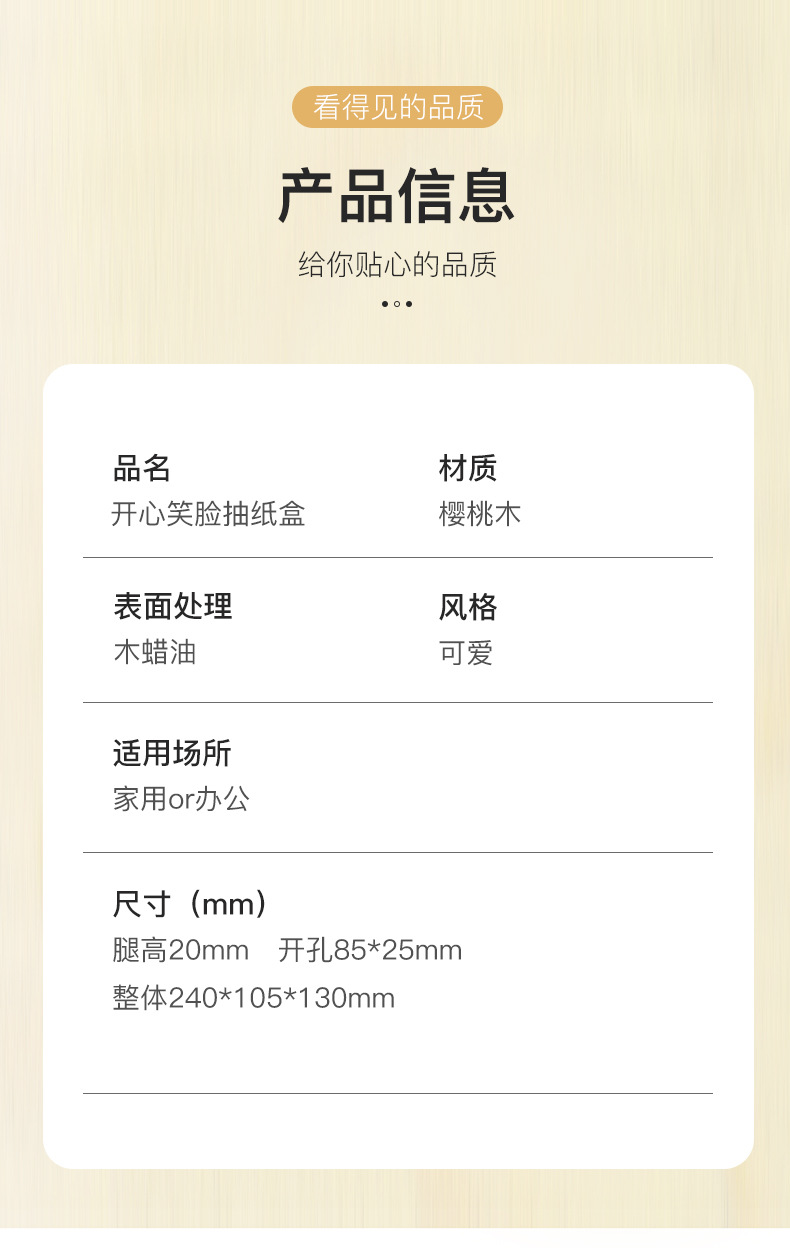 颜色 笑脸抽纸盒(樱桃木)