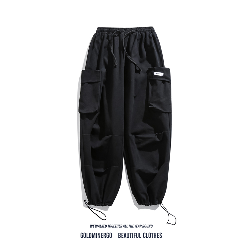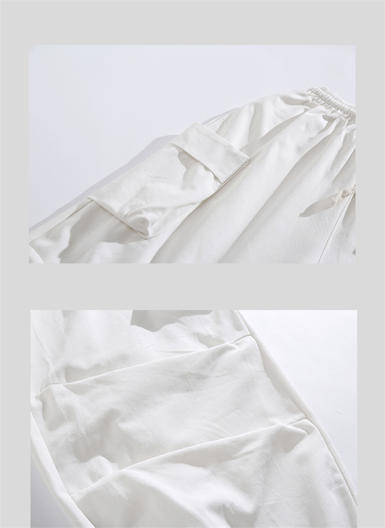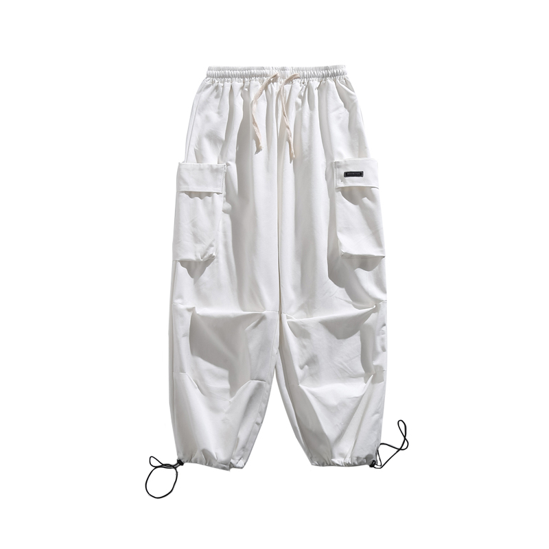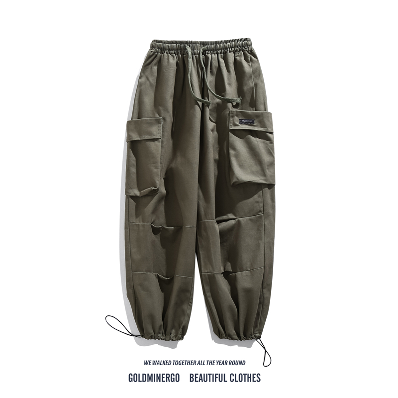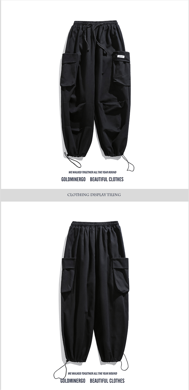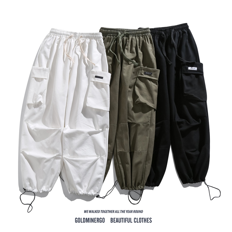 日系復古工裝褲男潮牌夏季寬鬆直筒休閒大口袋九分運動束腳哈倫褲