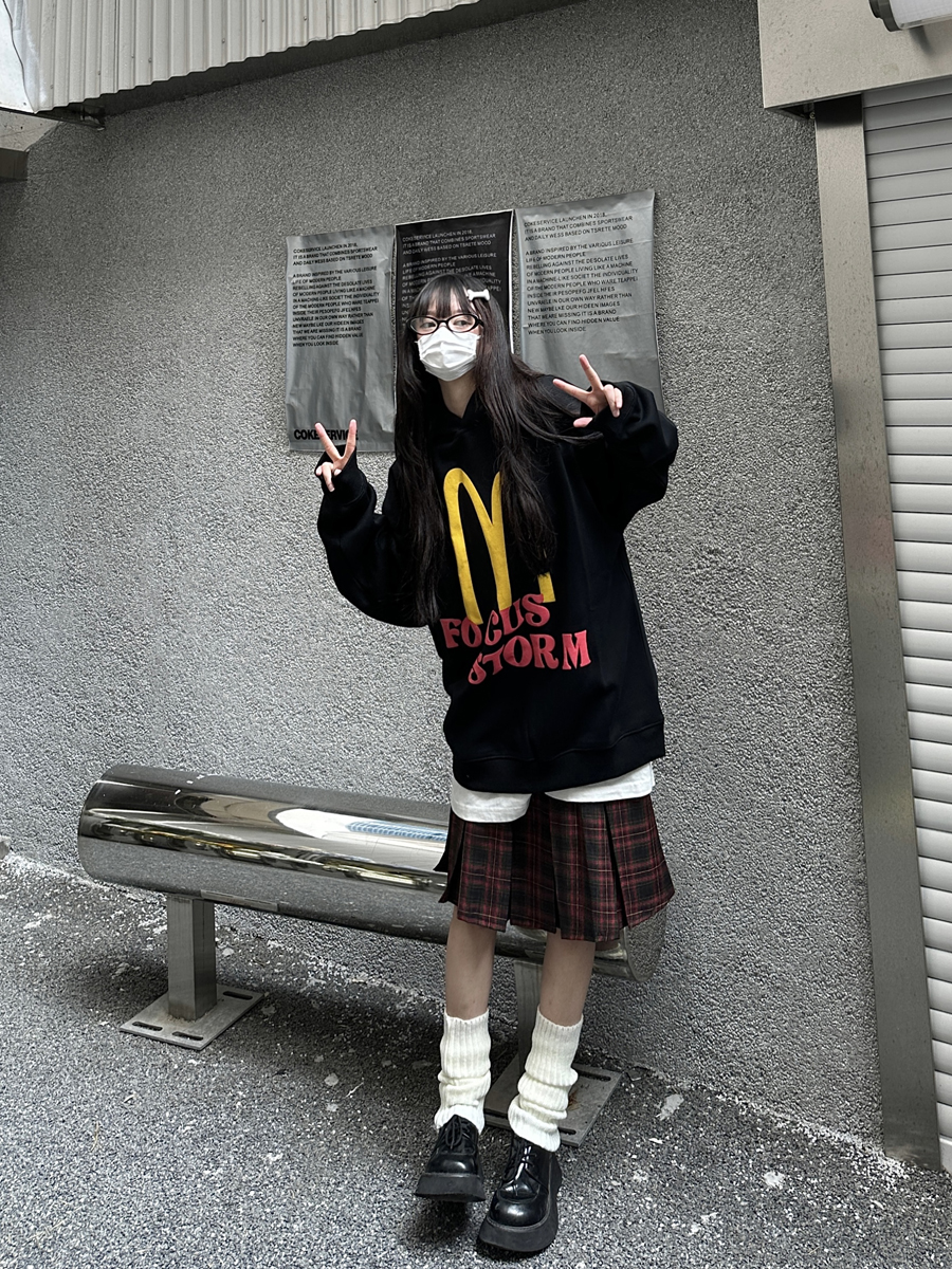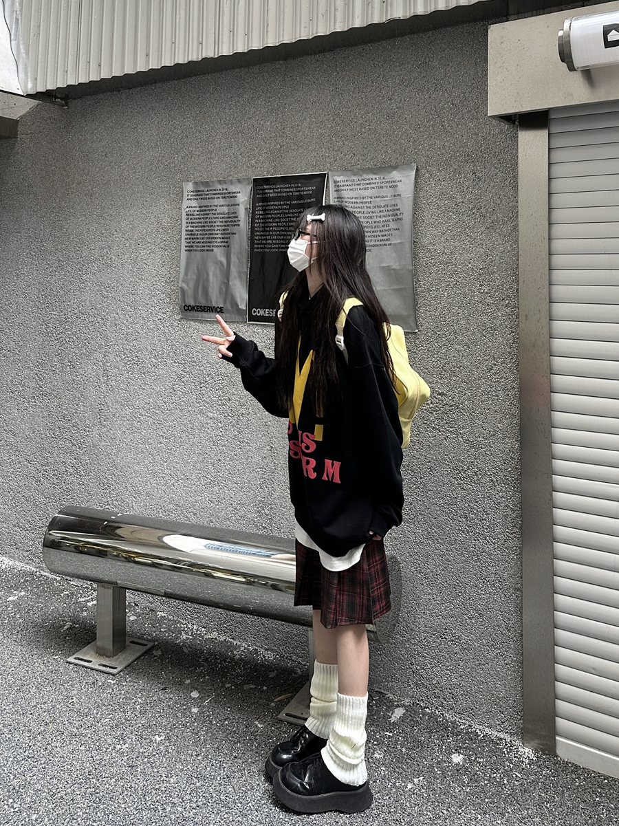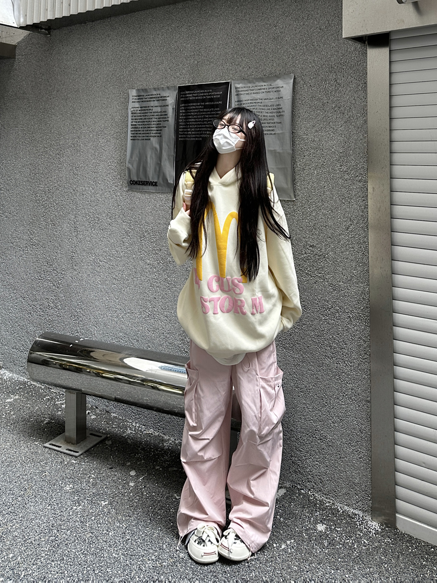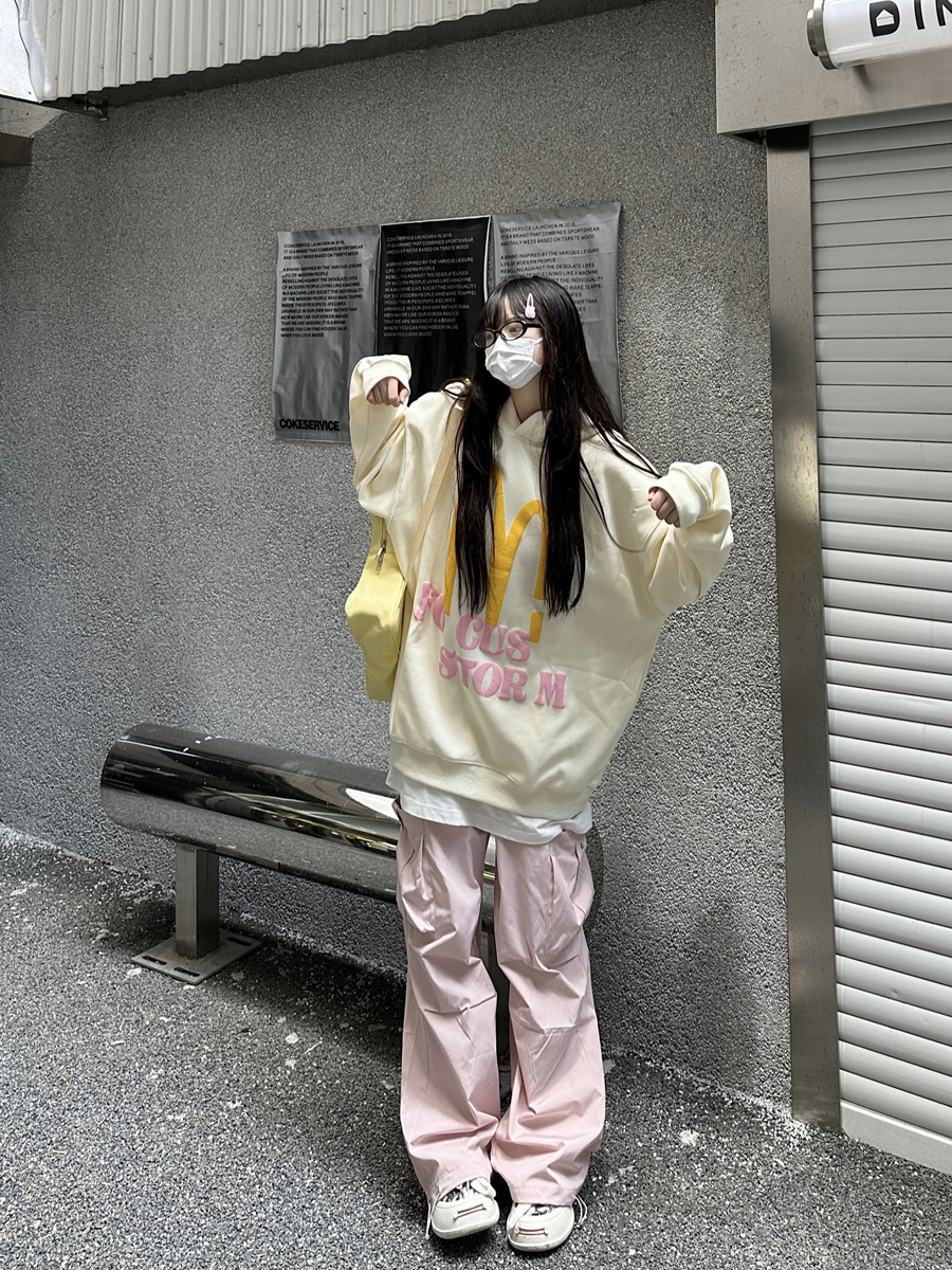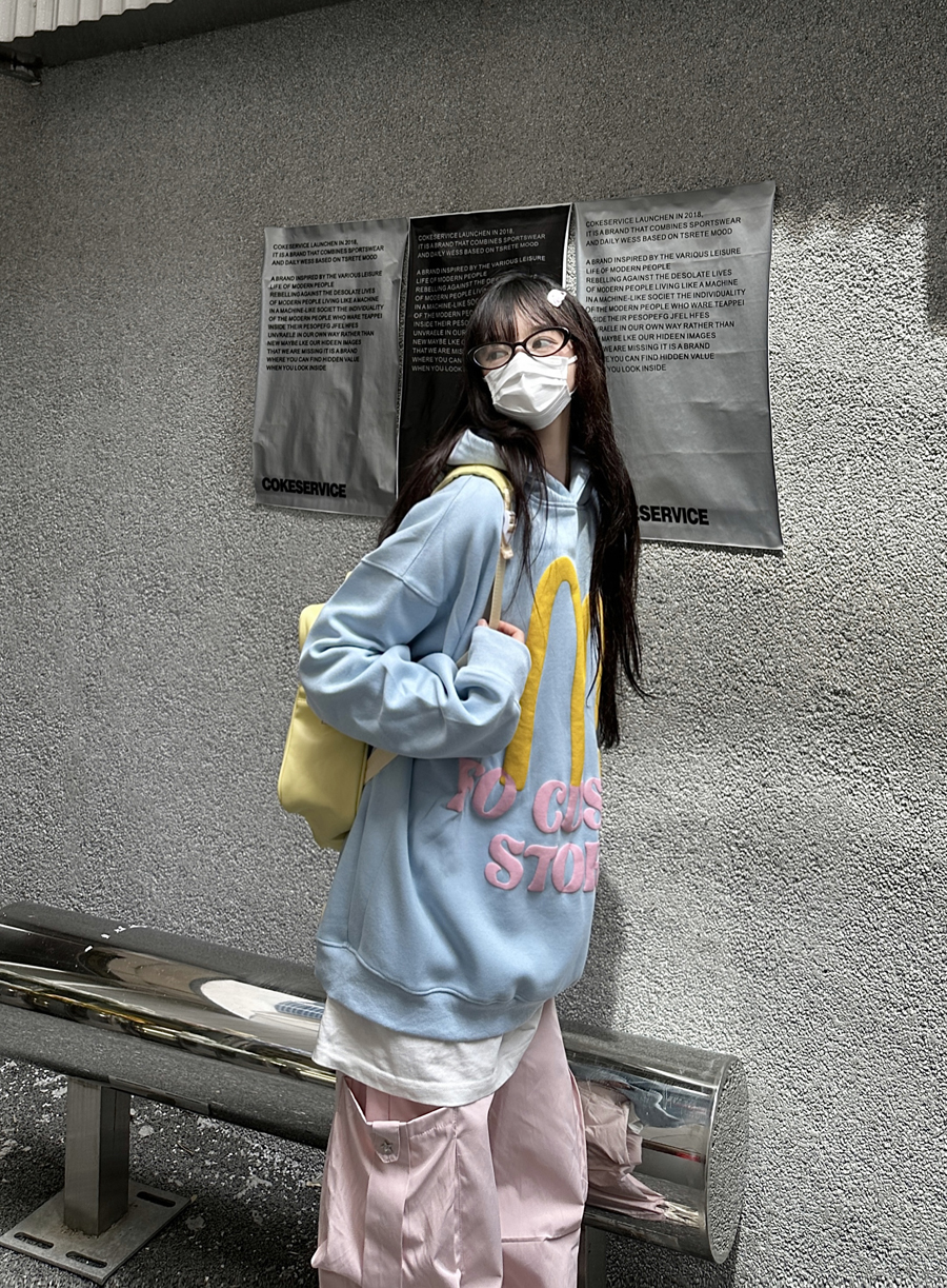 咖哩人美式復古麥當勞M字母印花連帽運動衫男女秋季高街情侶寬鬆潮