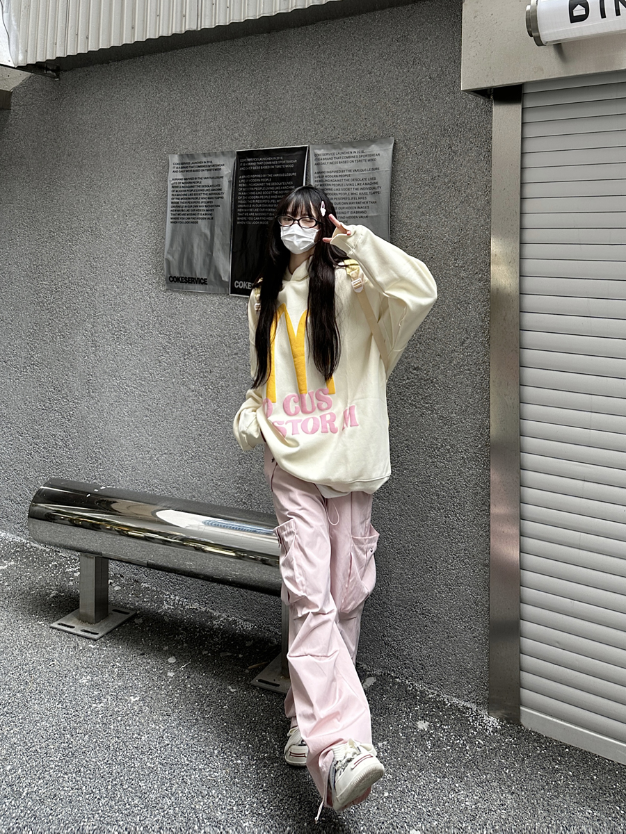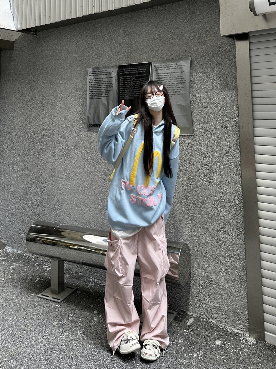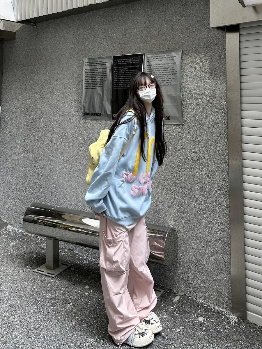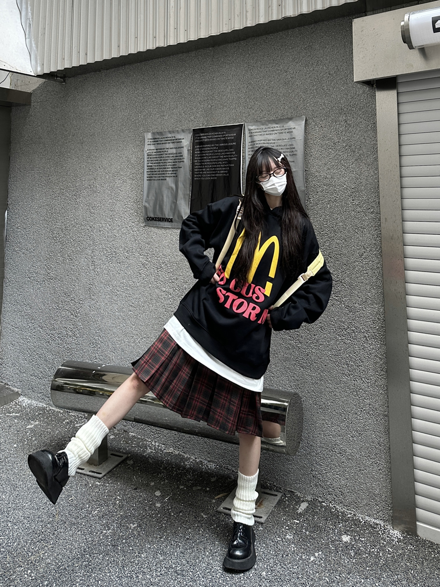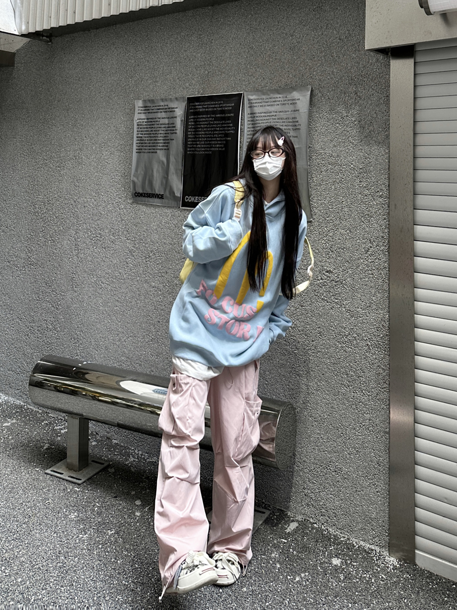 咖哩人美式復古麥當勞M字母印花連帽運動衫男女秋季高街情侶寬鬆潮
