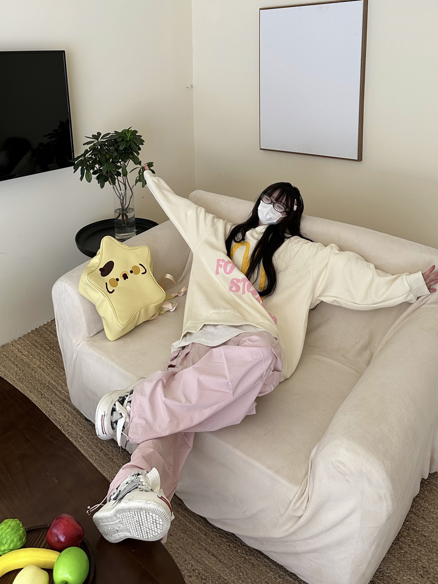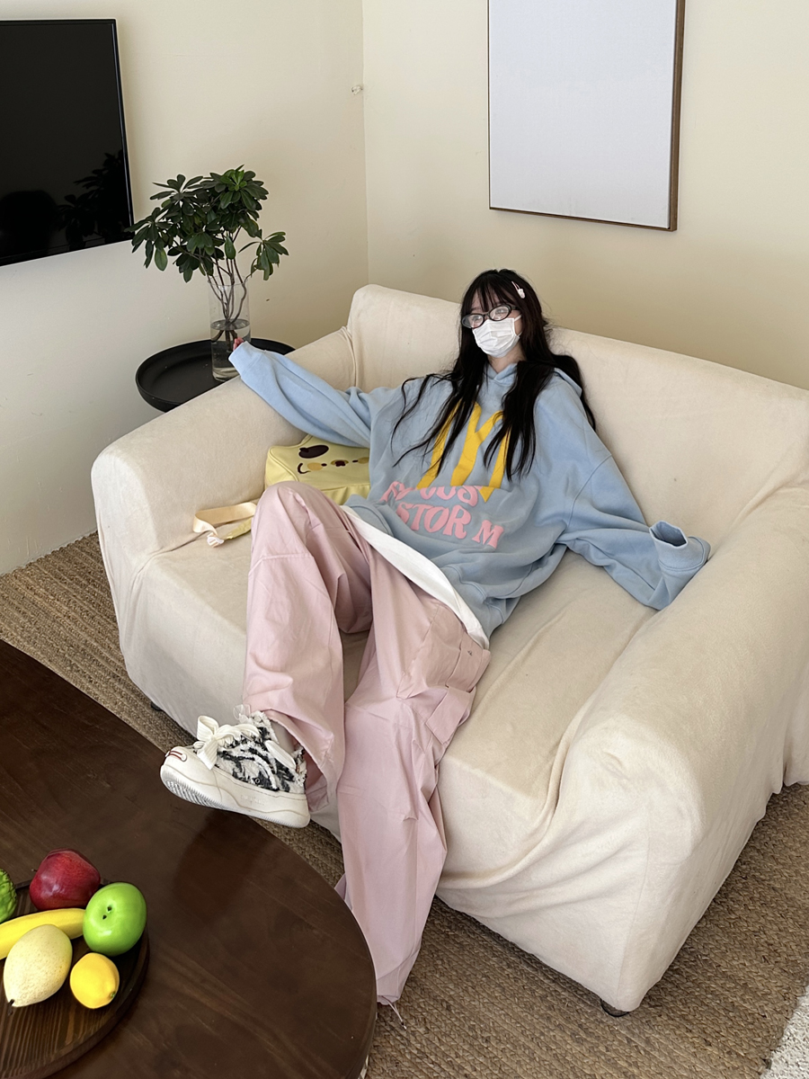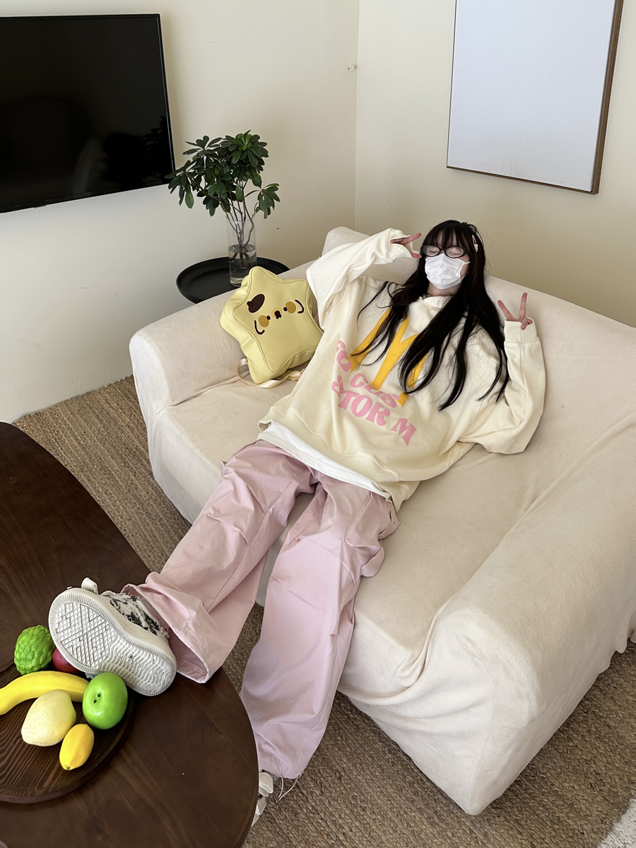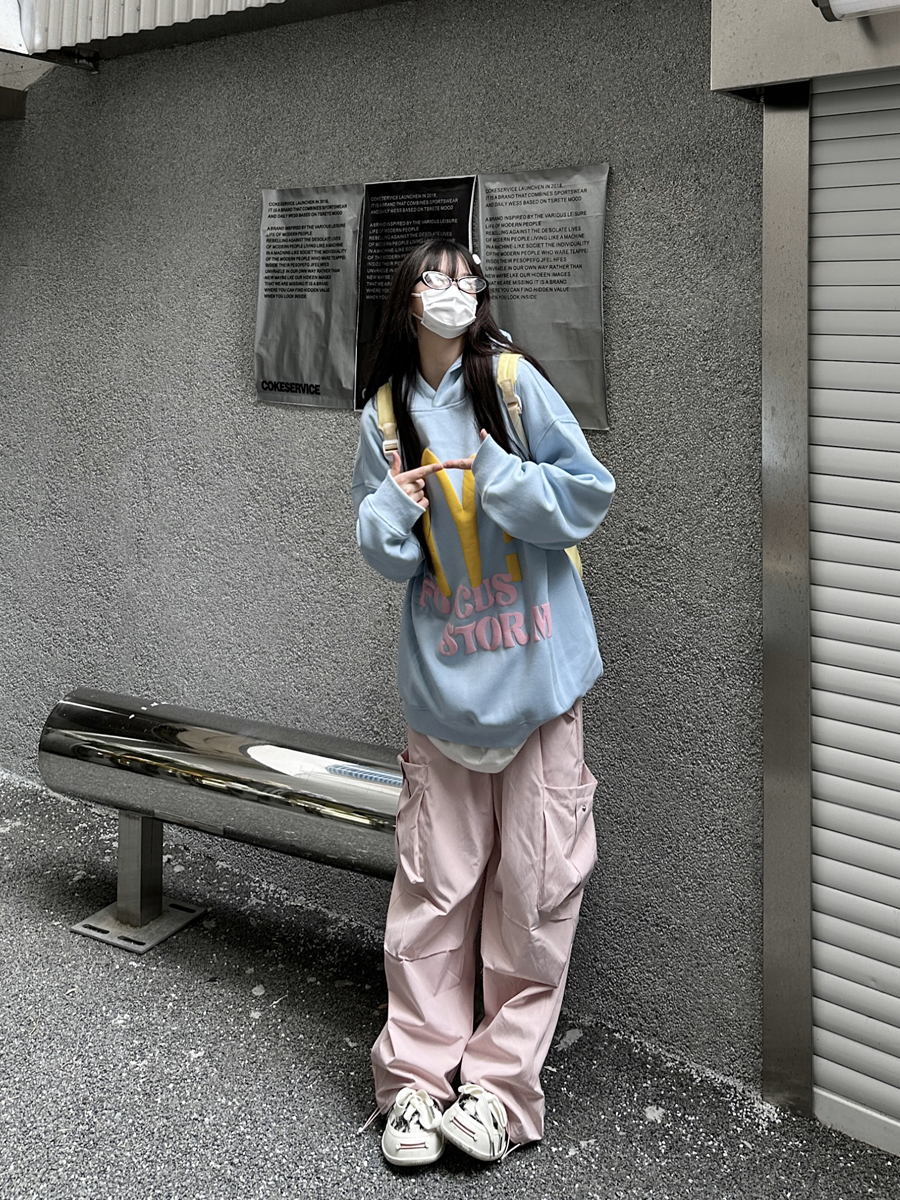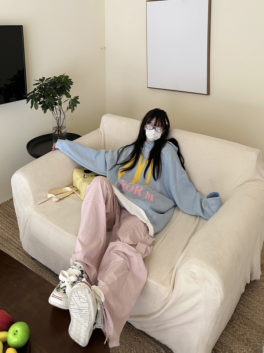 咖哩人美式復古麥當勞M字母印花連帽運動衫男女秋季高街情侶寬鬆潮