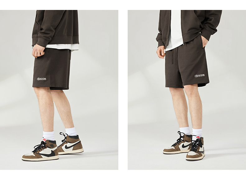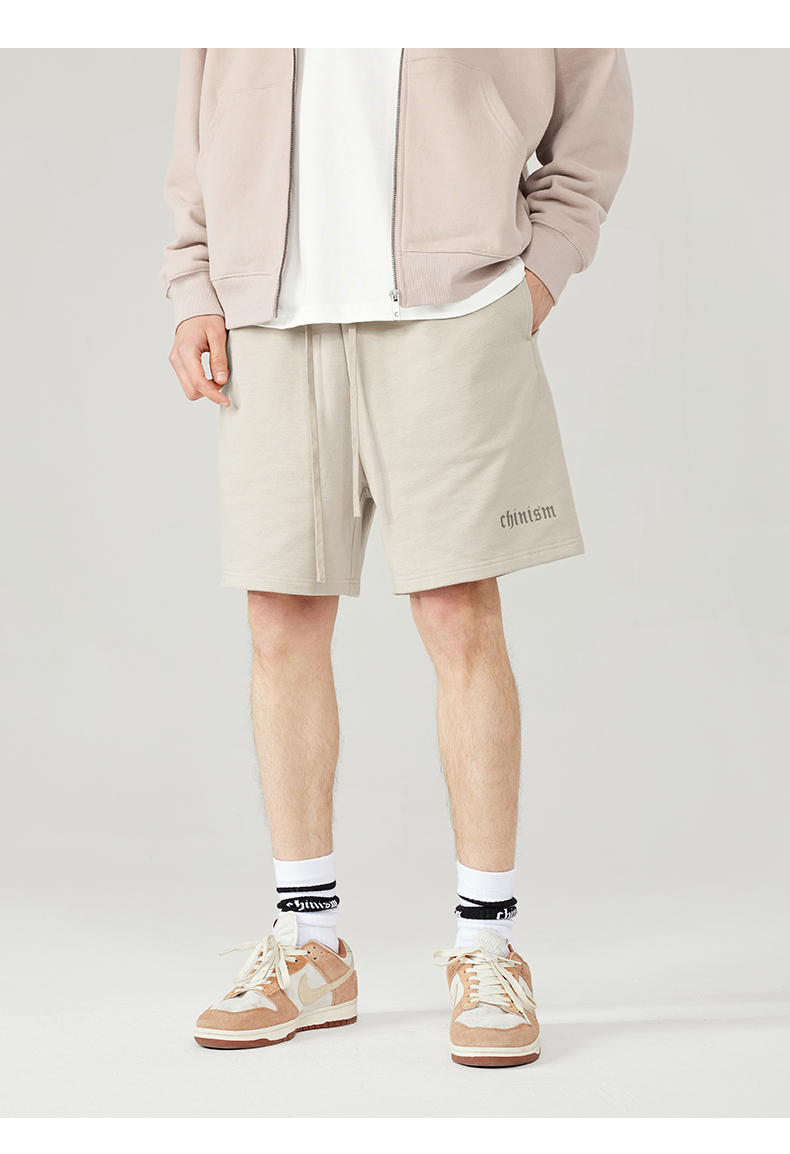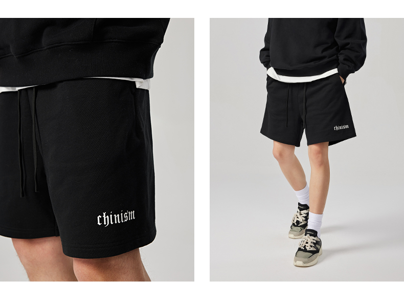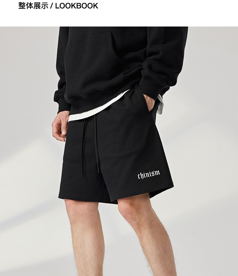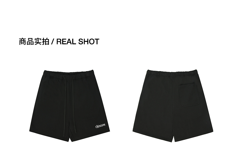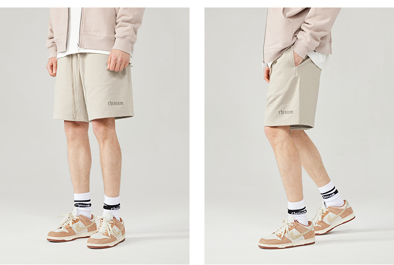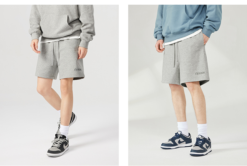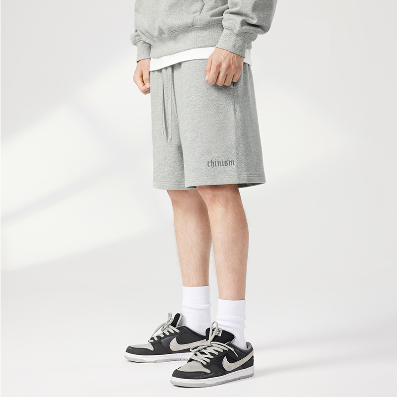CHINISM CH灰色休閒短褲男運動寬鬆夏季美式高街男生潮牌五分褲子