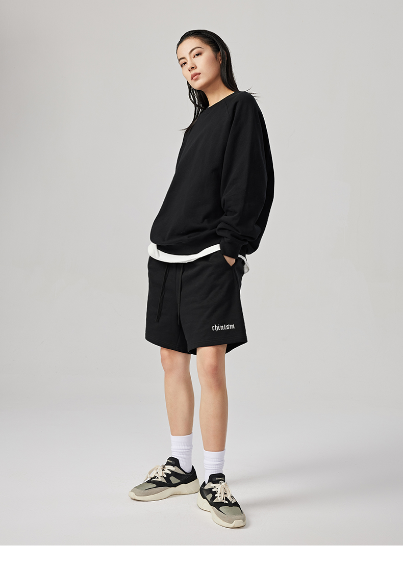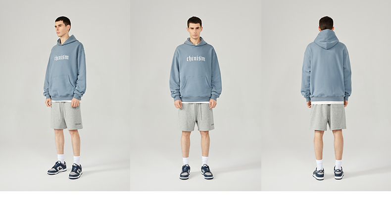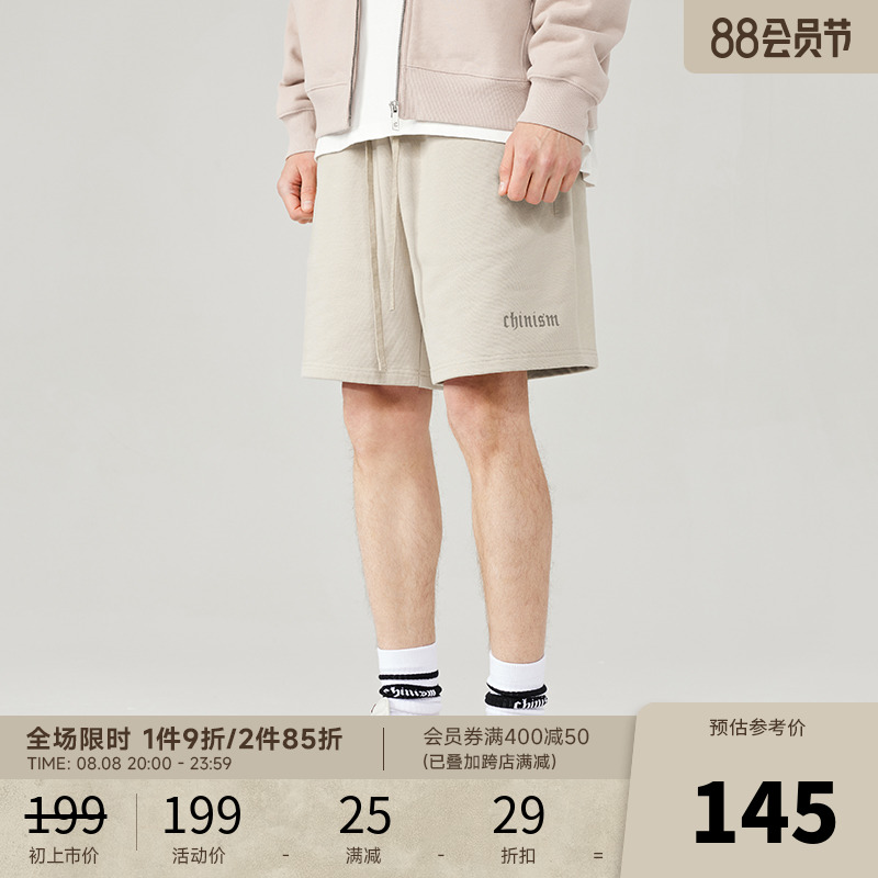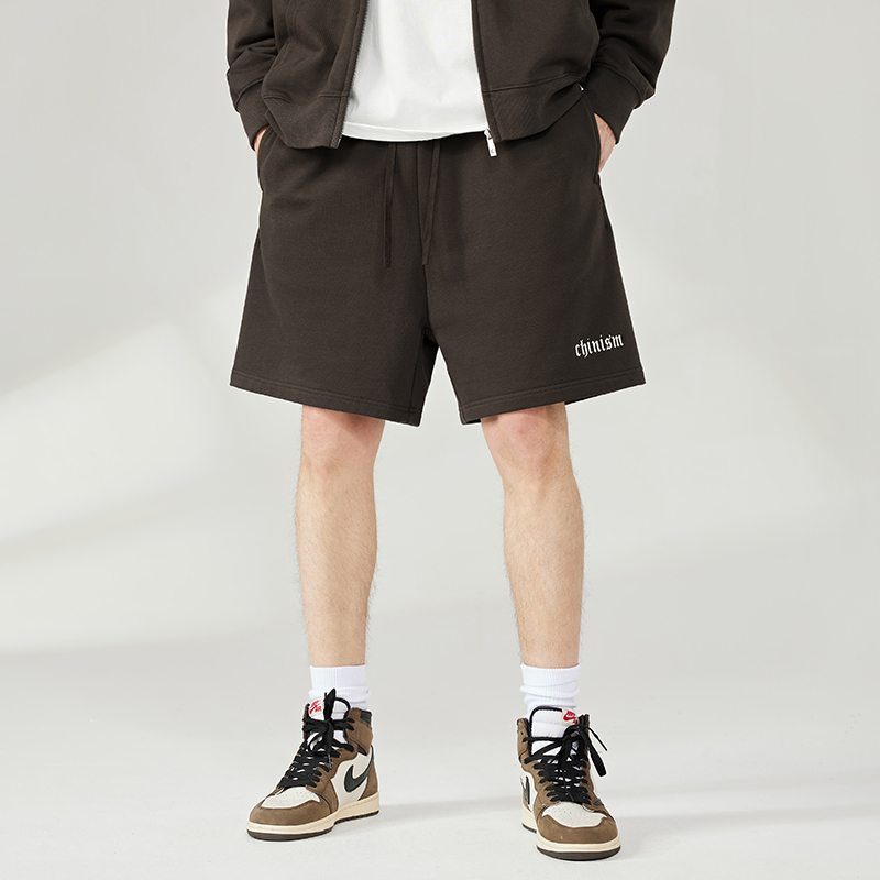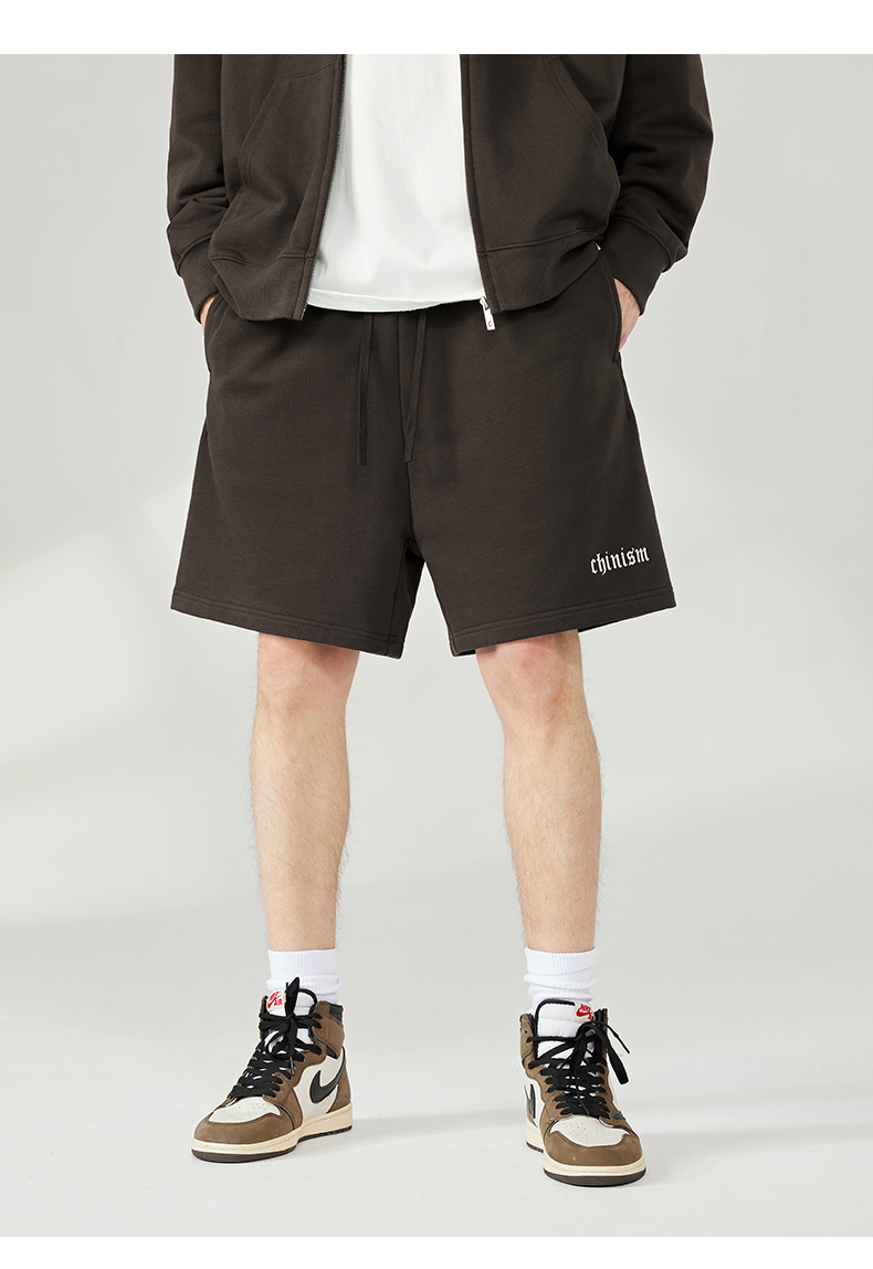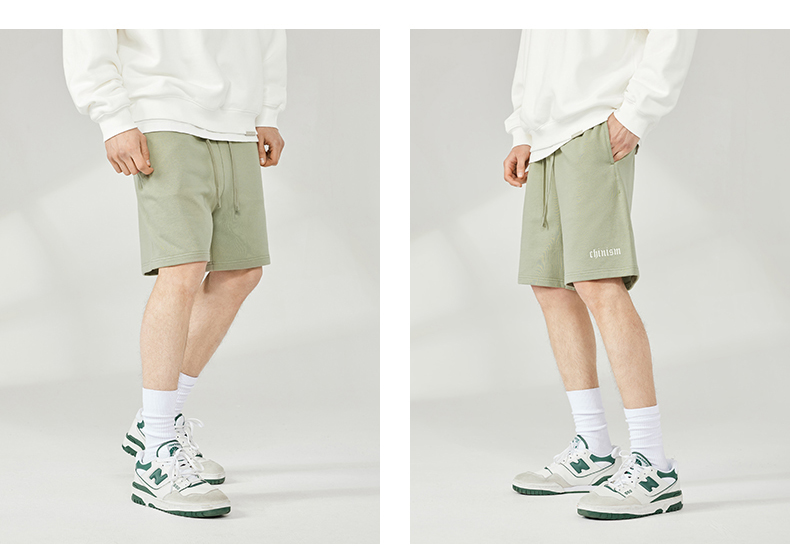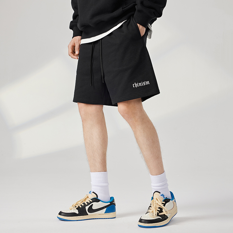 CHINISM CH灰色休閒短褲男運動寬鬆夏季美式高街男生潮牌五分褲子