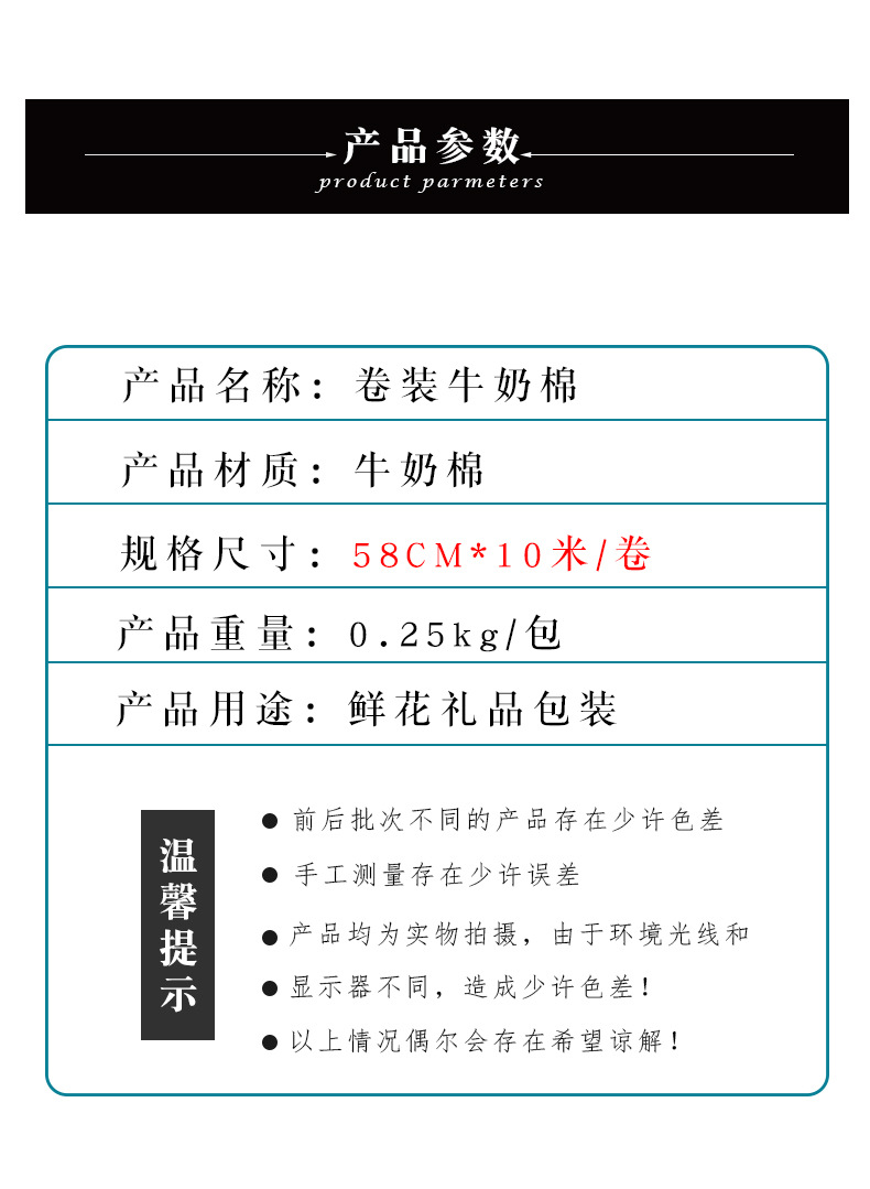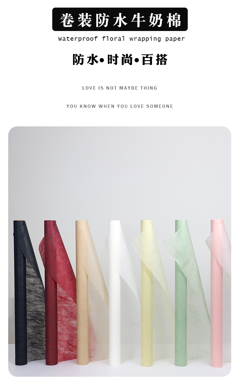 卷装牛奶棉防水鲜花包装纸材料花店花束内衬打底加厚10米长牛奶棉