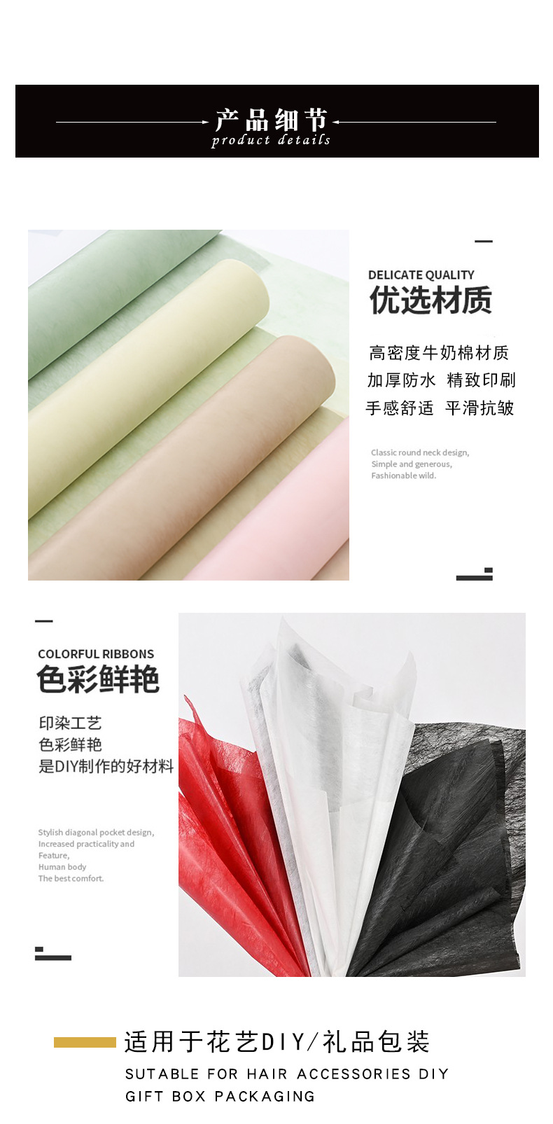 颜色 牛奶白(牛奶棉 10M*60CM/卷),神秘黑(牛奶棉 10M*60CM/卷),蜜意粉(牛奶棉 10M*60CM/卷),西柚红(牛奶棉 10M*60CM/卷),清新米(牛奶棉 10M*60CM/卷),薄荷绿(牛奶棉 10M*60CM/卷),浅裸色(牛奶棉 10M*60CM/卷),玫瑰粉(牛奶棉 10M*60CM/卷)
