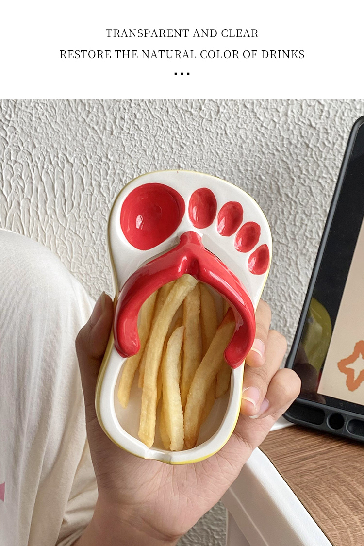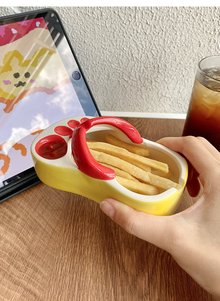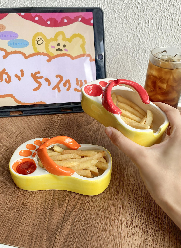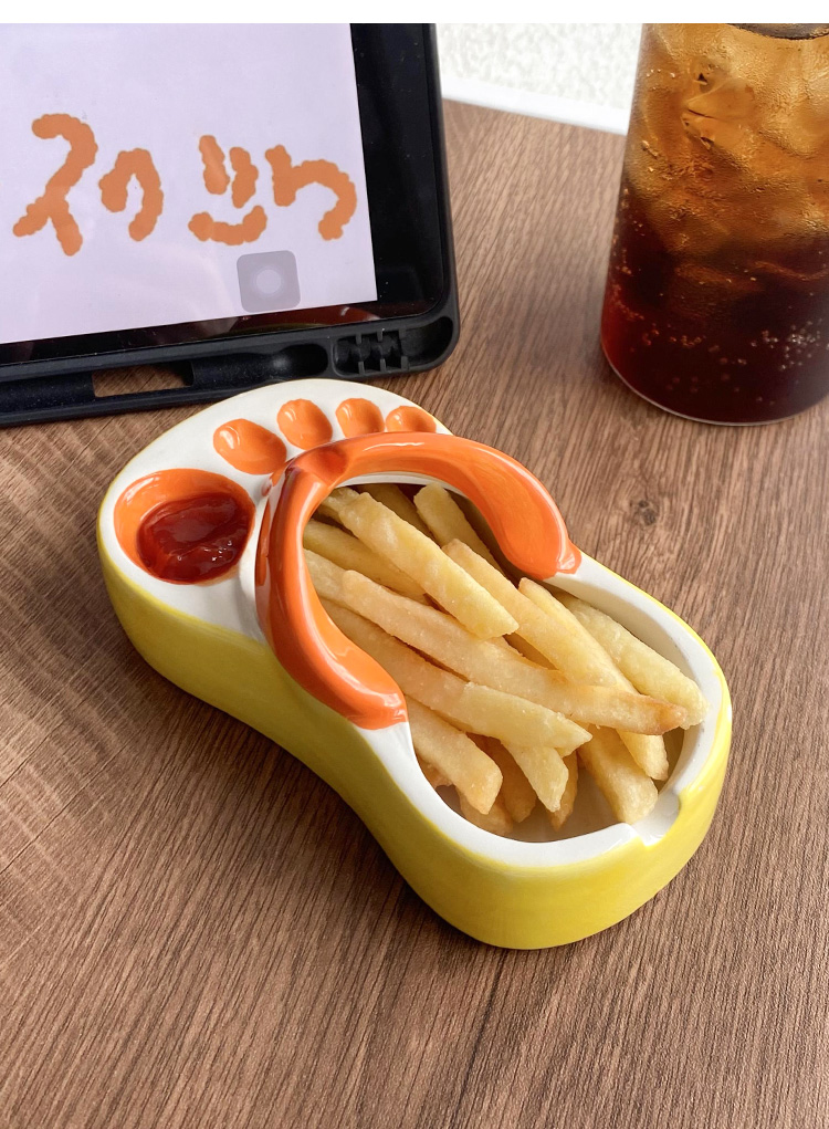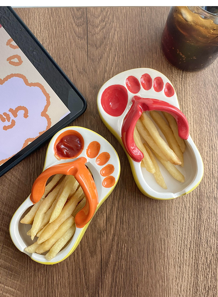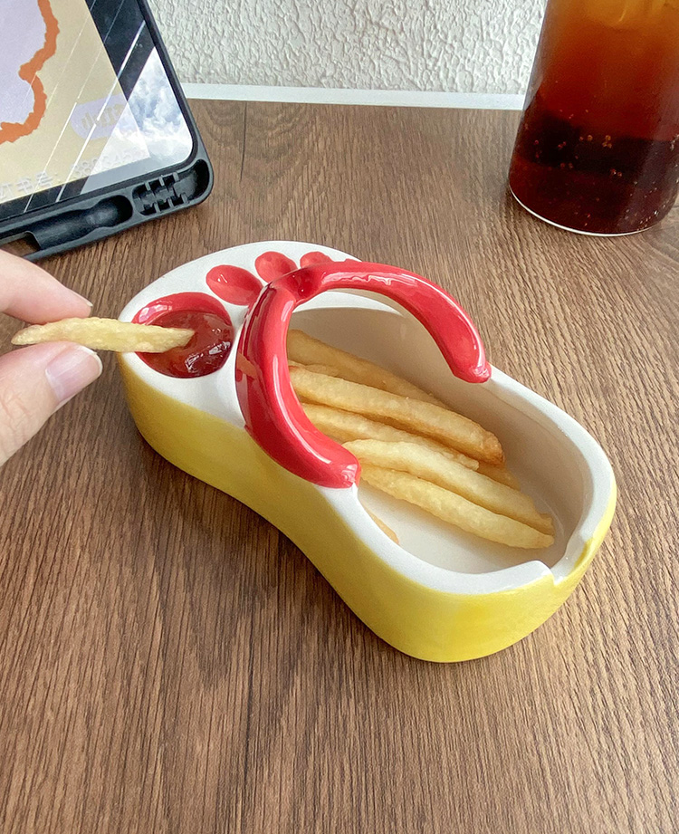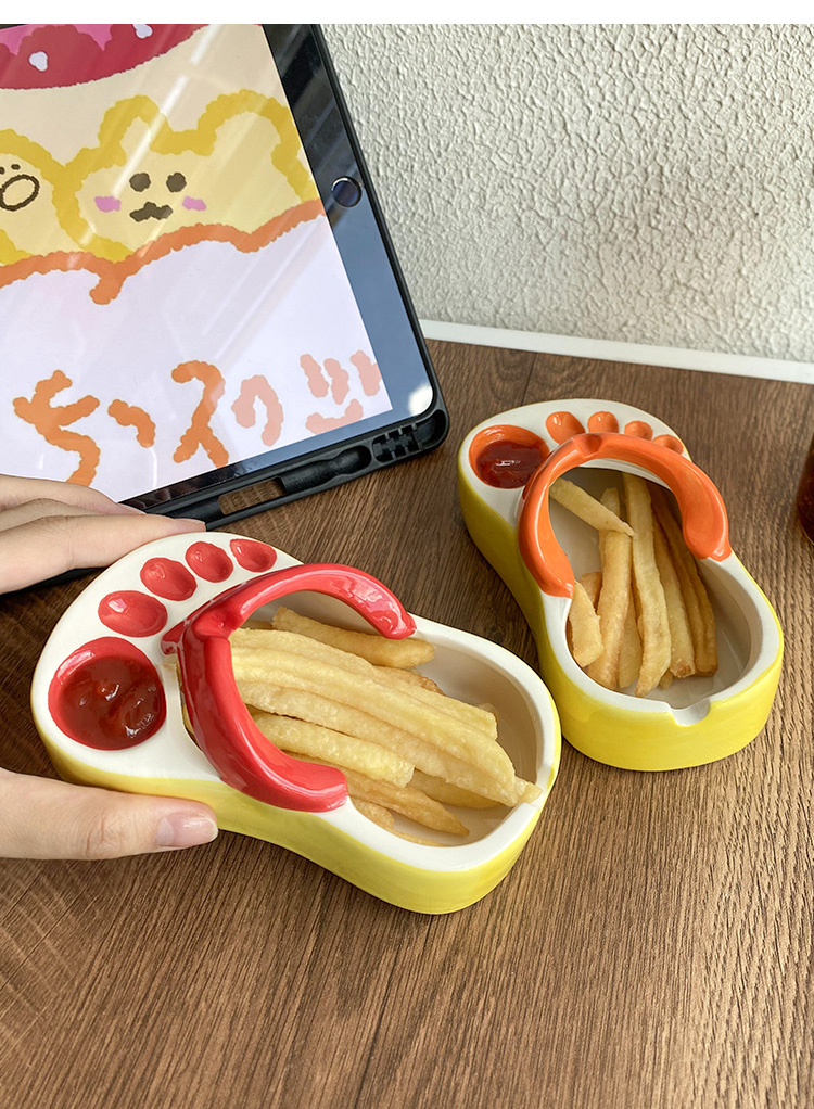 網紅拖鞋薯條盤蕃茄醬蘸料碟子創意有味道的卡通人字託盤味碟餐具