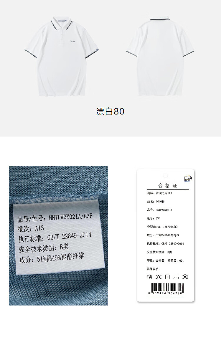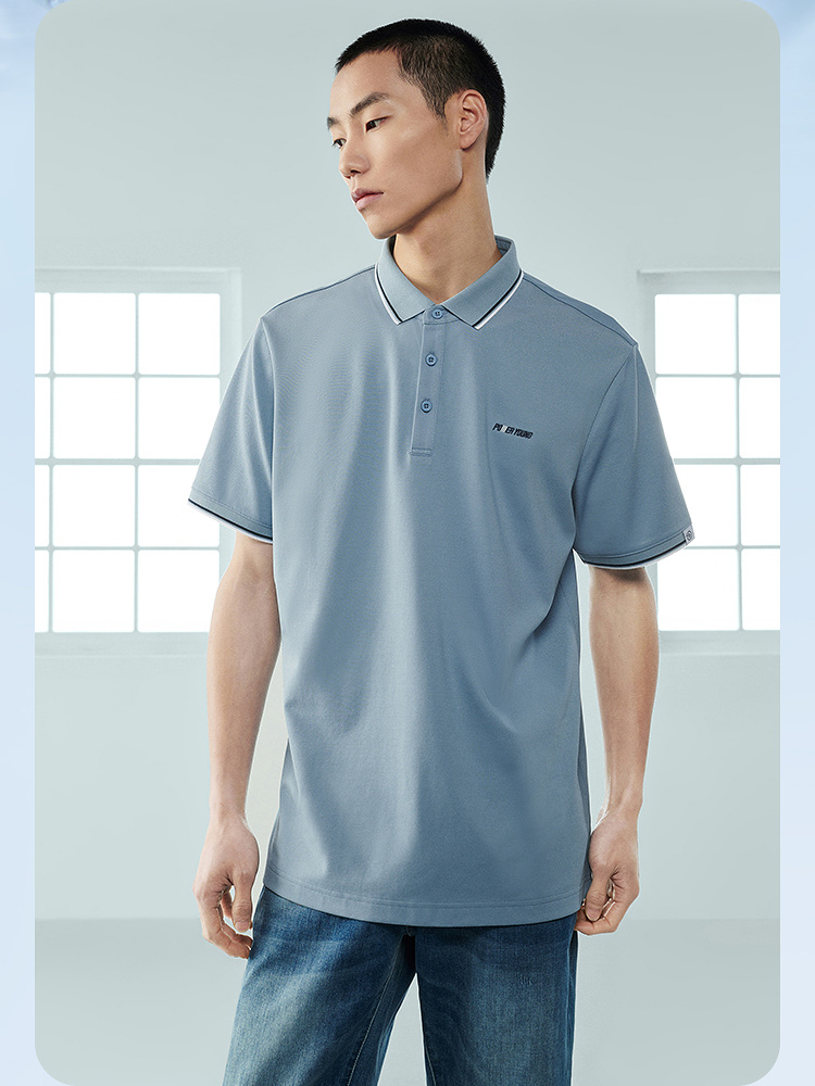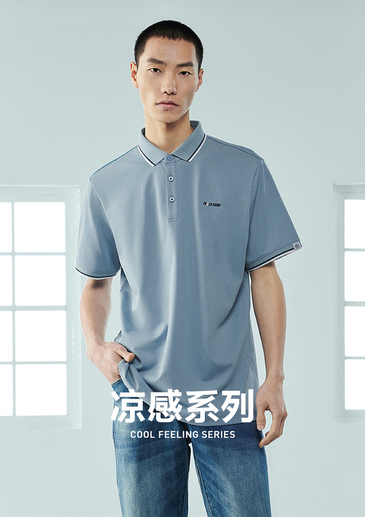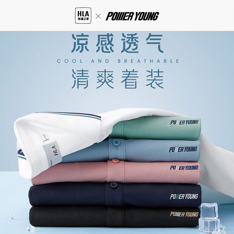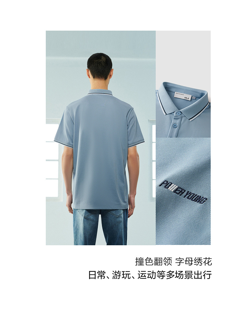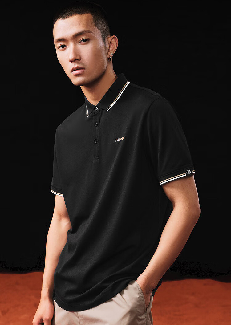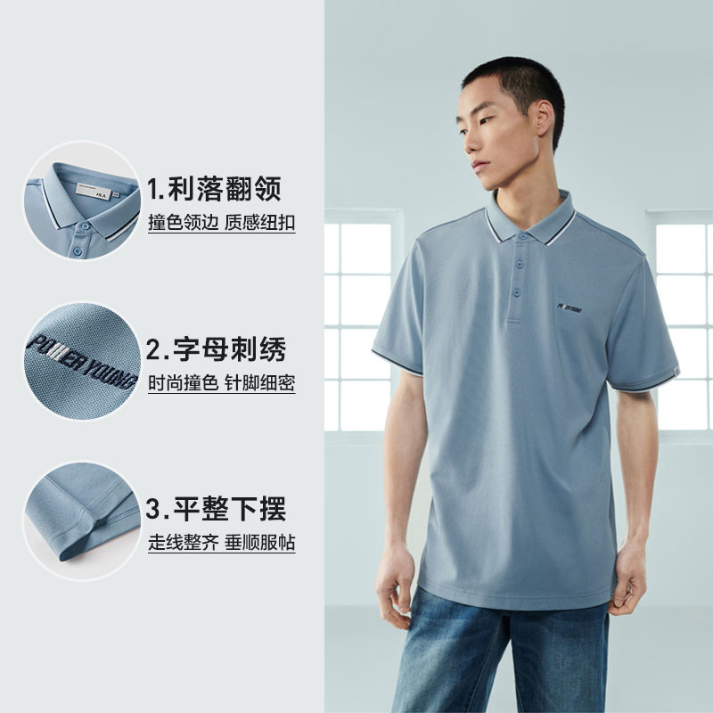 【涼感】海瀾之家POWER YOUNG短袖Polo衫23春夏新翻領黑白色T恤男