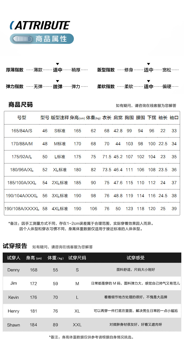 尺碼 165/84A/S 170/88A/M 175/92A/L 180/96A/XL 185/100A/XXL 190/104A/XXXL 190/108A/XXXXL