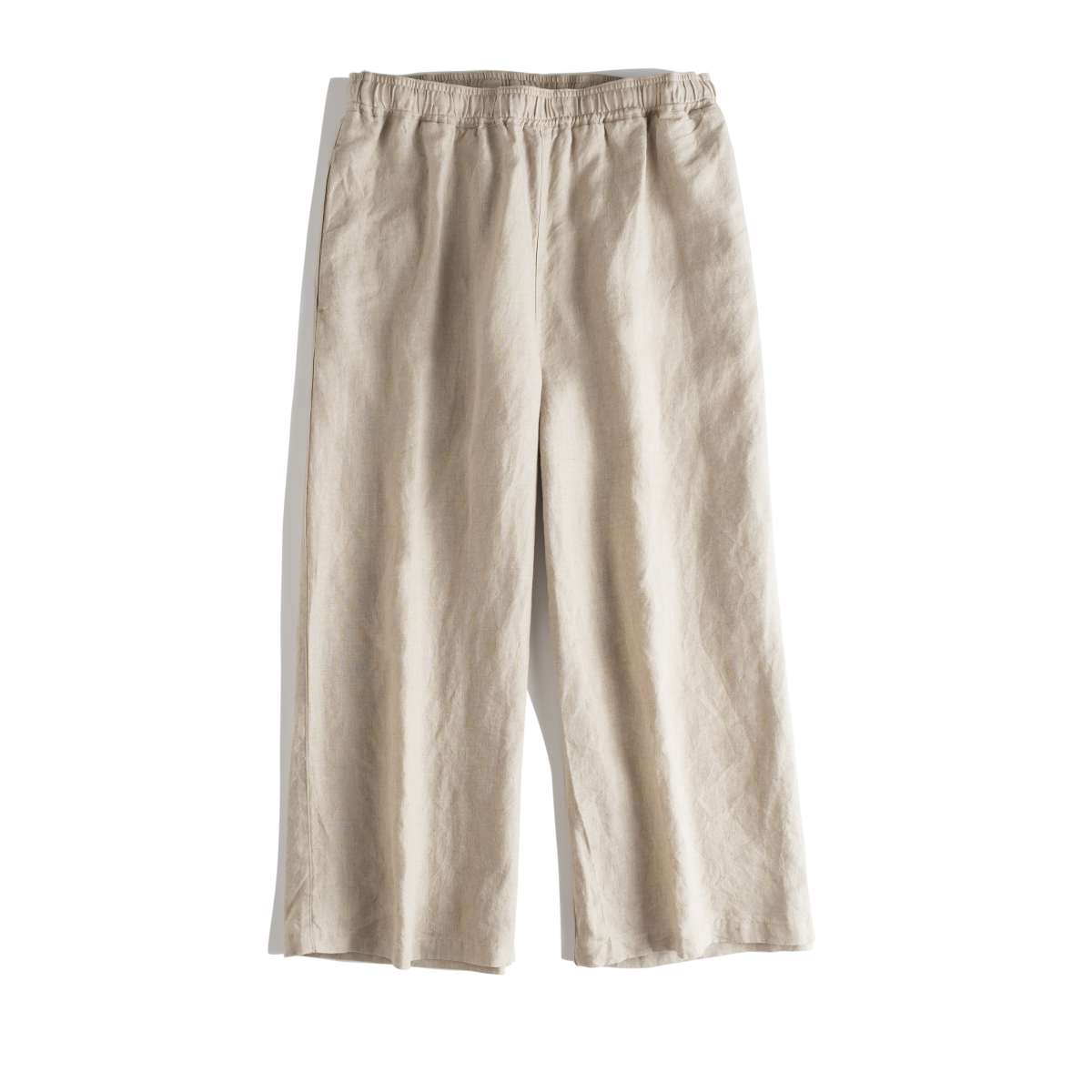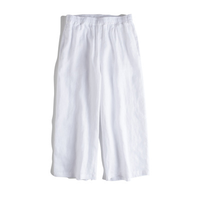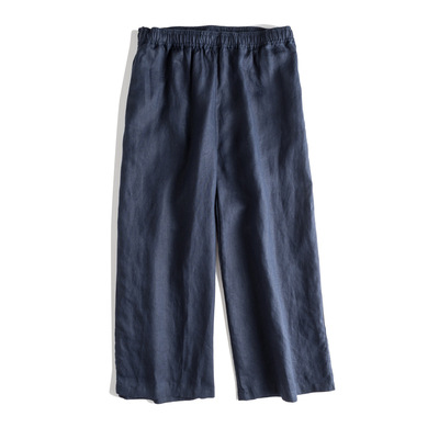 春夏新款法国亚麻阔腿裤九分休闲文艺宽松松紧腰抽绳女式麻裤#000