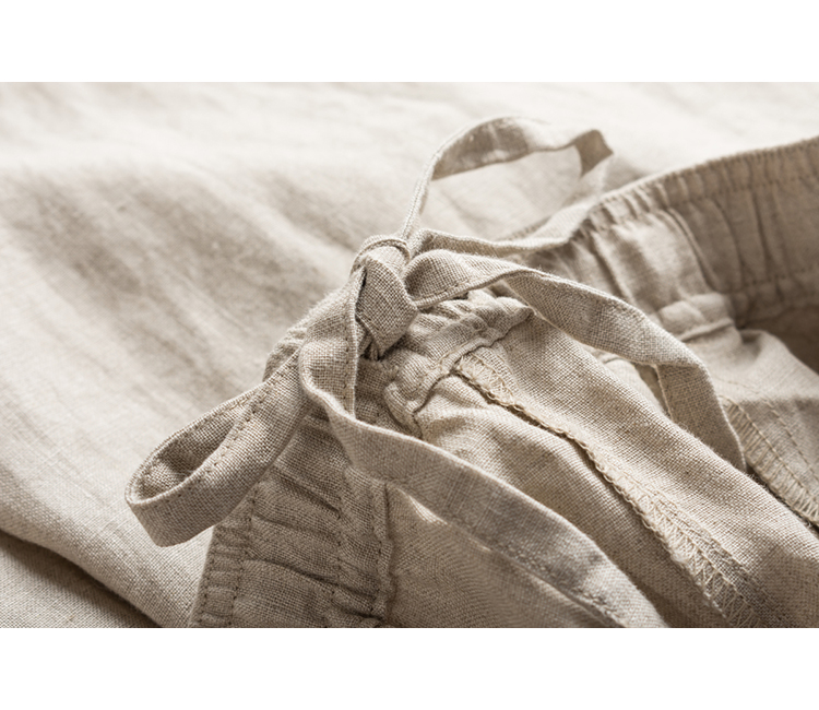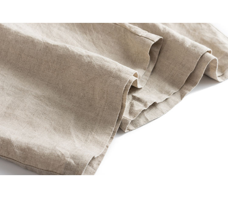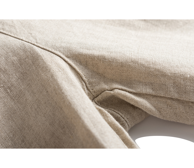 客供面料,进口法国亚麻,清爽凛冽,吸湿透气,出汗不易粘身。