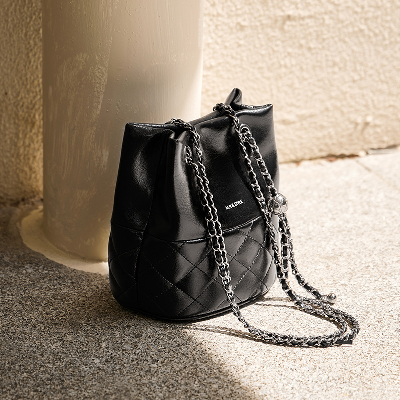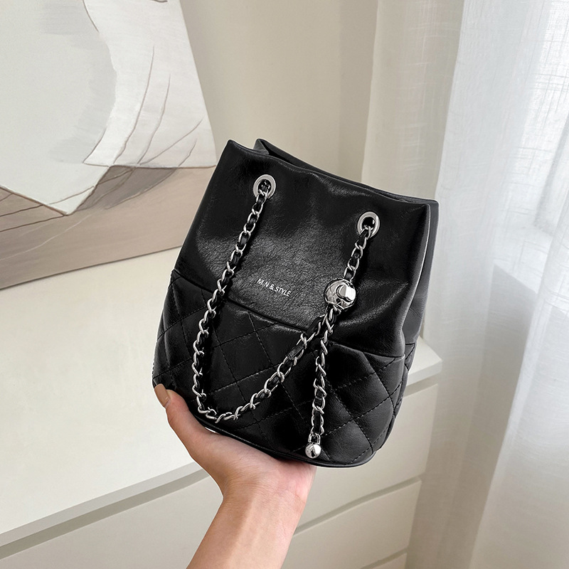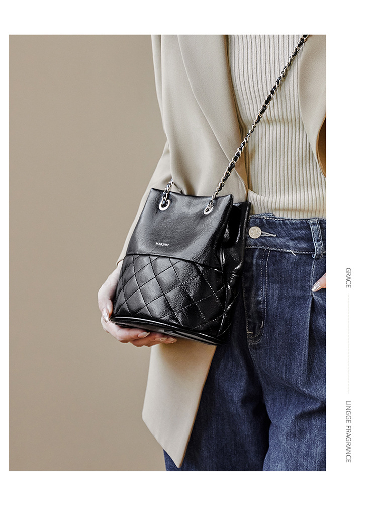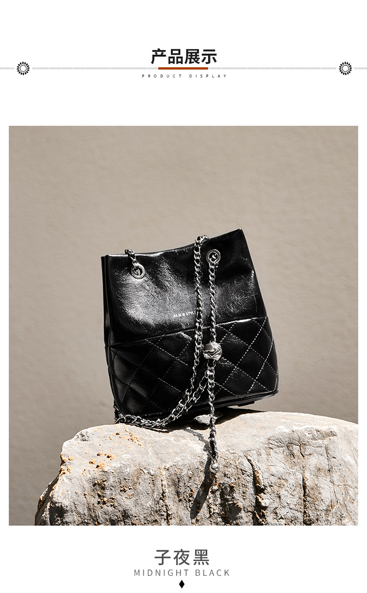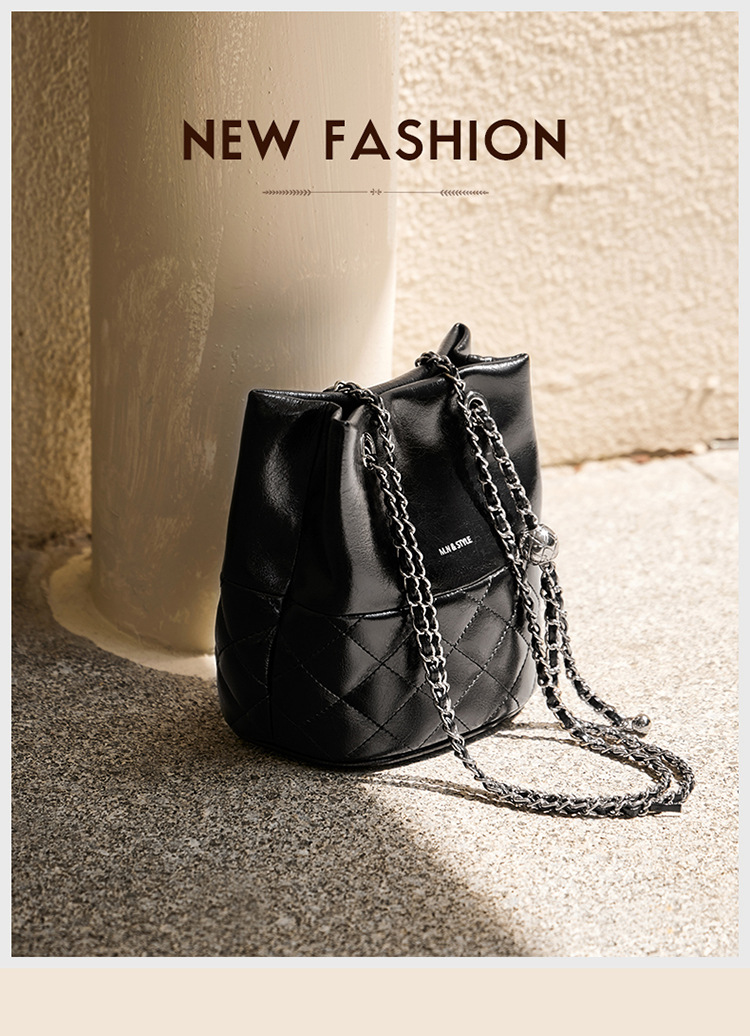 包包2024新款链条水桶包女斜挎包百搭秋冬女士单肩真皮女包