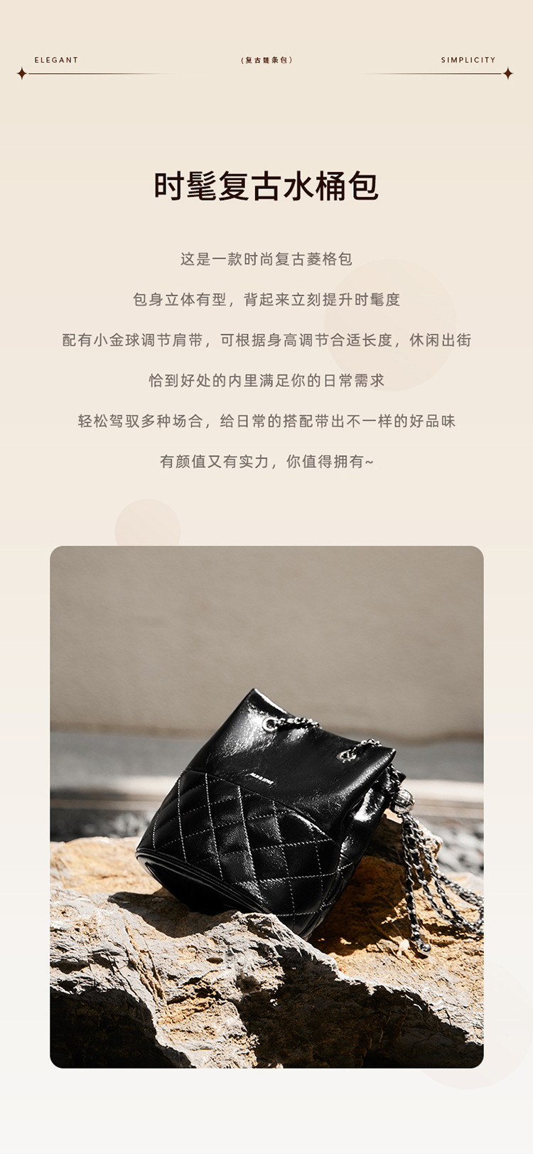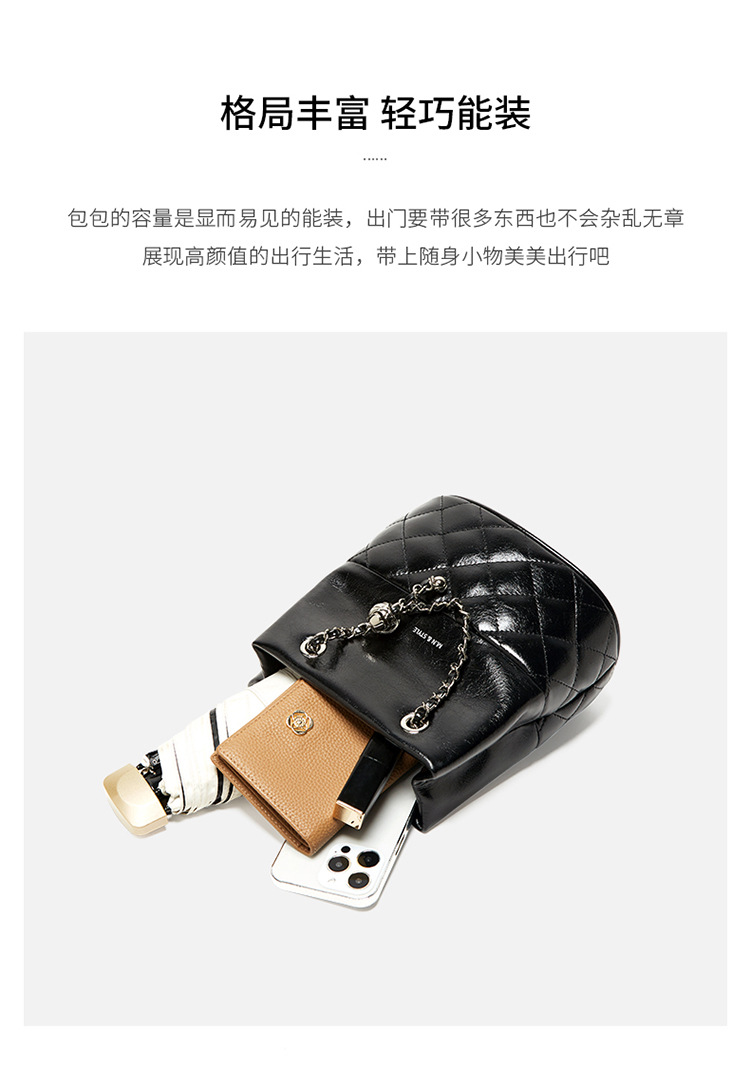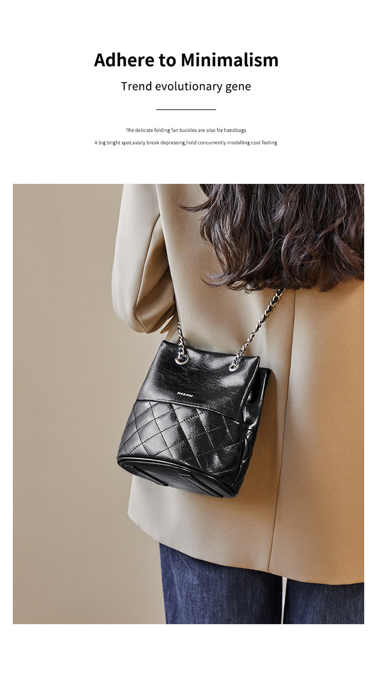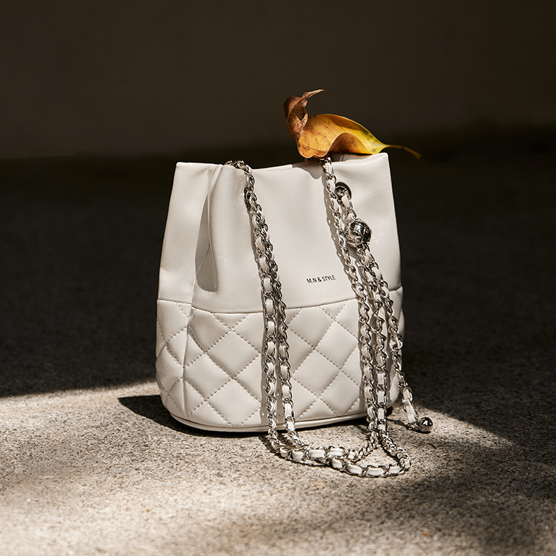 包包2024新款链条水桶包女斜挎包百搭秋冬女士单肩真皮女包