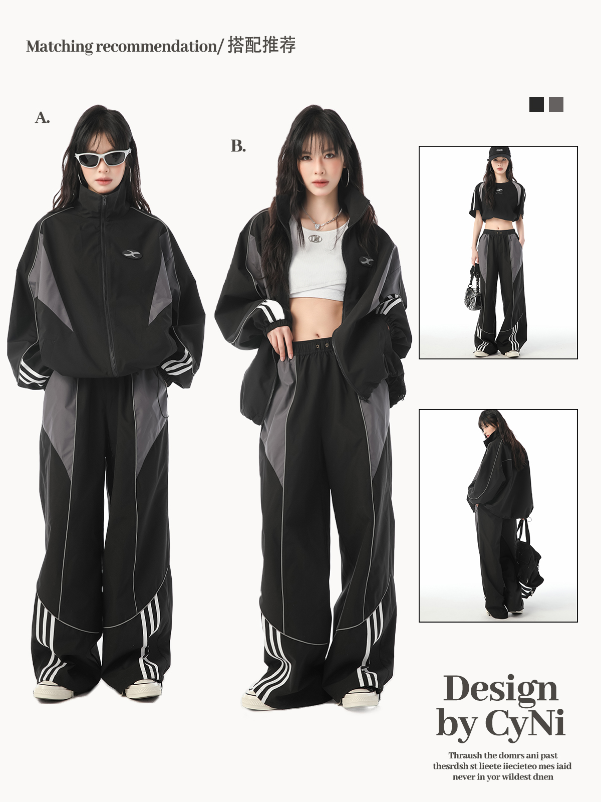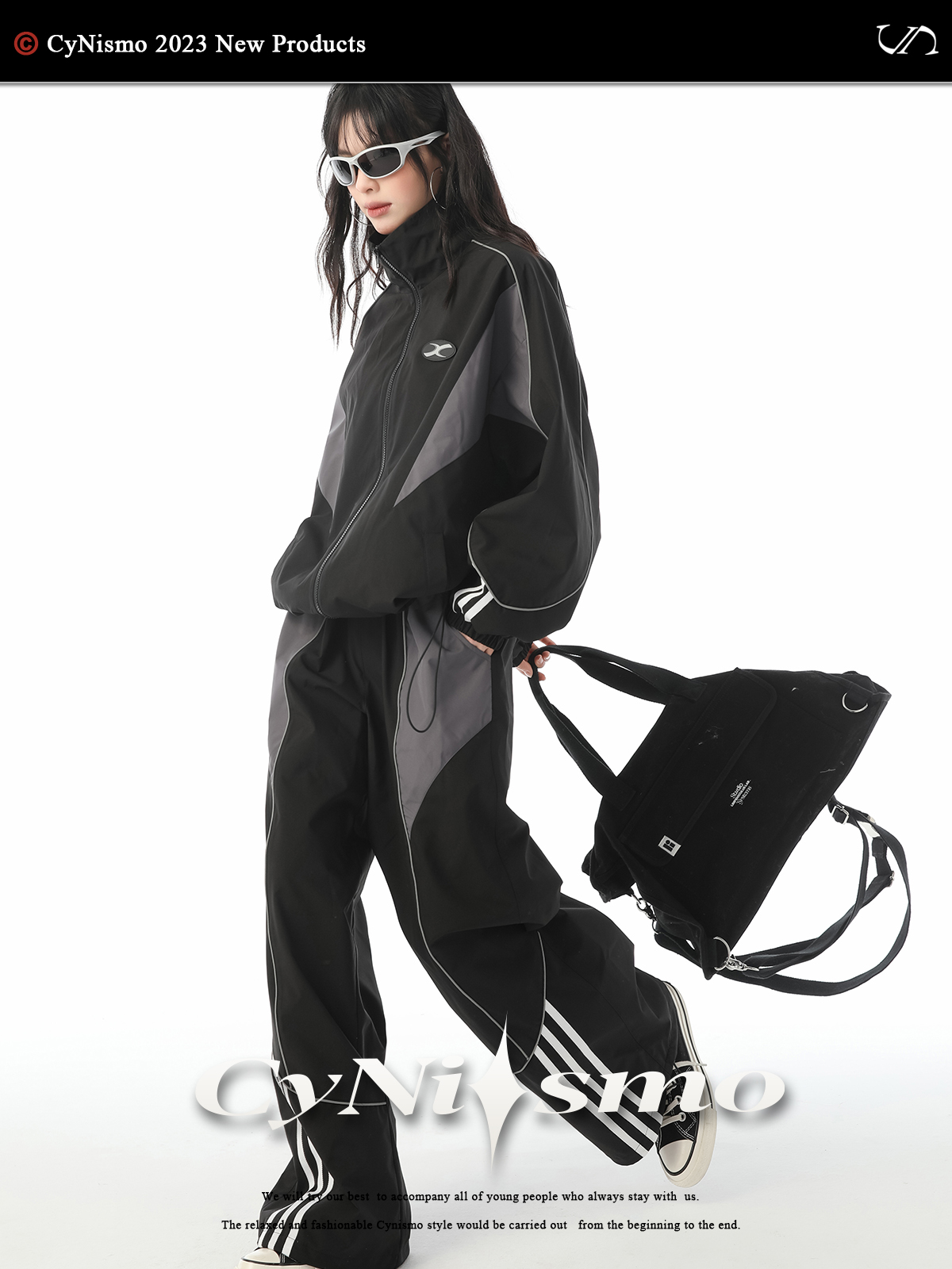 CyNi 「 Cynismo」潮牌撞色防風教練外套運動套裝男女情侶寬鬆os