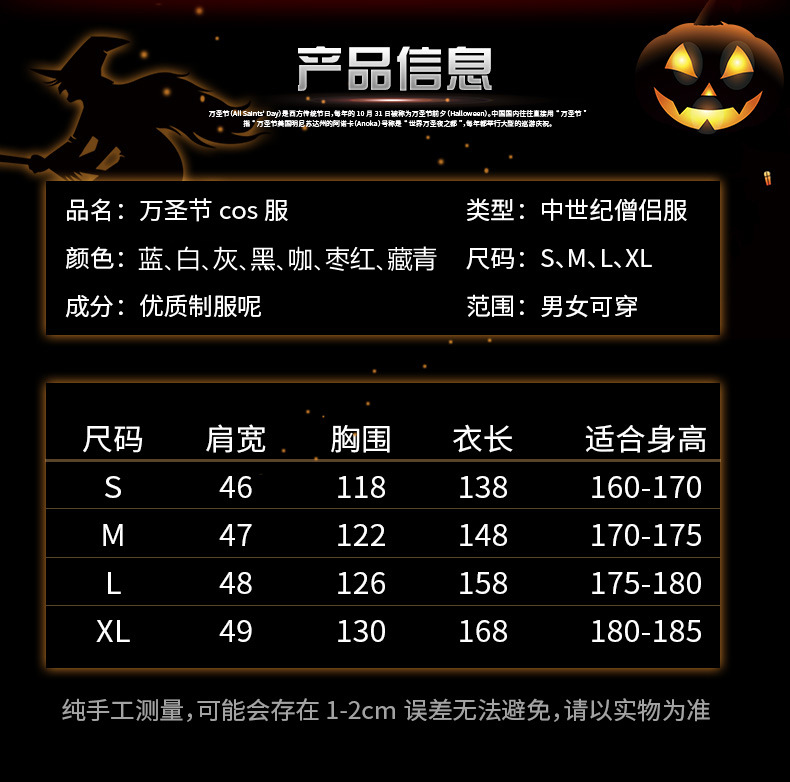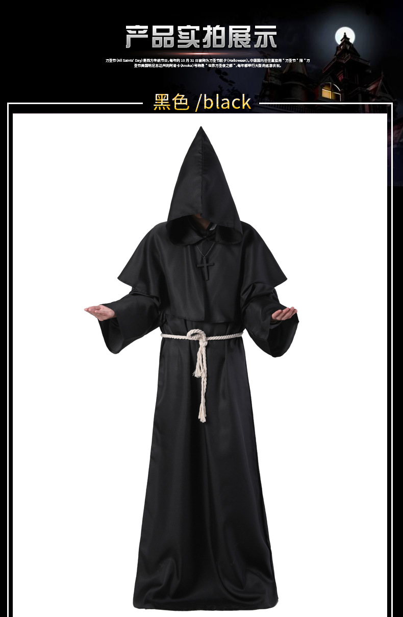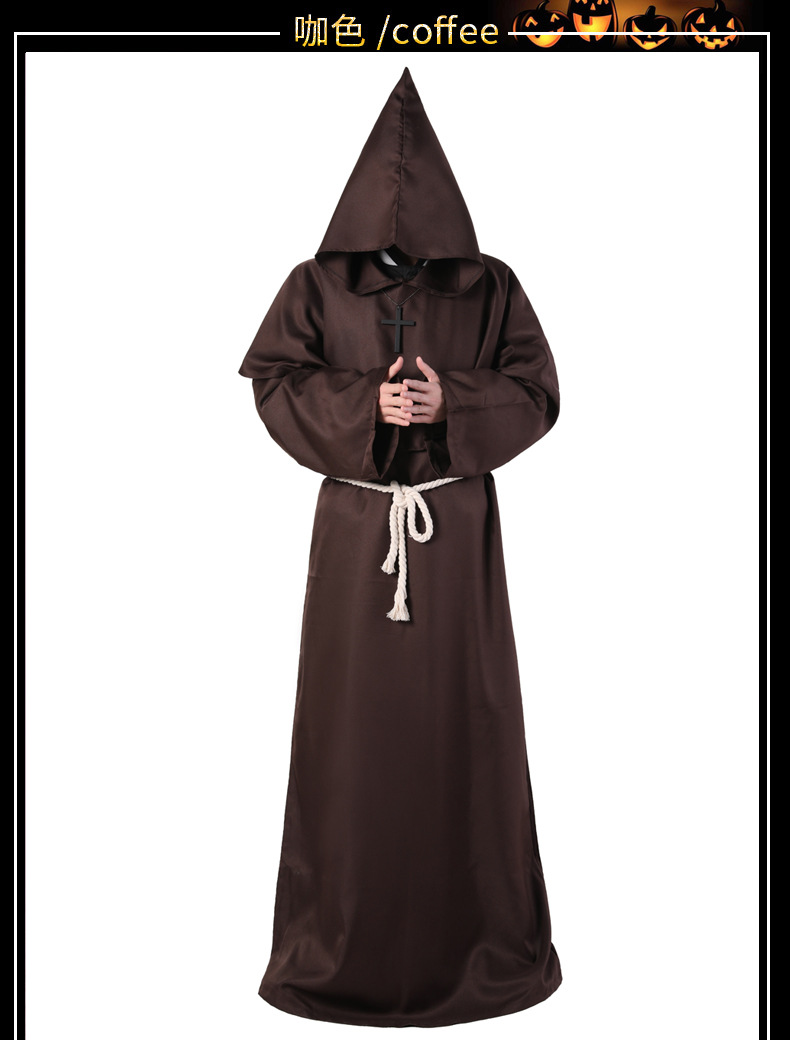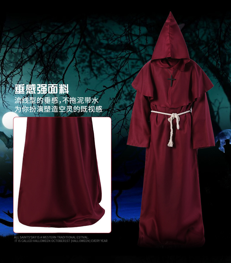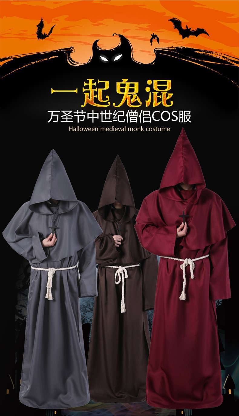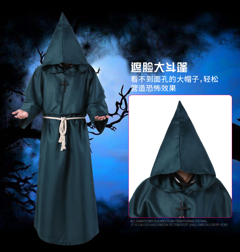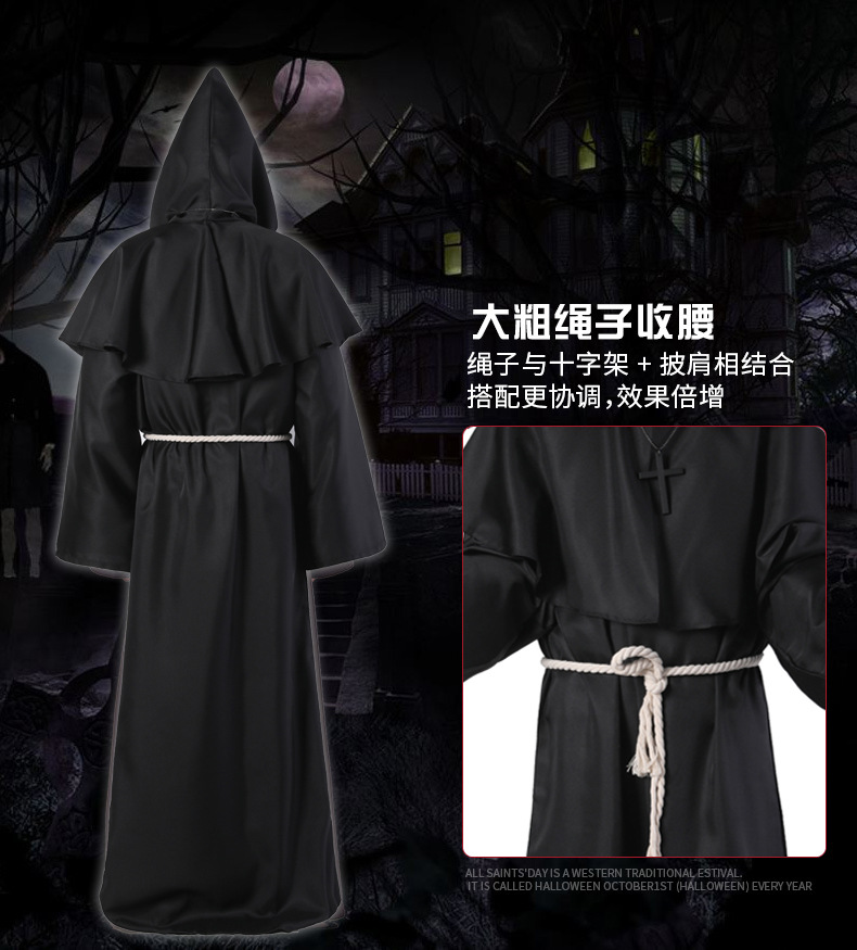 圣威达万圣节服装中世纪修士袍僧侣服巫师服牧师cosplay服披肩