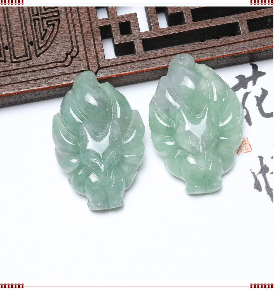 【材质】:翡翠A货 【规格】:外圈31.2*21*6.3mm(误差1-2mm) 【用途】:可用于挂金器、银器、玉器、陶瓷器、饰品配件等吊坠用 【包装】:无单独的包装 【说明】:天然翡翠是大自然形成的矿物质宝石,必然有天然的矿物质表现,比如绵质、石纹、杂色、纹咎、石花,脏点等石质特征。同一块石料开出来不同部分也会有所分别(颜色,纹理),这是天然翡翠在亿万年的生成过程中自然形成的,不属瑕疵范畴。受工艺所限,玉器商品表面的抛光、边缘的打磨可能存在少许粗糙、不平之处,也不在瑕疵之列!请亲知晓!介意者慎拍! 新的一批九尾狐狸颜色是豆色的