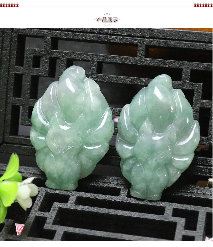 厂地直销正品天然手工雕刻玉器翡翠a货九尾狐吊坠DIY挂件批发